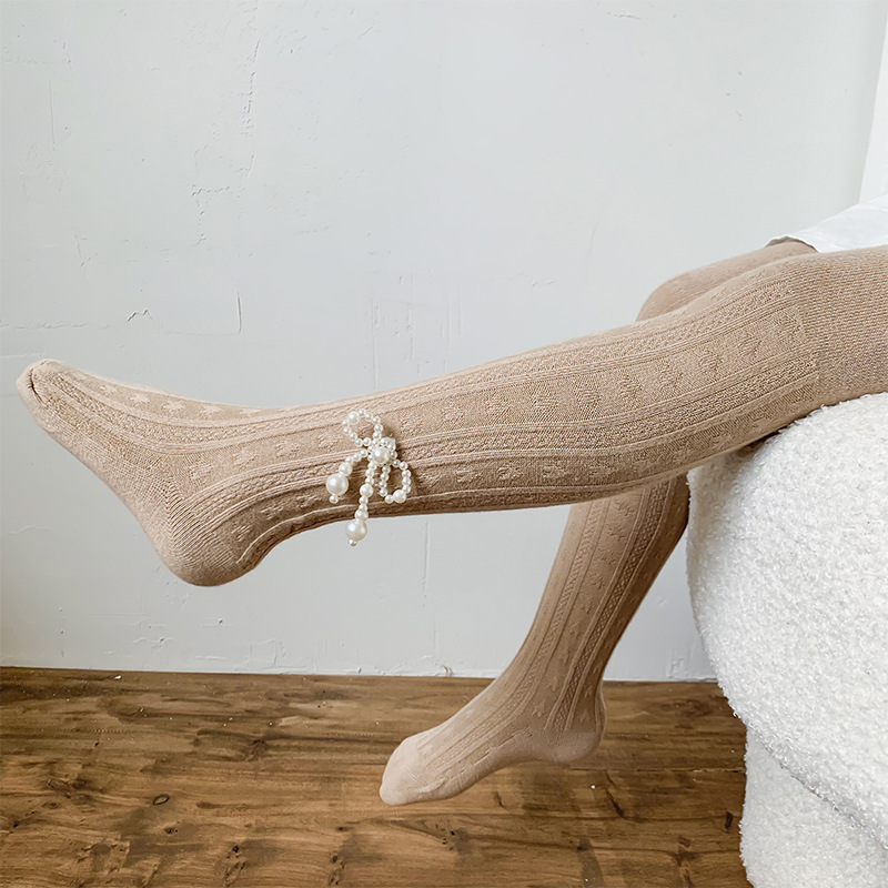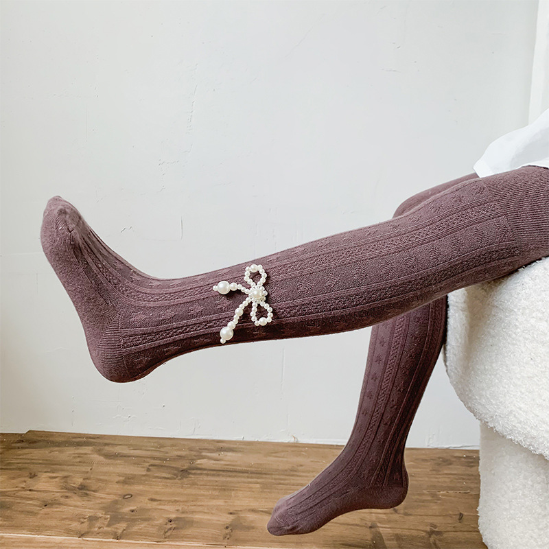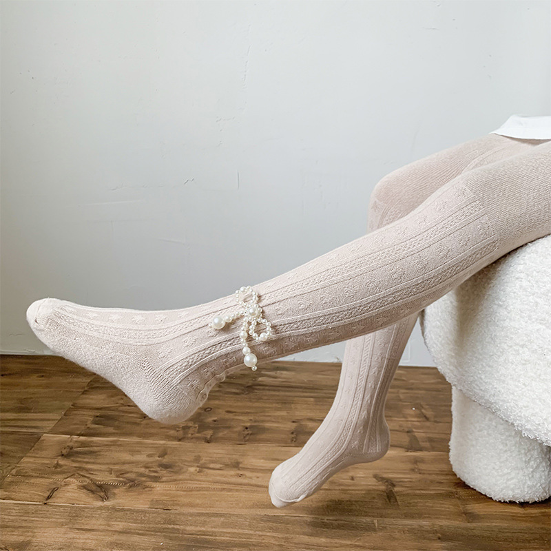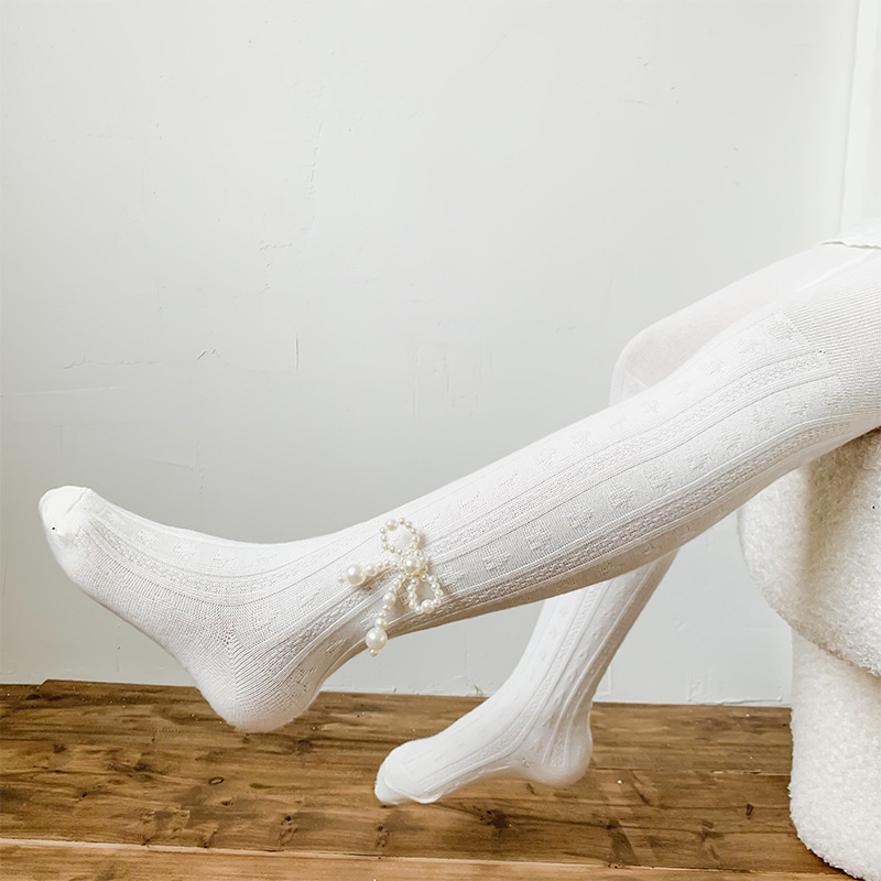春季儿童打底裤女童宝宝棉袜连裤袜珍珠蝴蝶结婴儿打底袜批发外穿