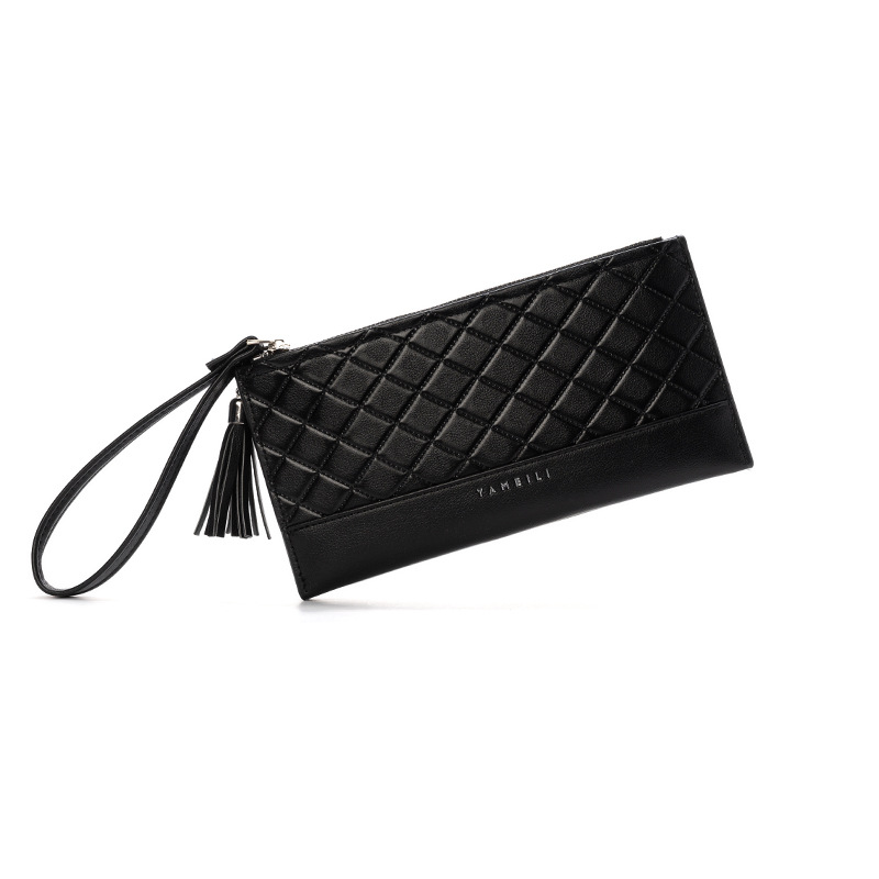 2023新款钱包 女士菱格时尚中长款拉链钱夹 手拿包皮夹零钱手抓包