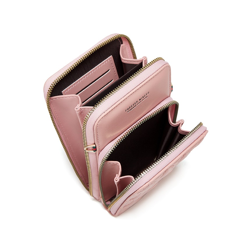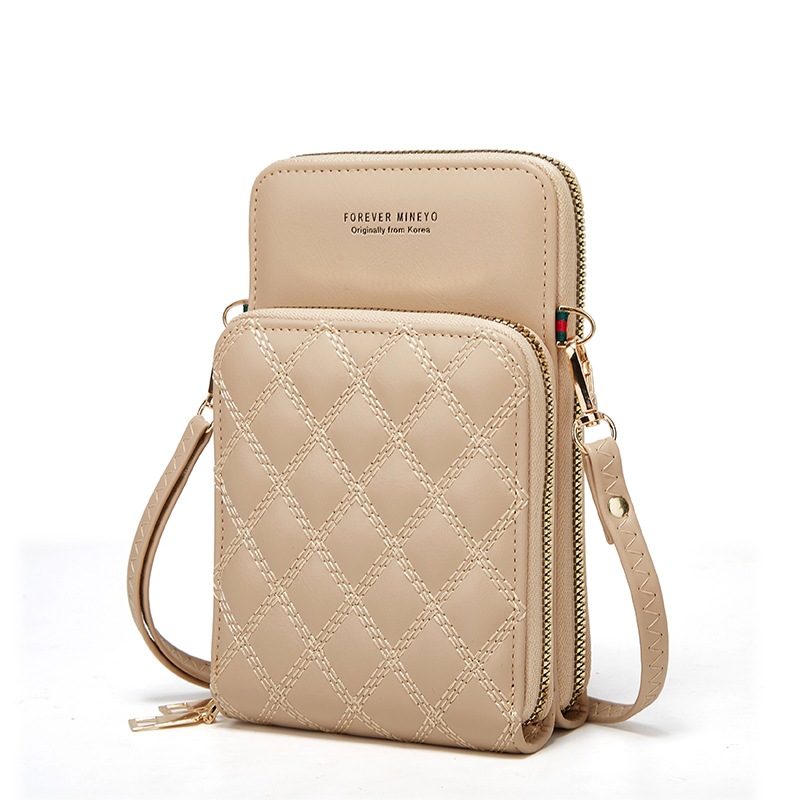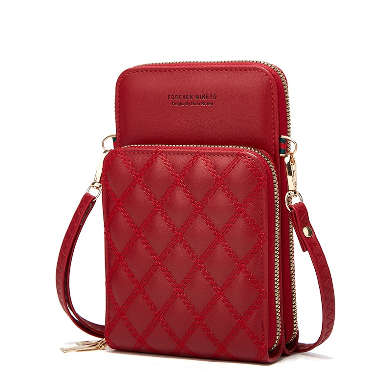 新款绣花手机包单肩斜挎女式大容量零钱包硬币包时尚菱格卡包H166