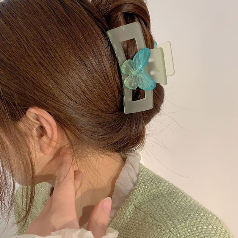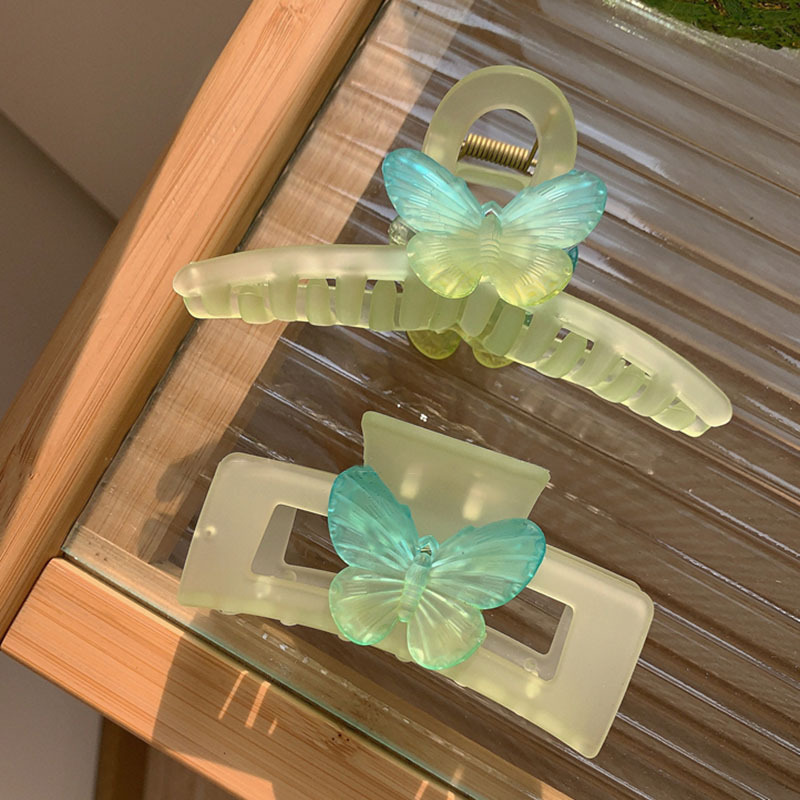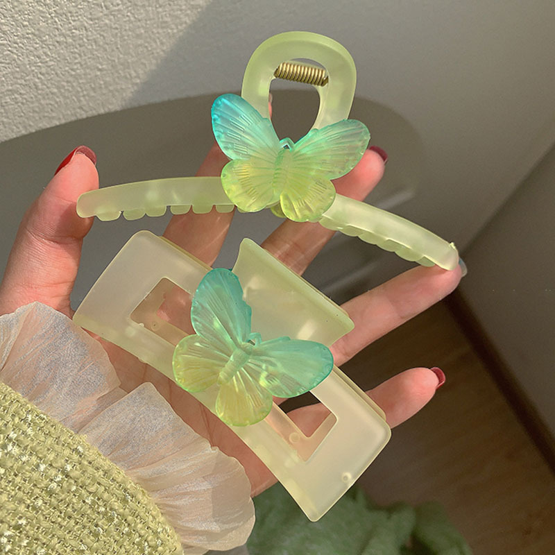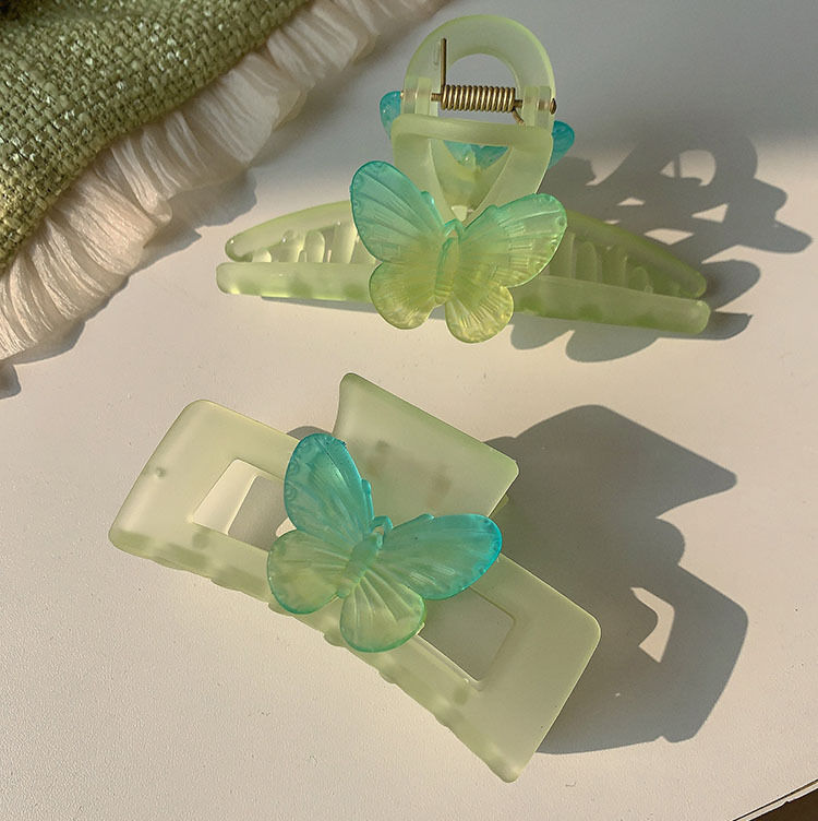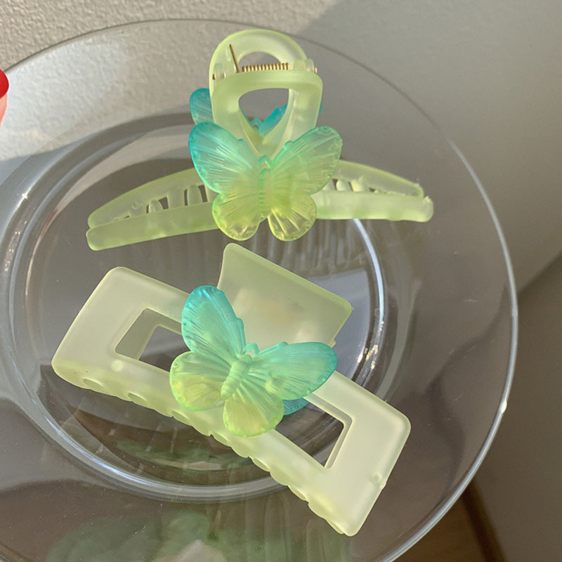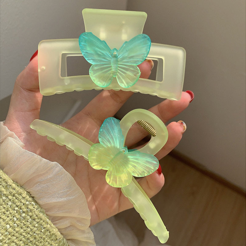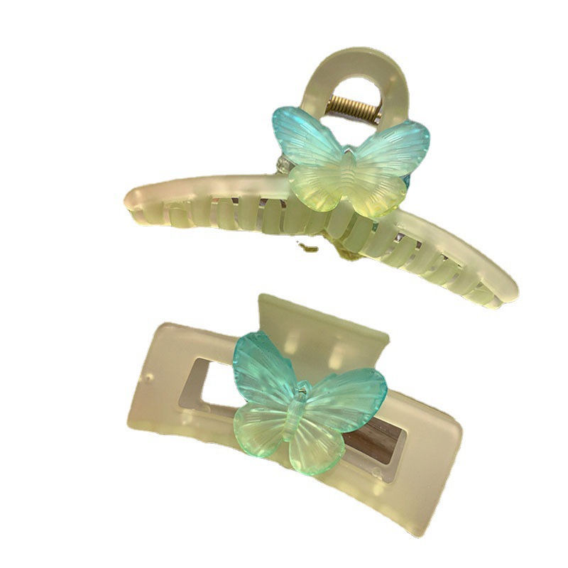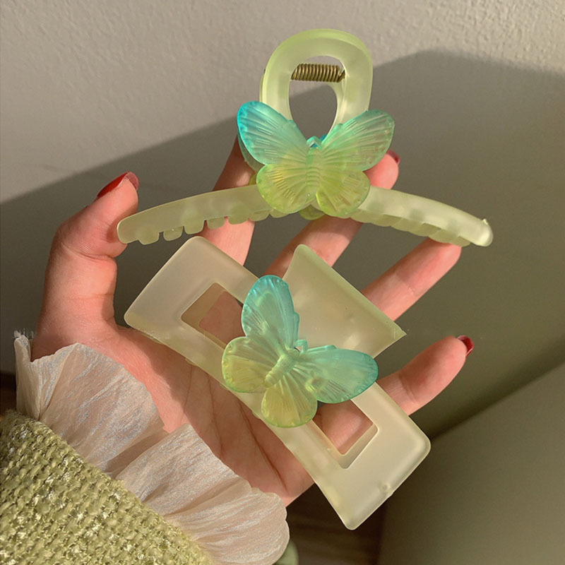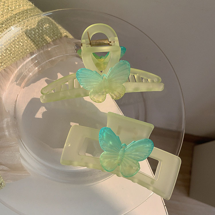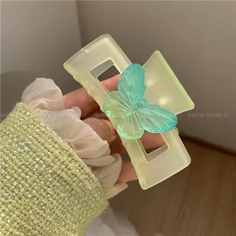 超仙的绿色蝴蝶抓夹2023年初春新款高级感大号鲨鱼夹甜美发饰批发