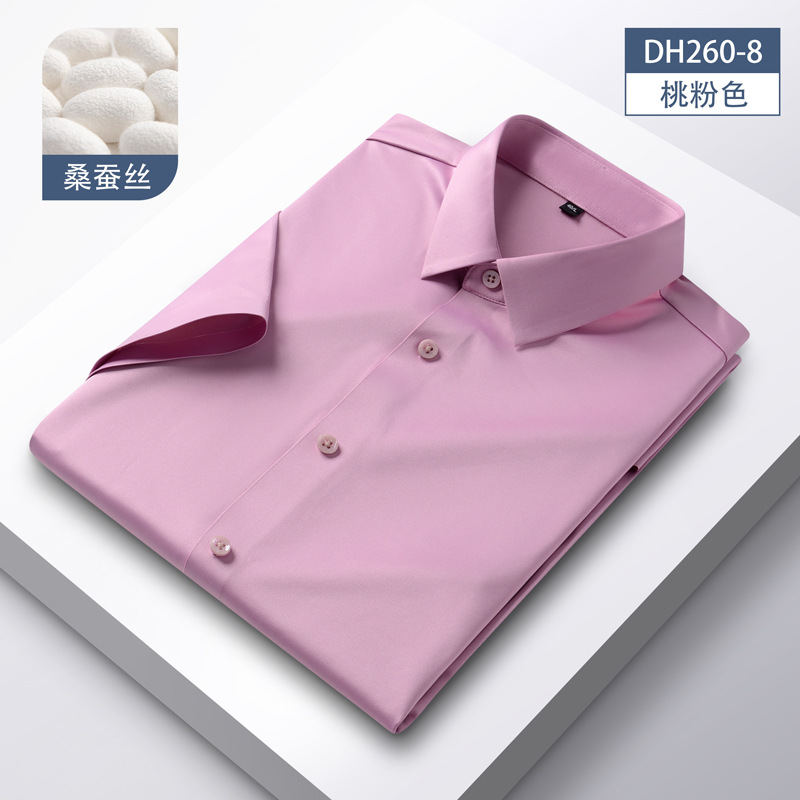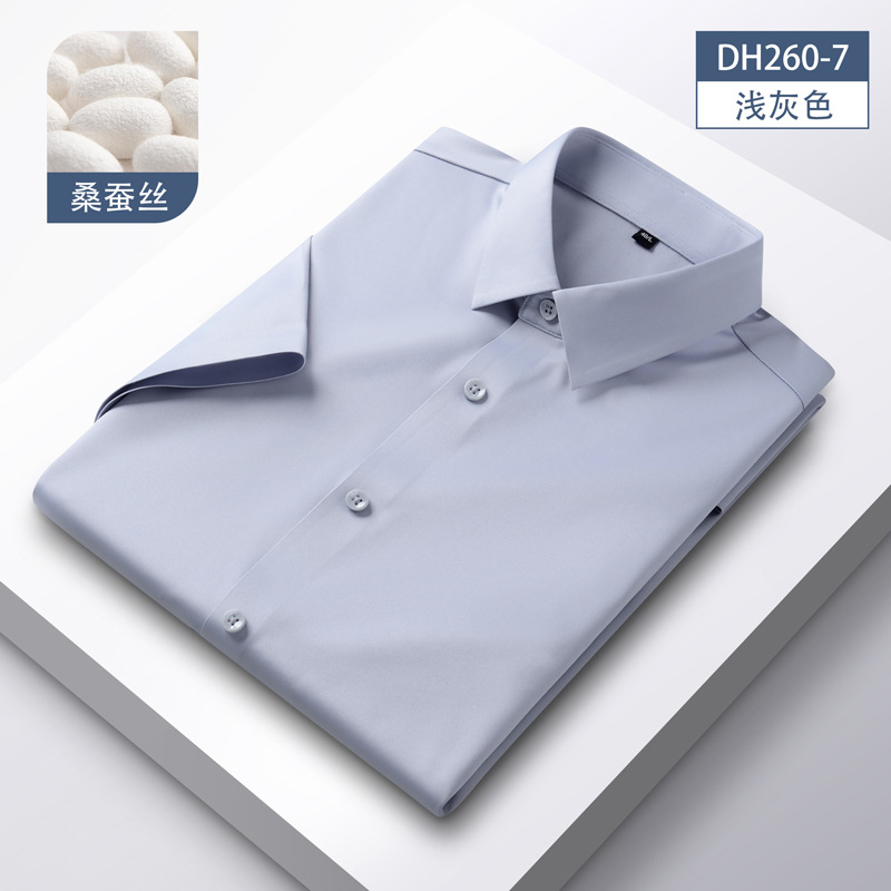 新款高档轻奢桑蚕丝衬衫男短袖无痕四面弹冰丝商务休闲男士白衬衣