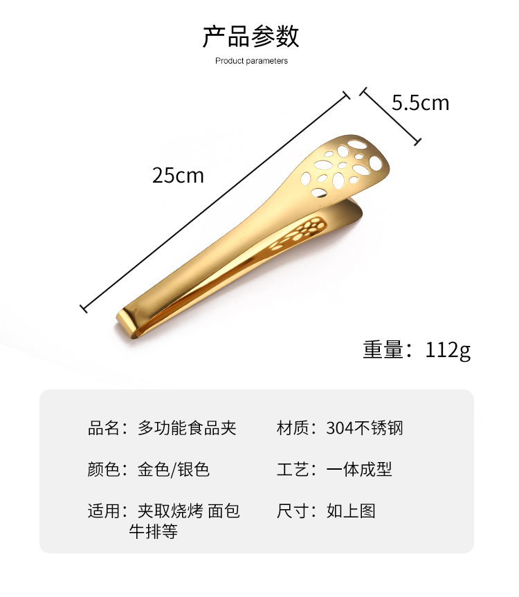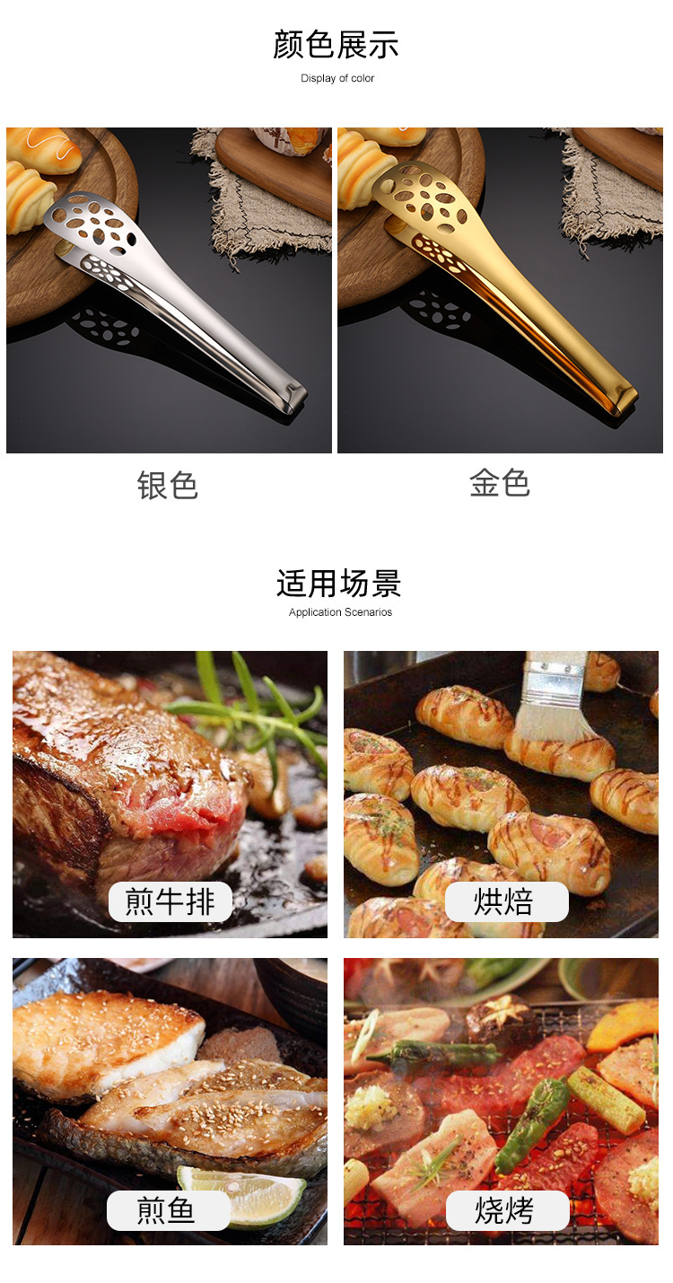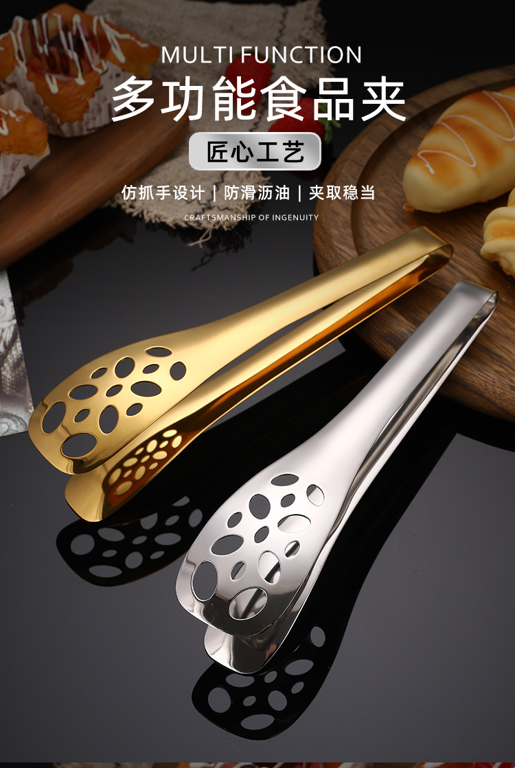 304不锈钢食品夹酒店煎牛排食物夹户外家用多功能烧烤夹用品批发