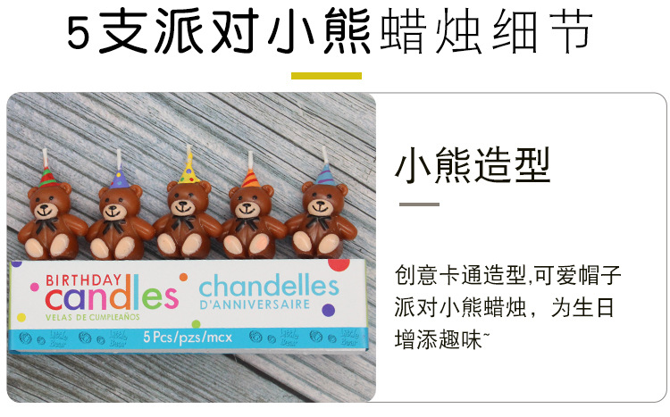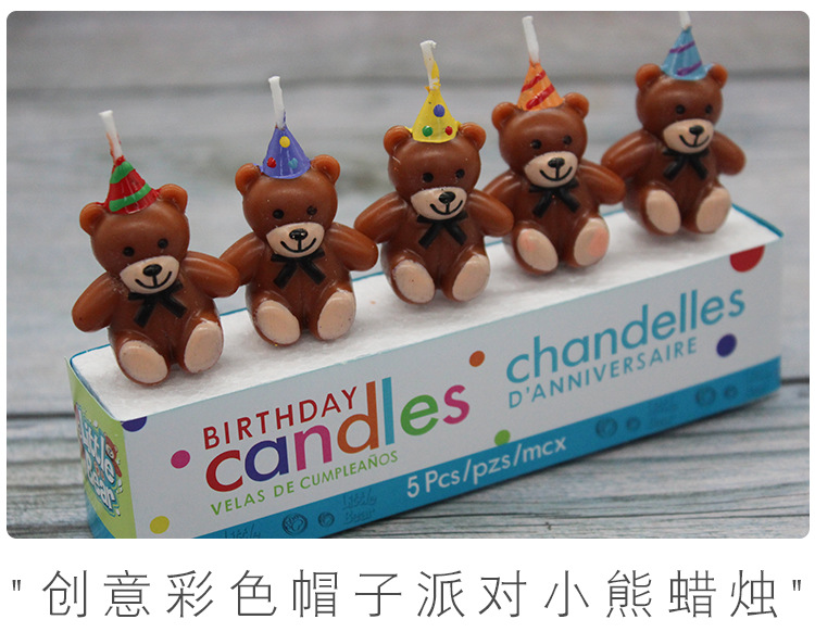 批发ins复古彩色帽子小熊生日蜡烛创意儿童节日蛋糕装饰卡通蜡烛