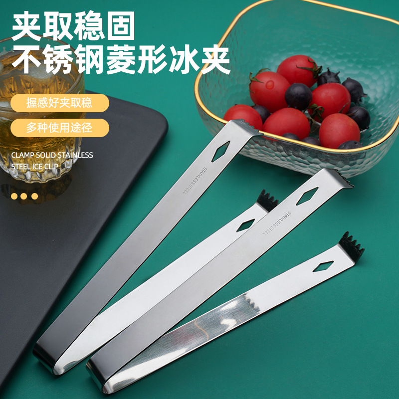 批发不锈钢冰夹毛巾夹面包夹带齿防脱落冰夹酒店厨房食物夹多用夹