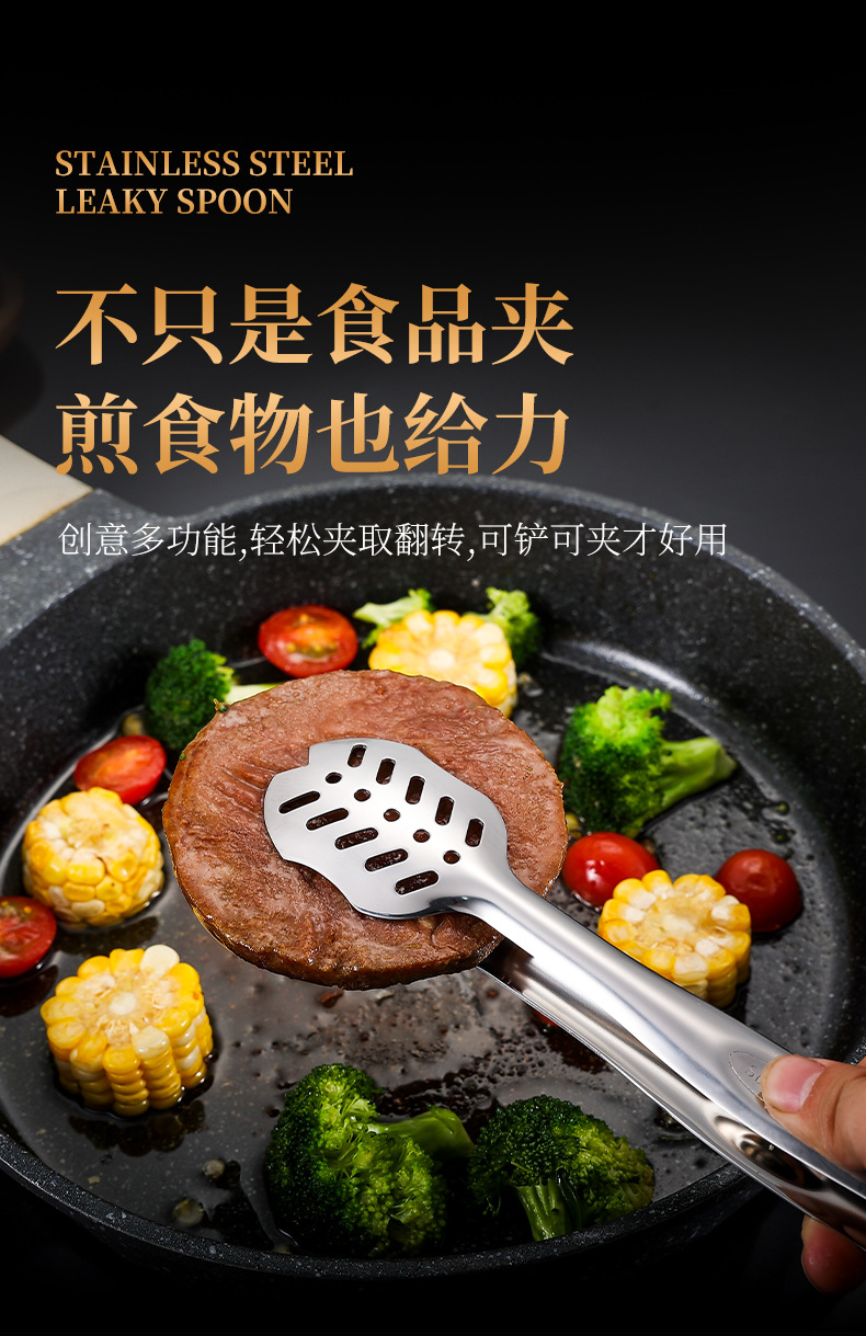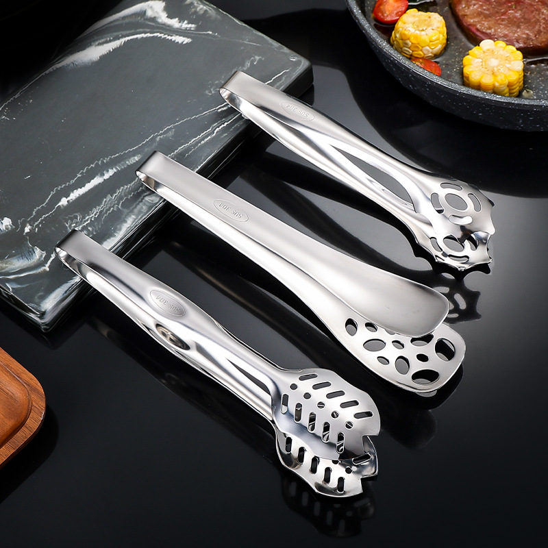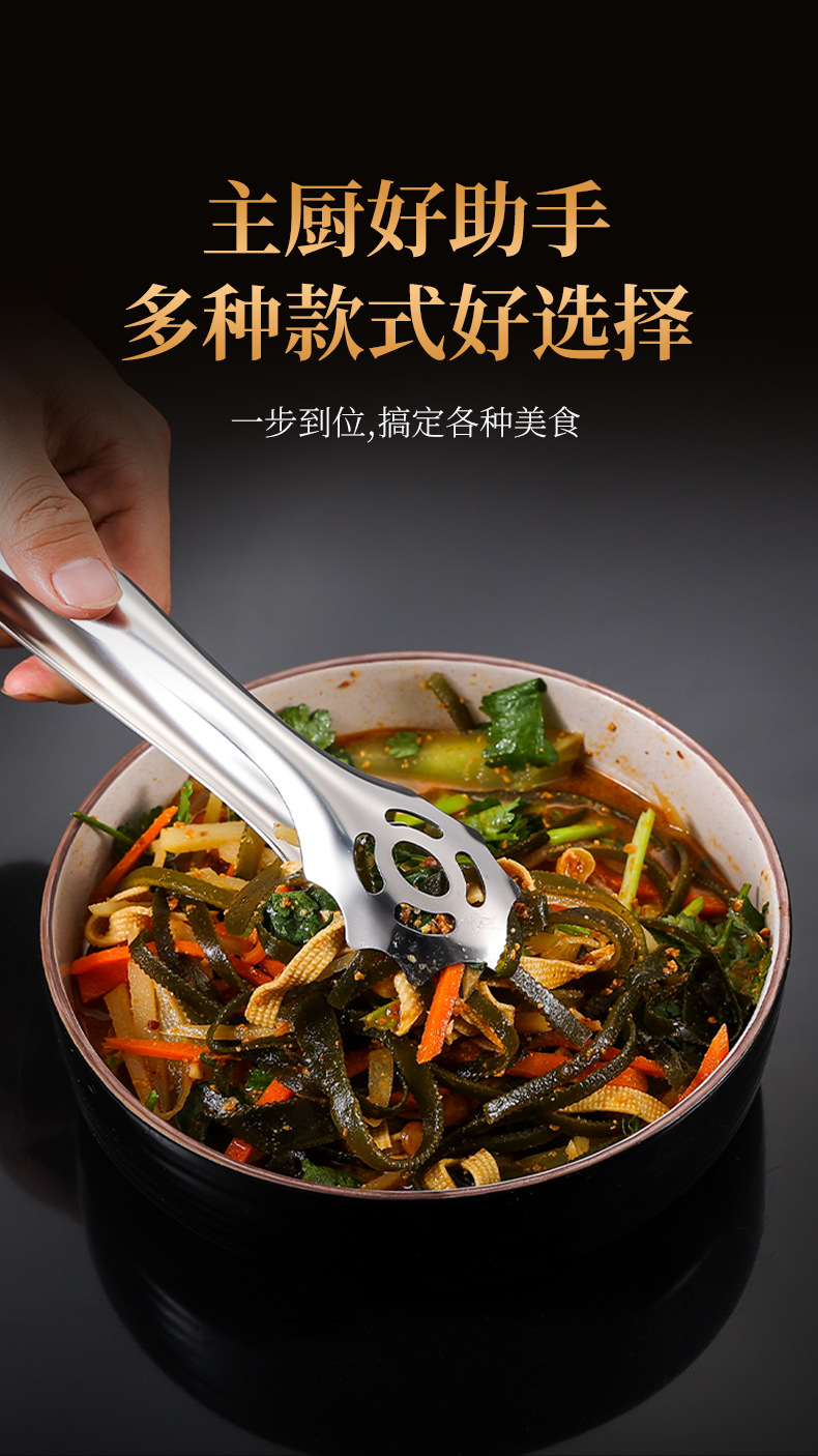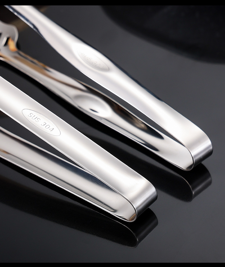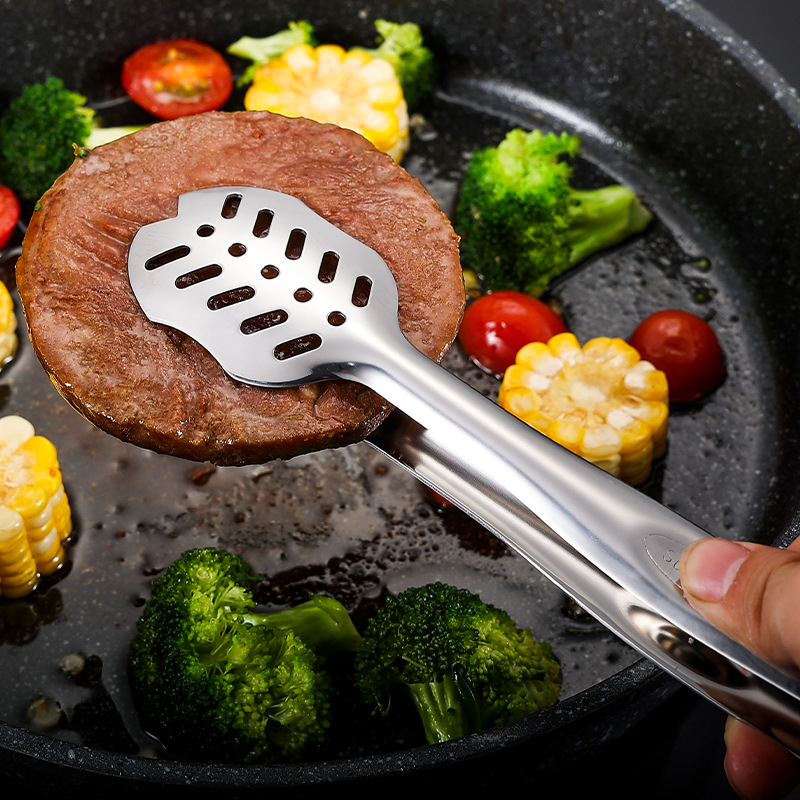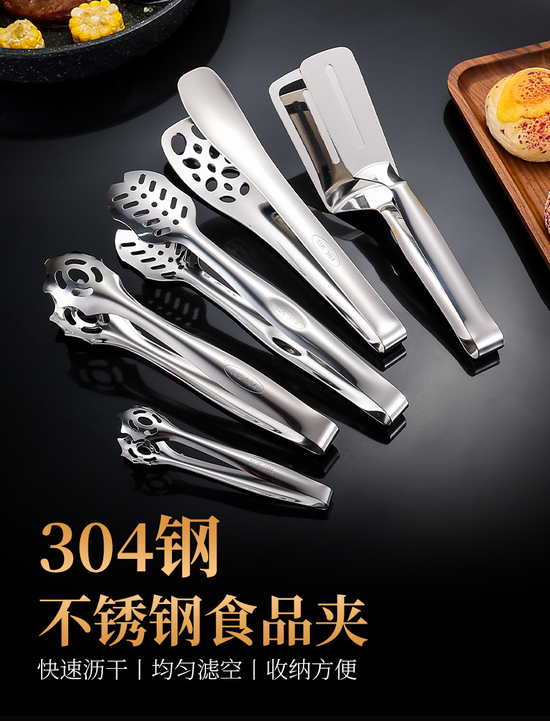 跨境304不锈钢食品夹牛排夹一体成型多用途家用厨房烤肉面包夹子