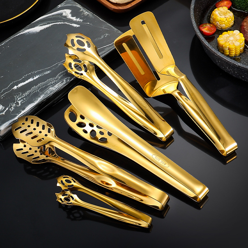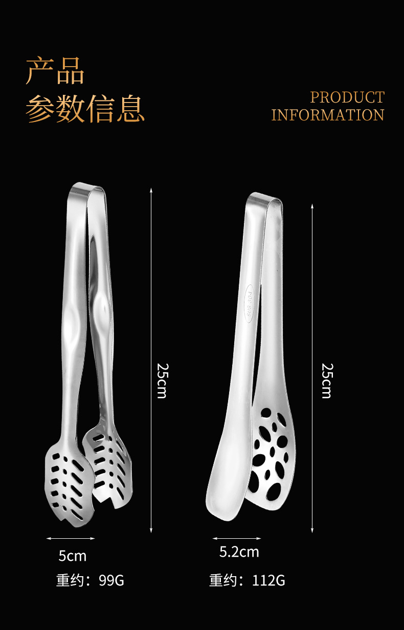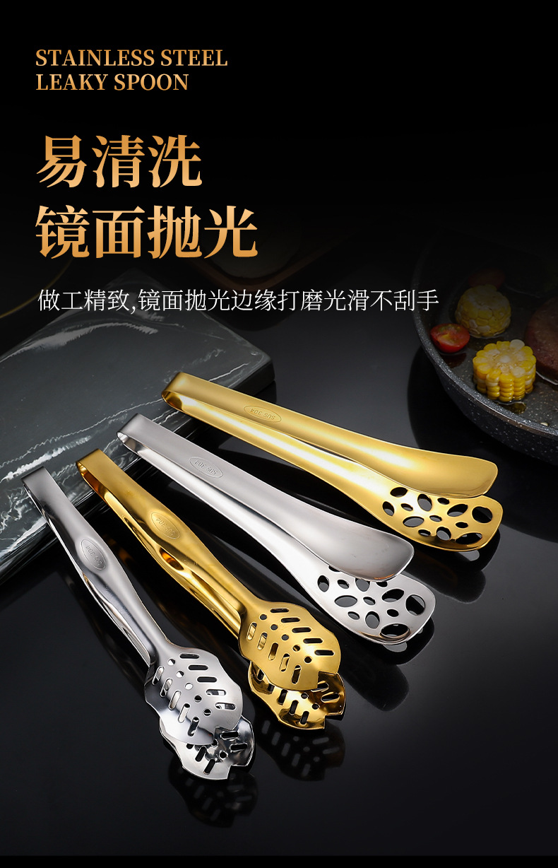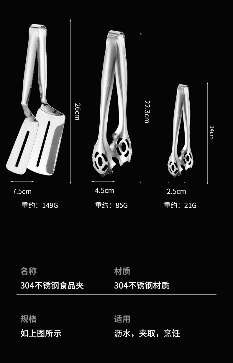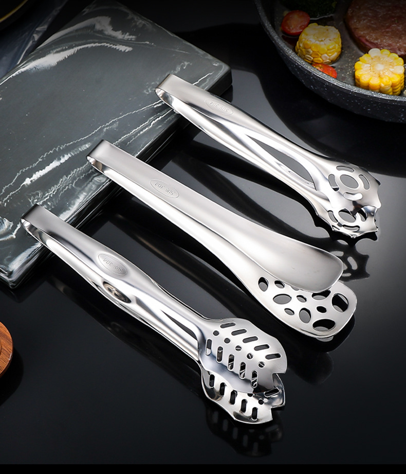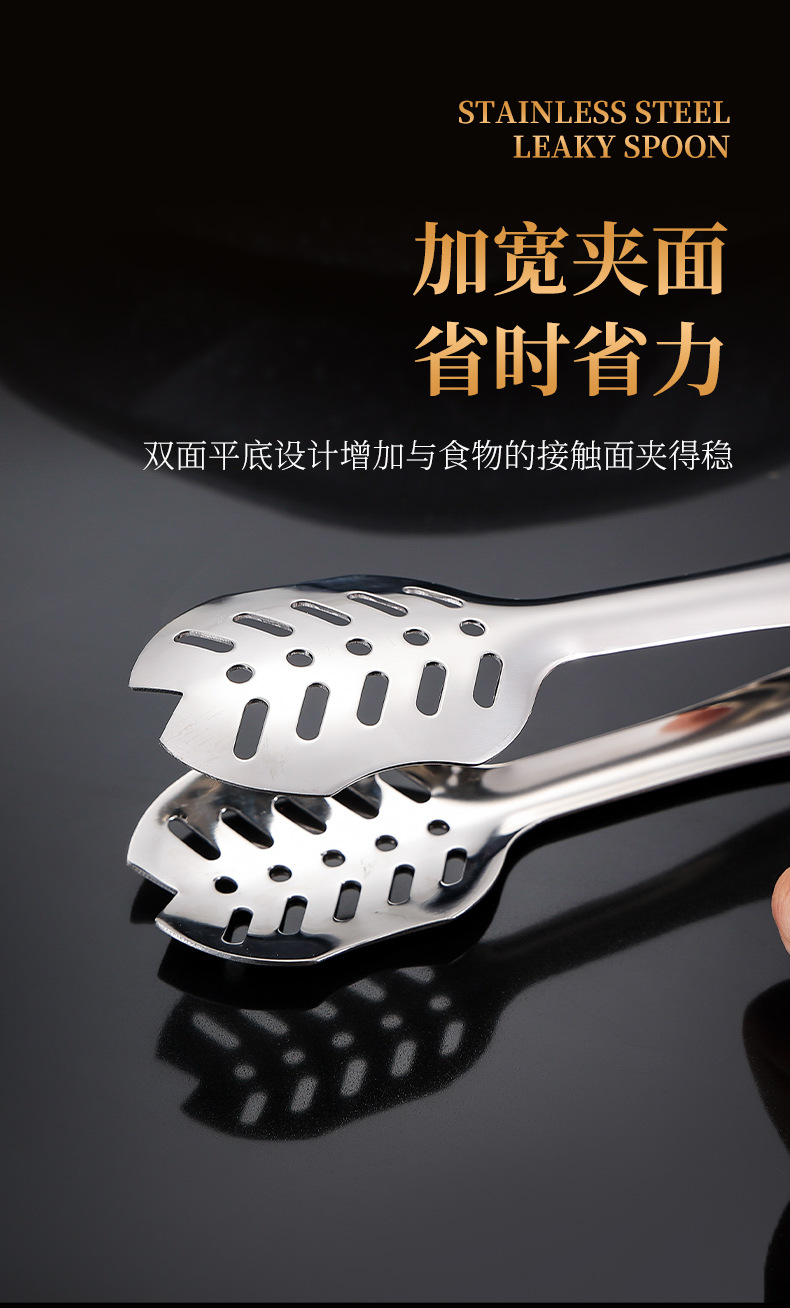 跨境304不锈钢食品夹牛排夹一体成型多用途家用厨房烤肉面包夹子