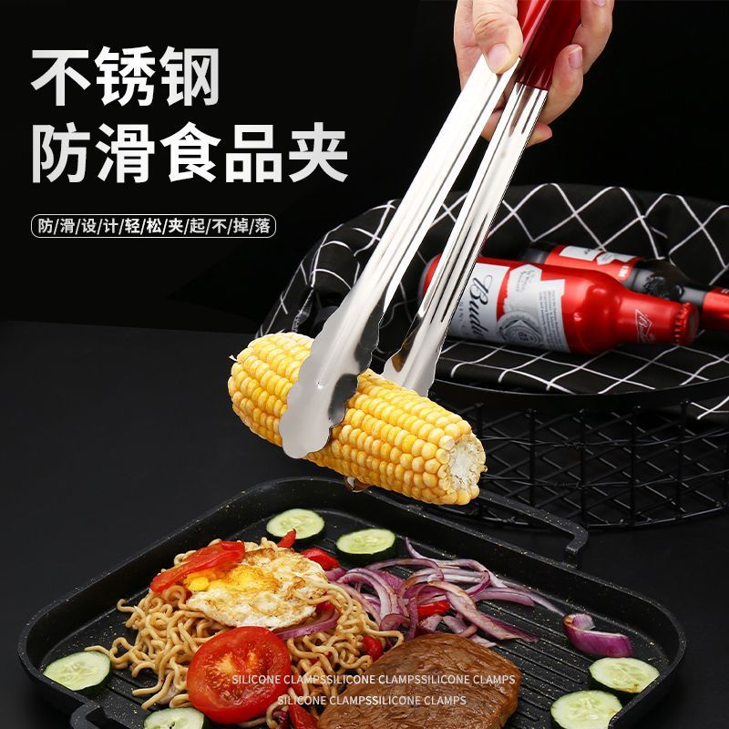 食品夹子加厚不锈钢烧烤食品夹烘培用具厨房煎炸防烫厂家亚马逊