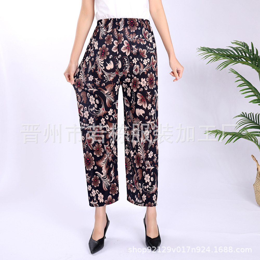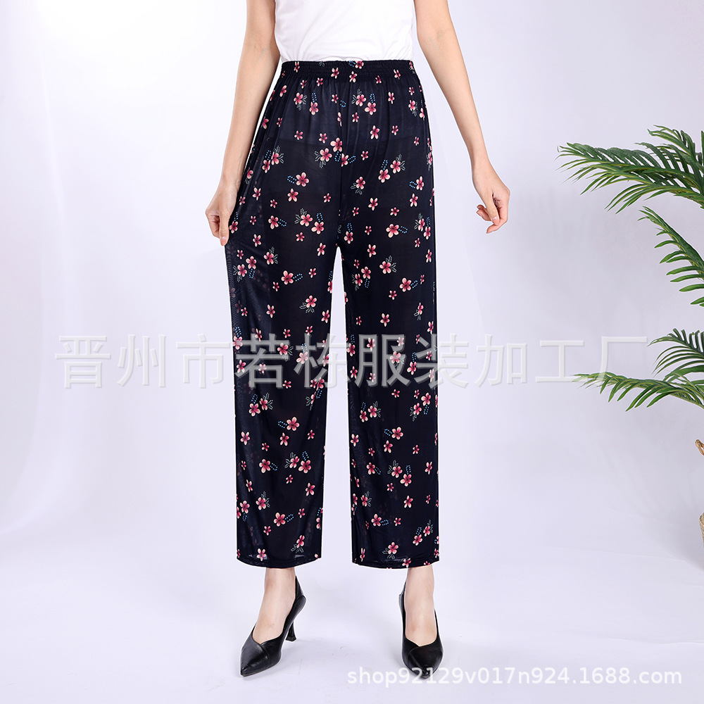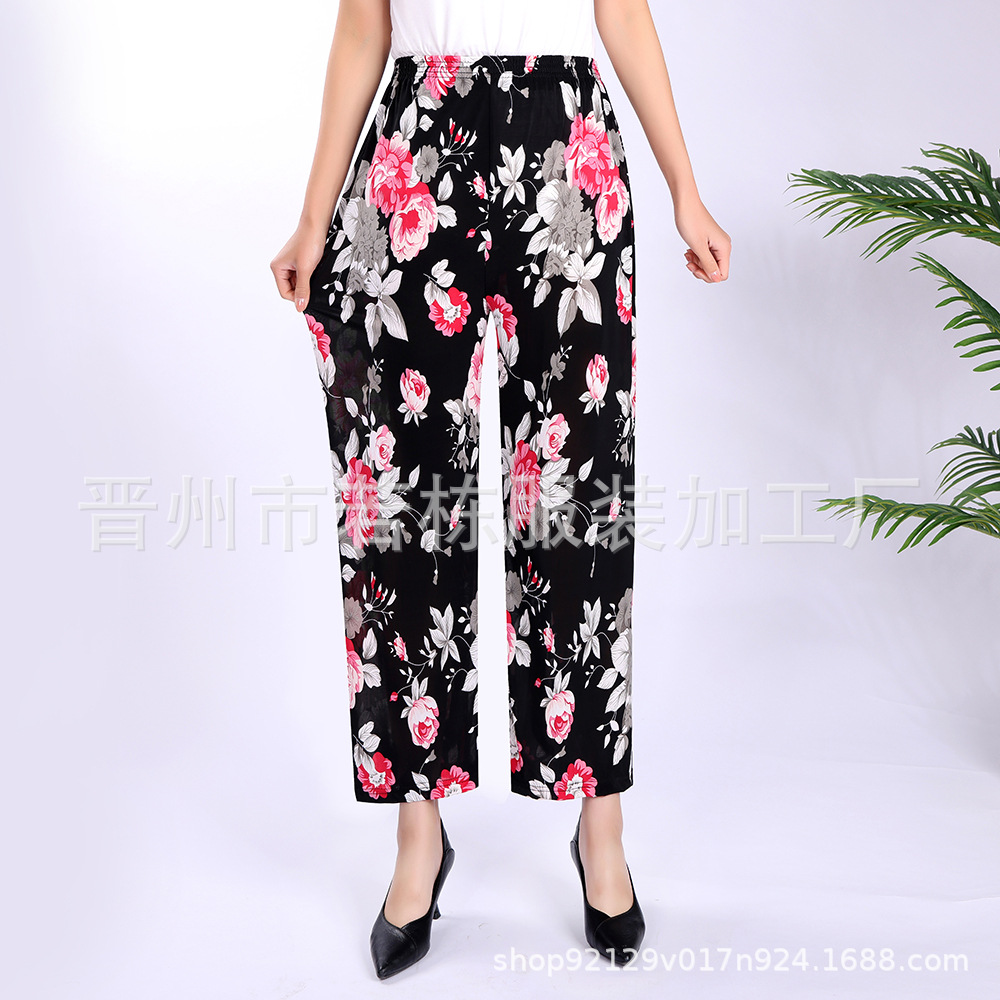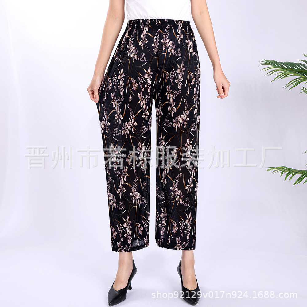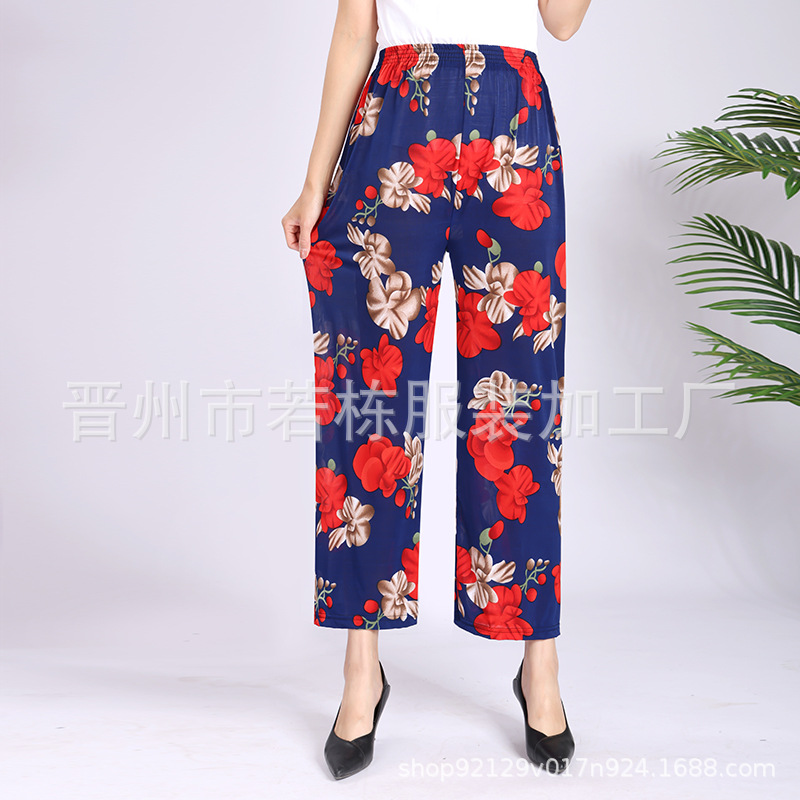 厂家直销夏季清凉冰丝女裤冰丝女花裤九分七分花裤中老年休闲裤