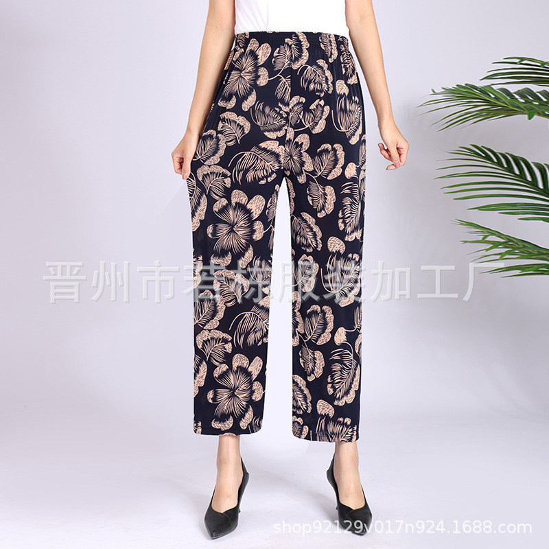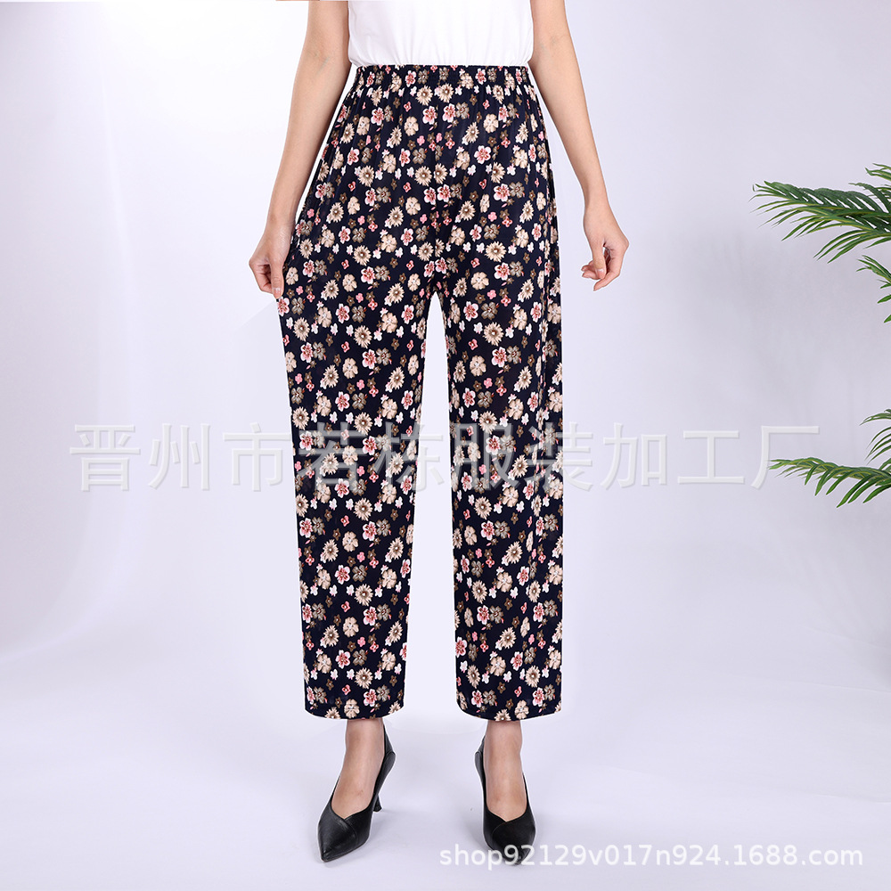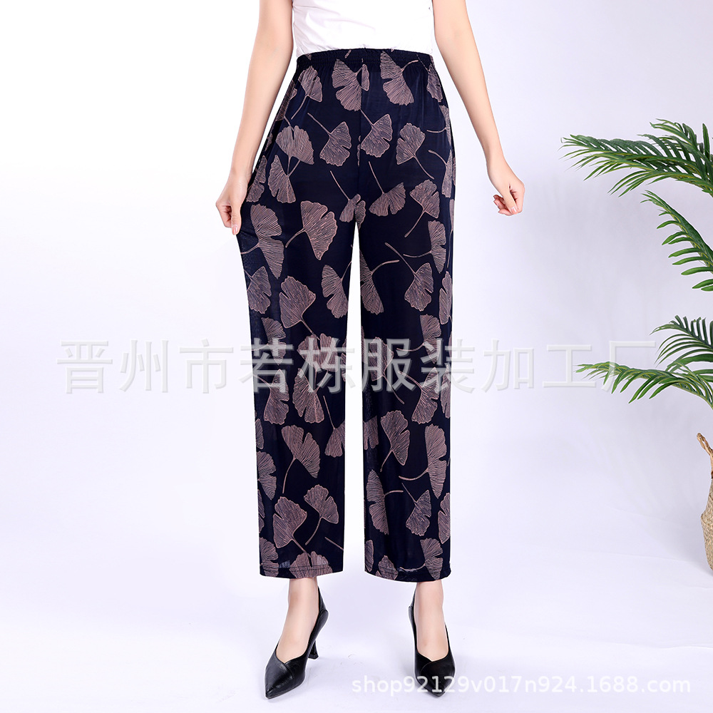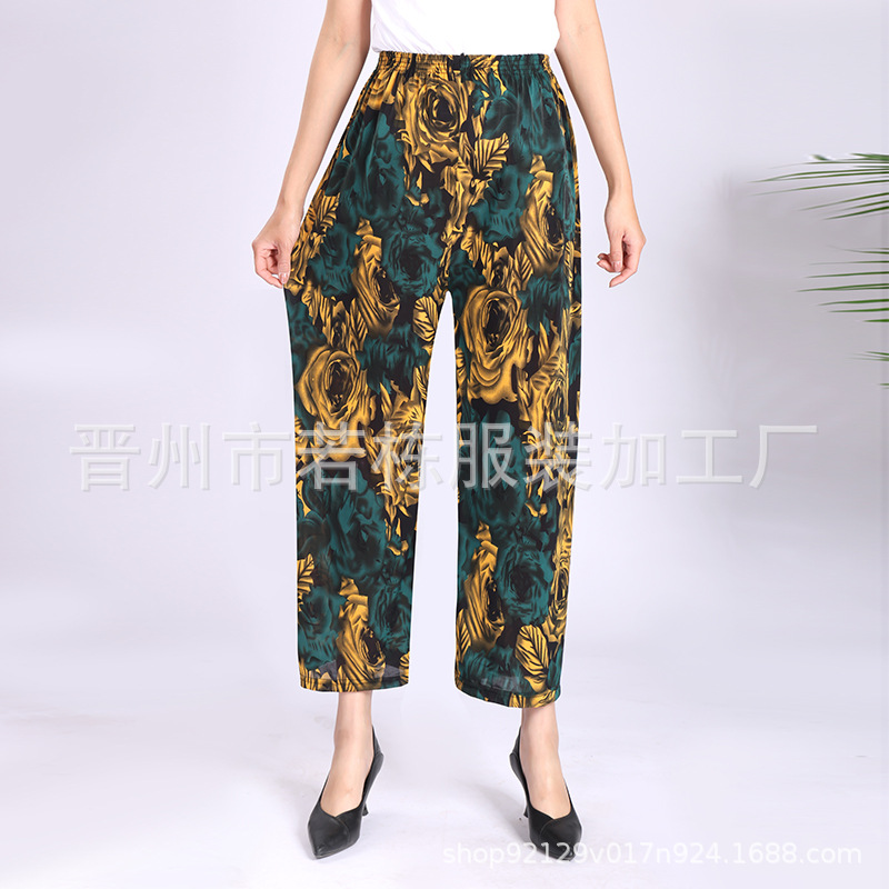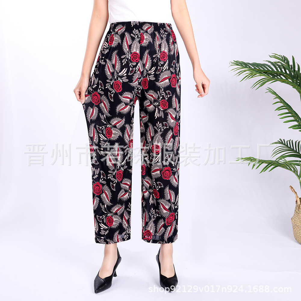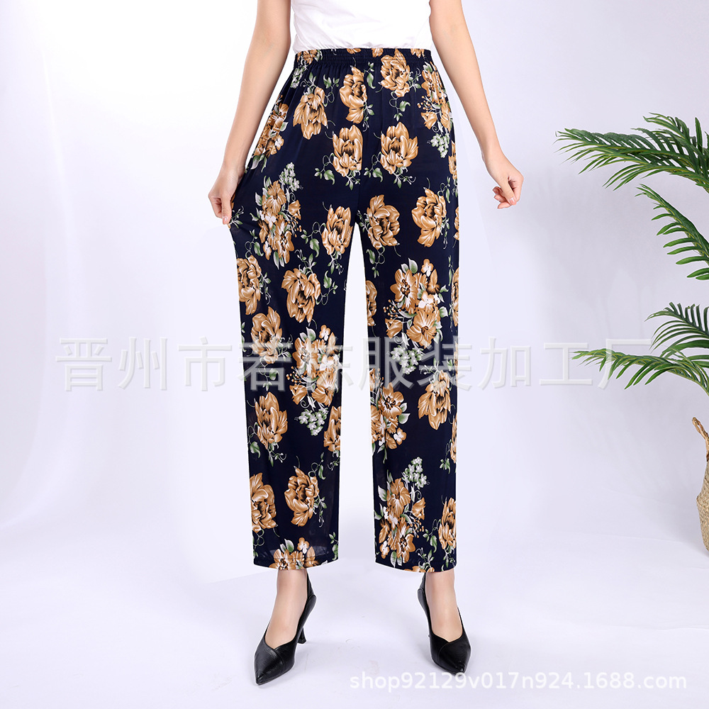 厂家直销夏季清凉冰丝女裤冰丝女花裤九分七分花裤中老年休闲裤