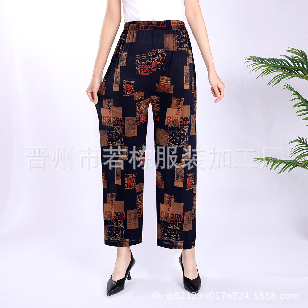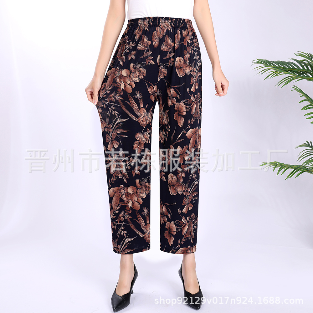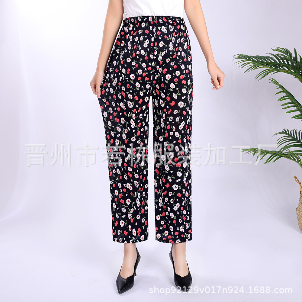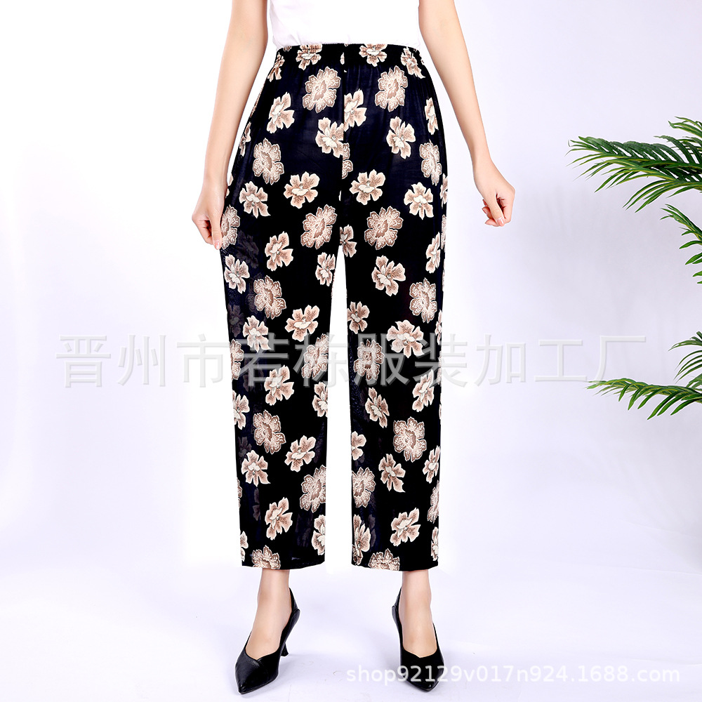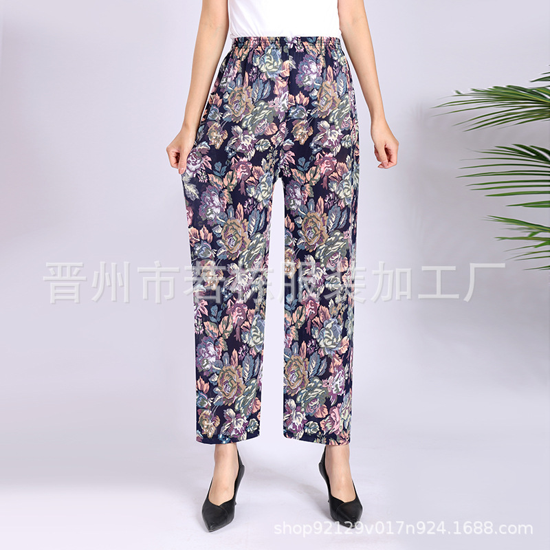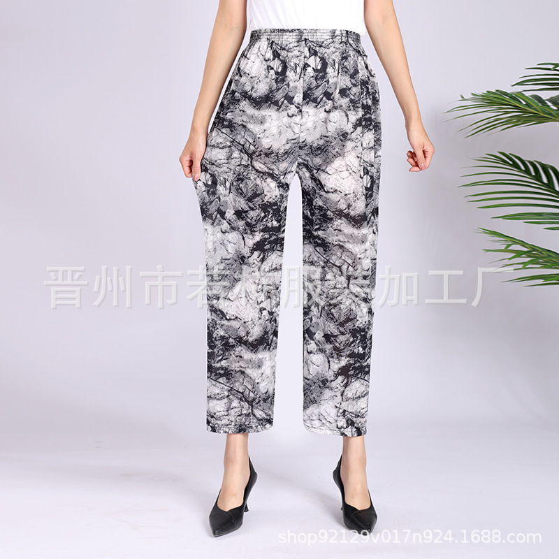 厂家直销夏季清凉冰丝女裤冰丝女花裤九分七分花裤中老年休闲裤