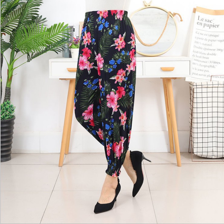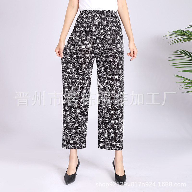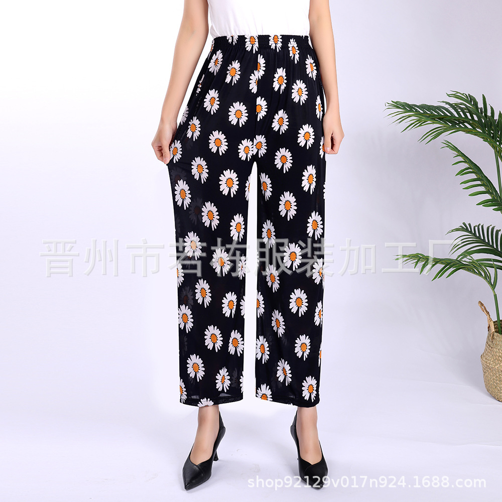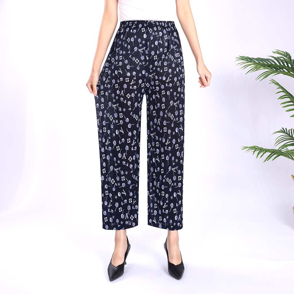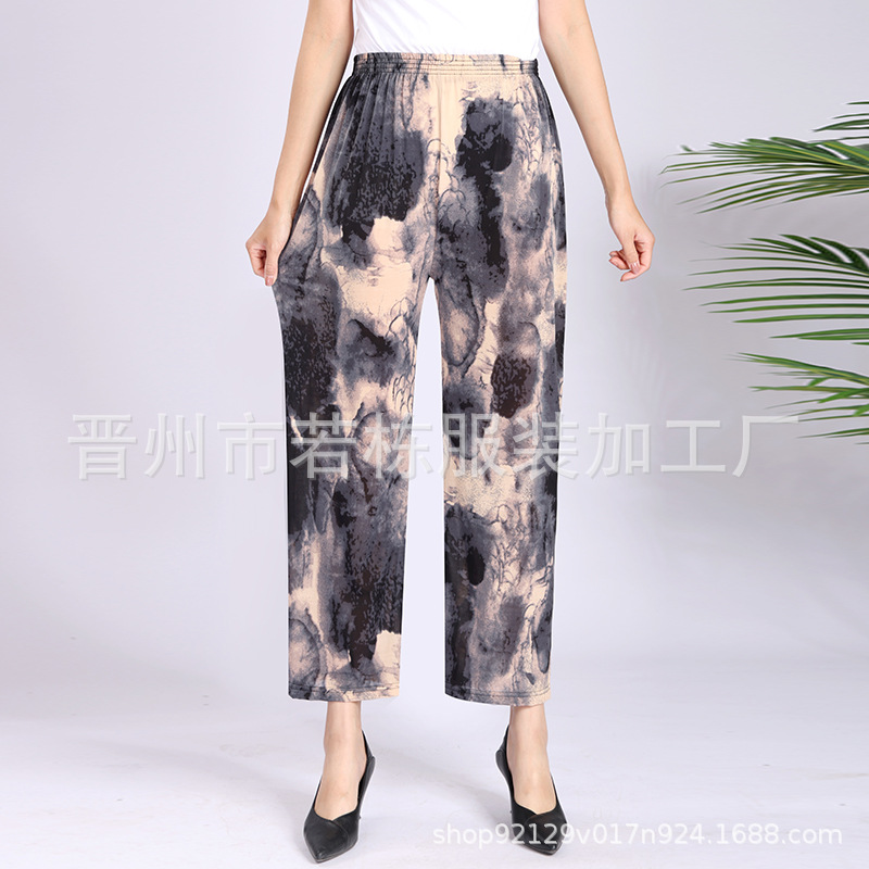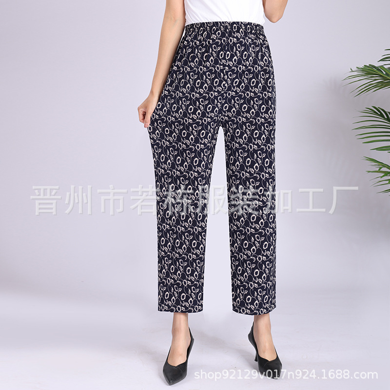 厂家直销夏季清凉冰丝女裤冰丝女花裤九分七分花裤中老年休闲裤
