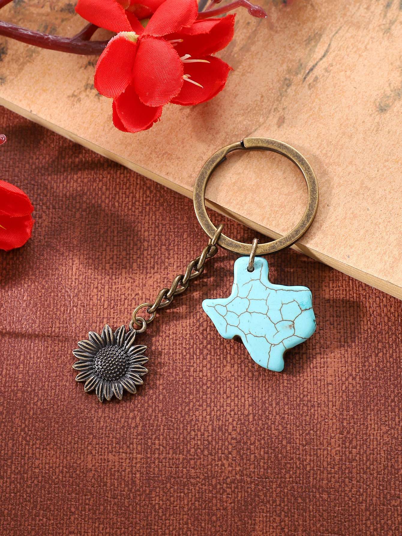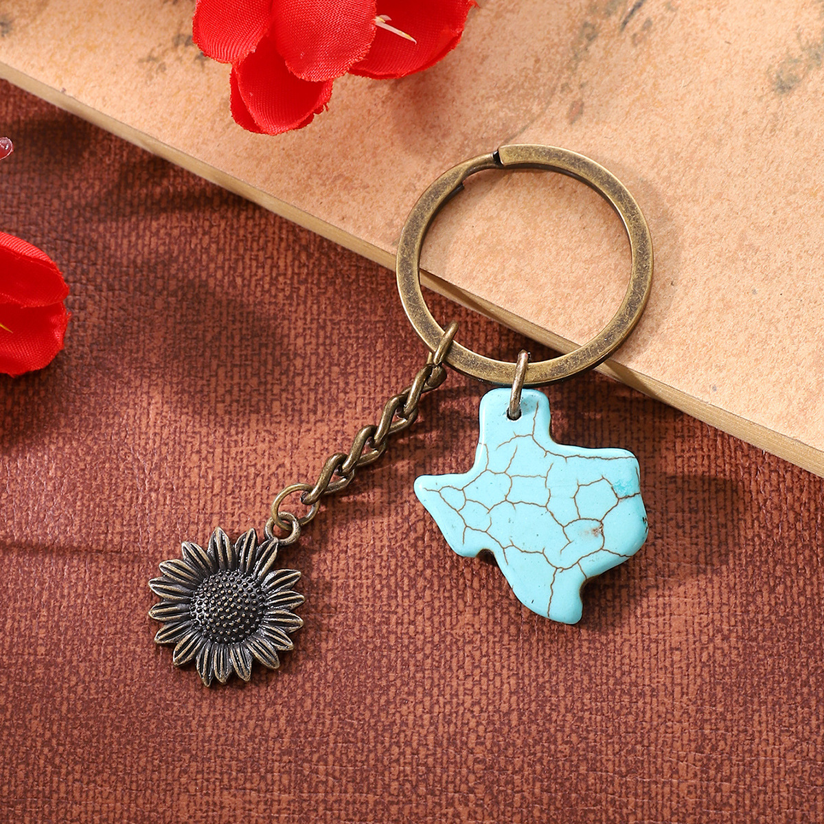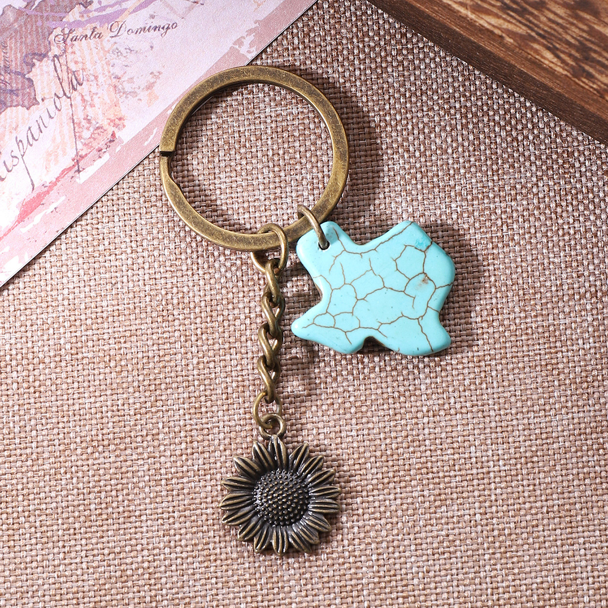 合金向日葵钥匙扣天然松石配件挂件包包做旧复古跨境欧美亚马逊