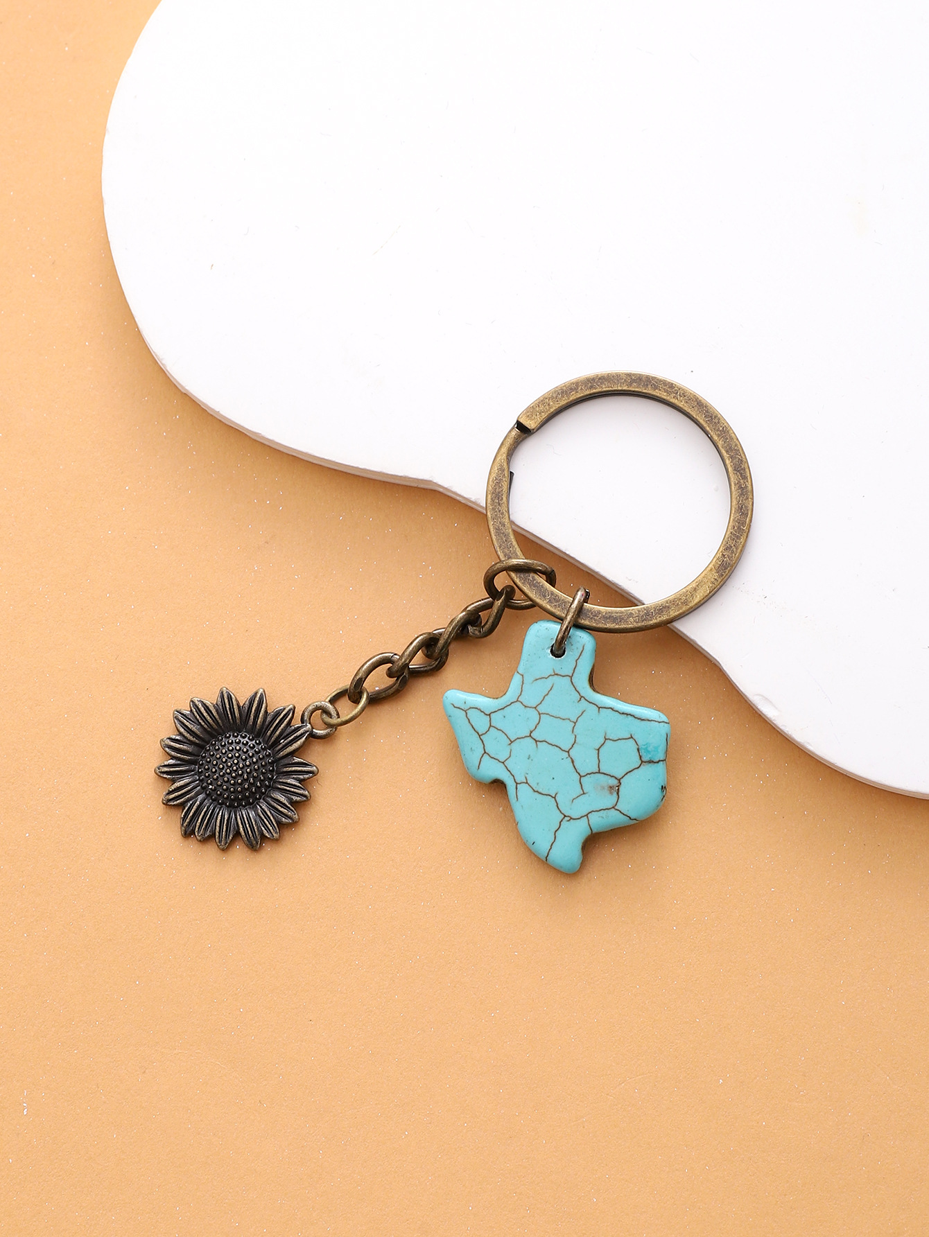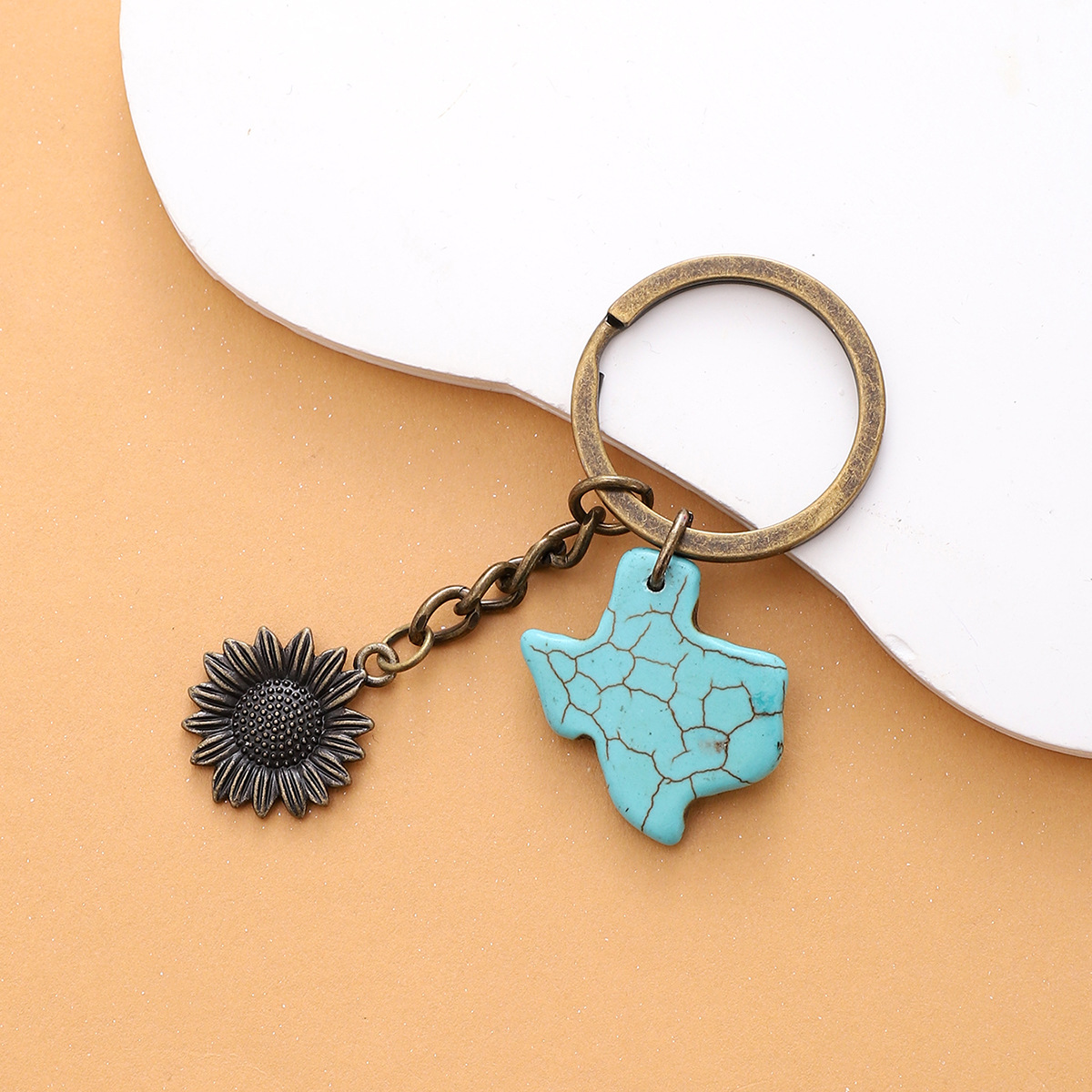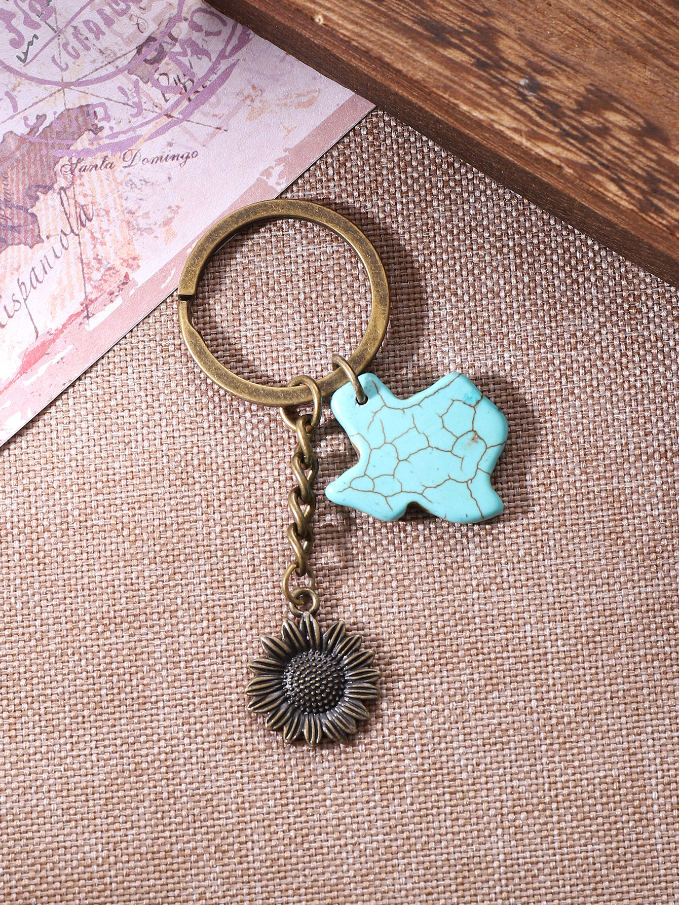 合金向日葵钥匙扣天然松石配件挂件包包做旧复古跨境欧美亚马逊