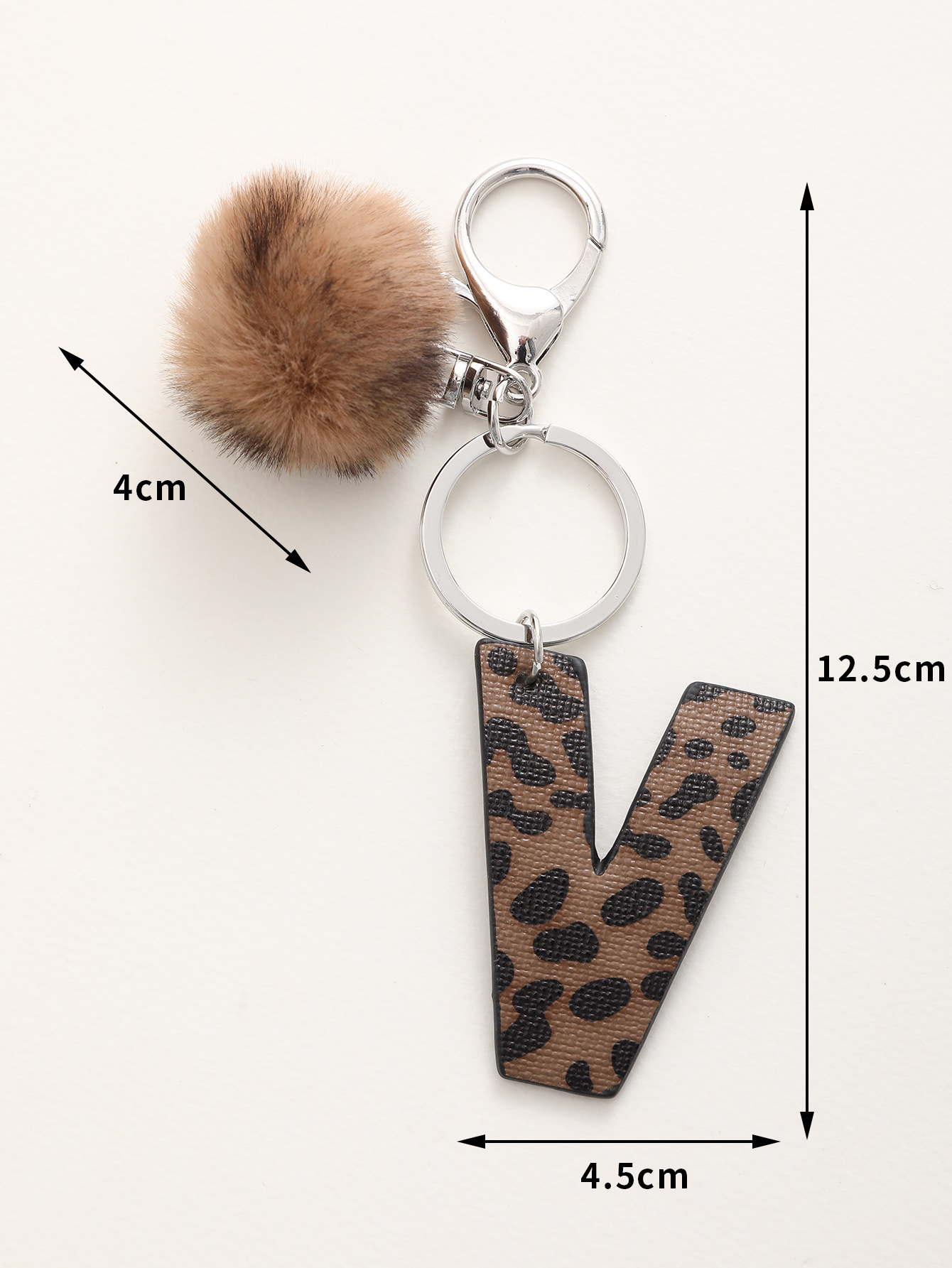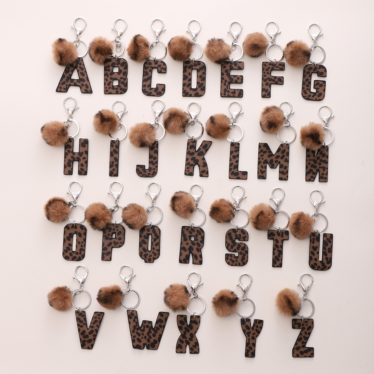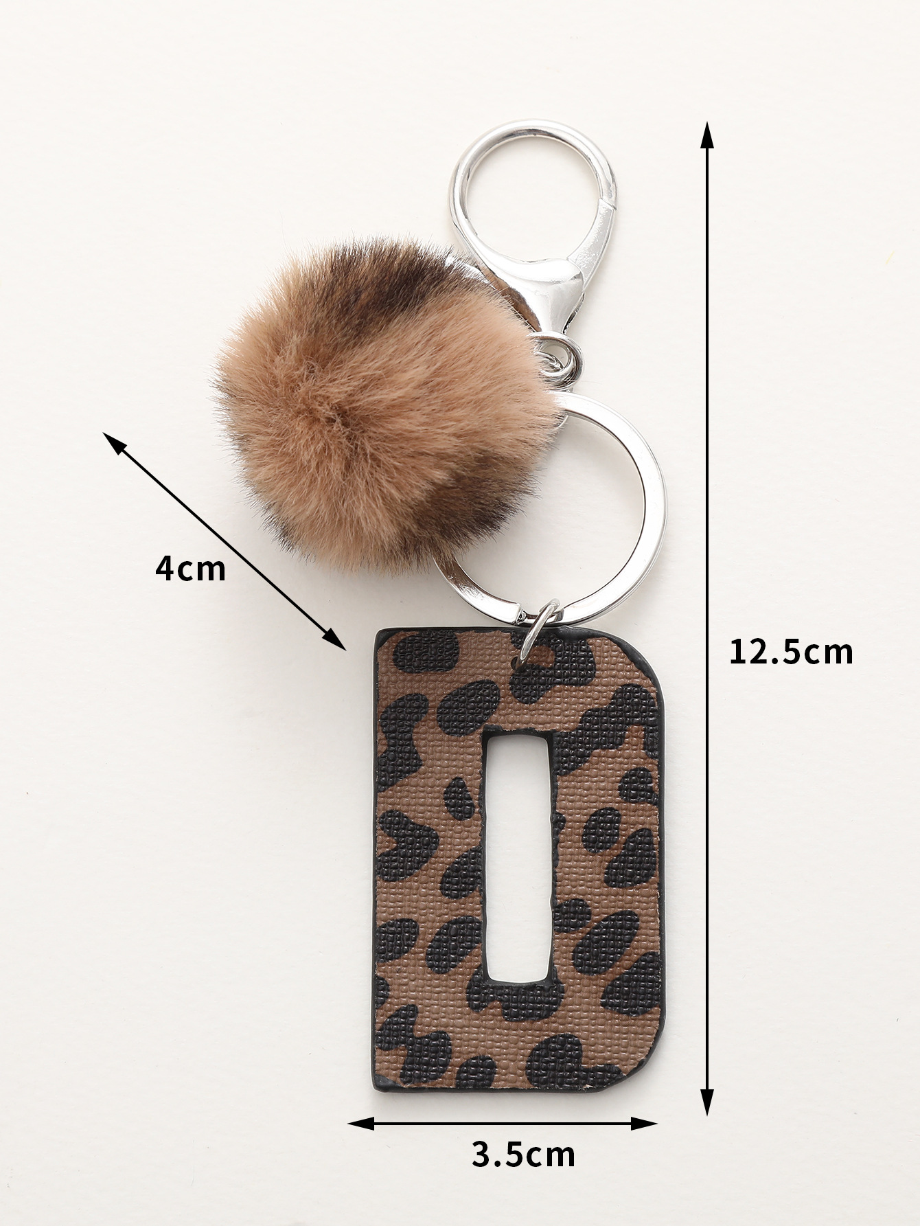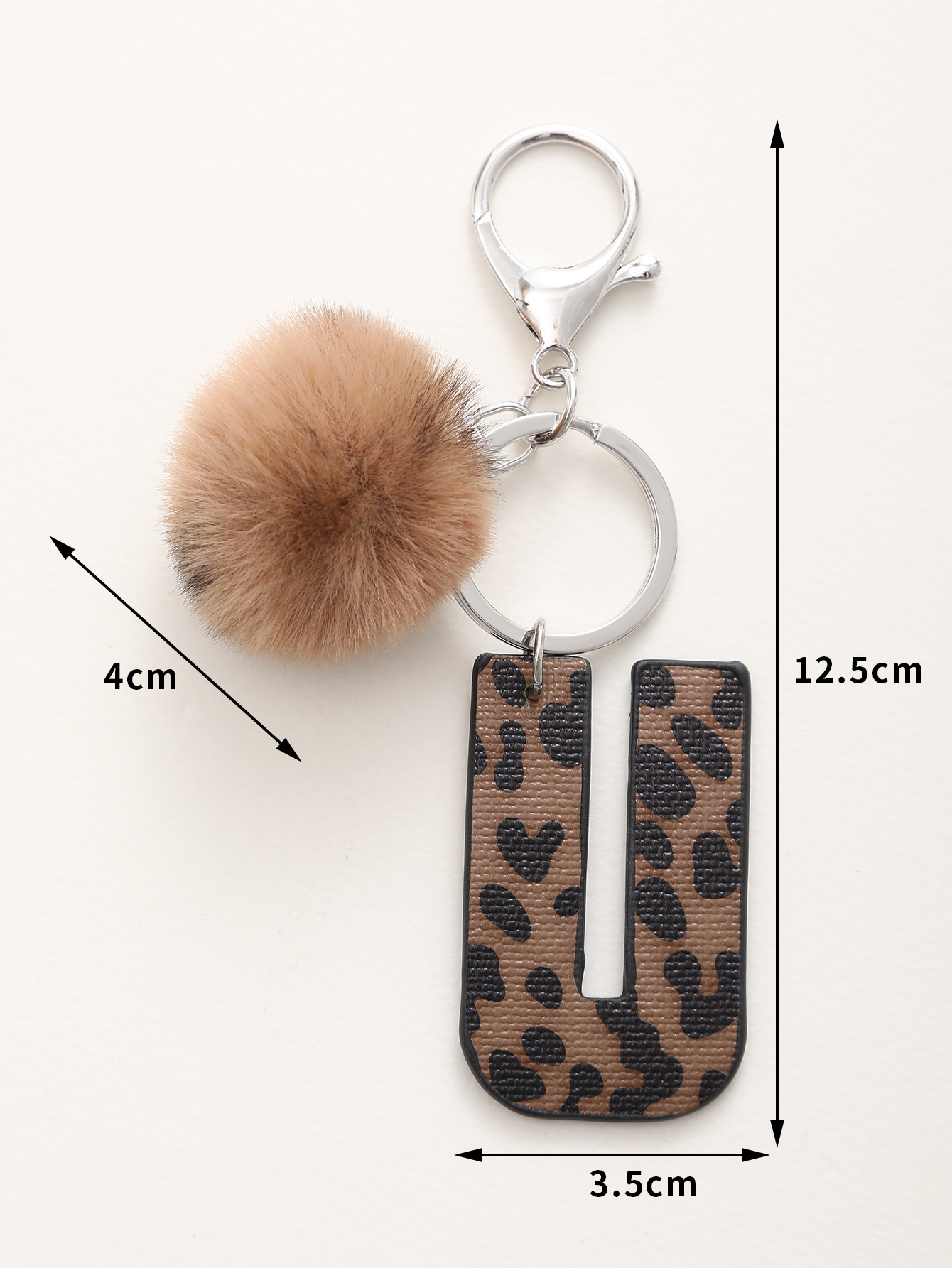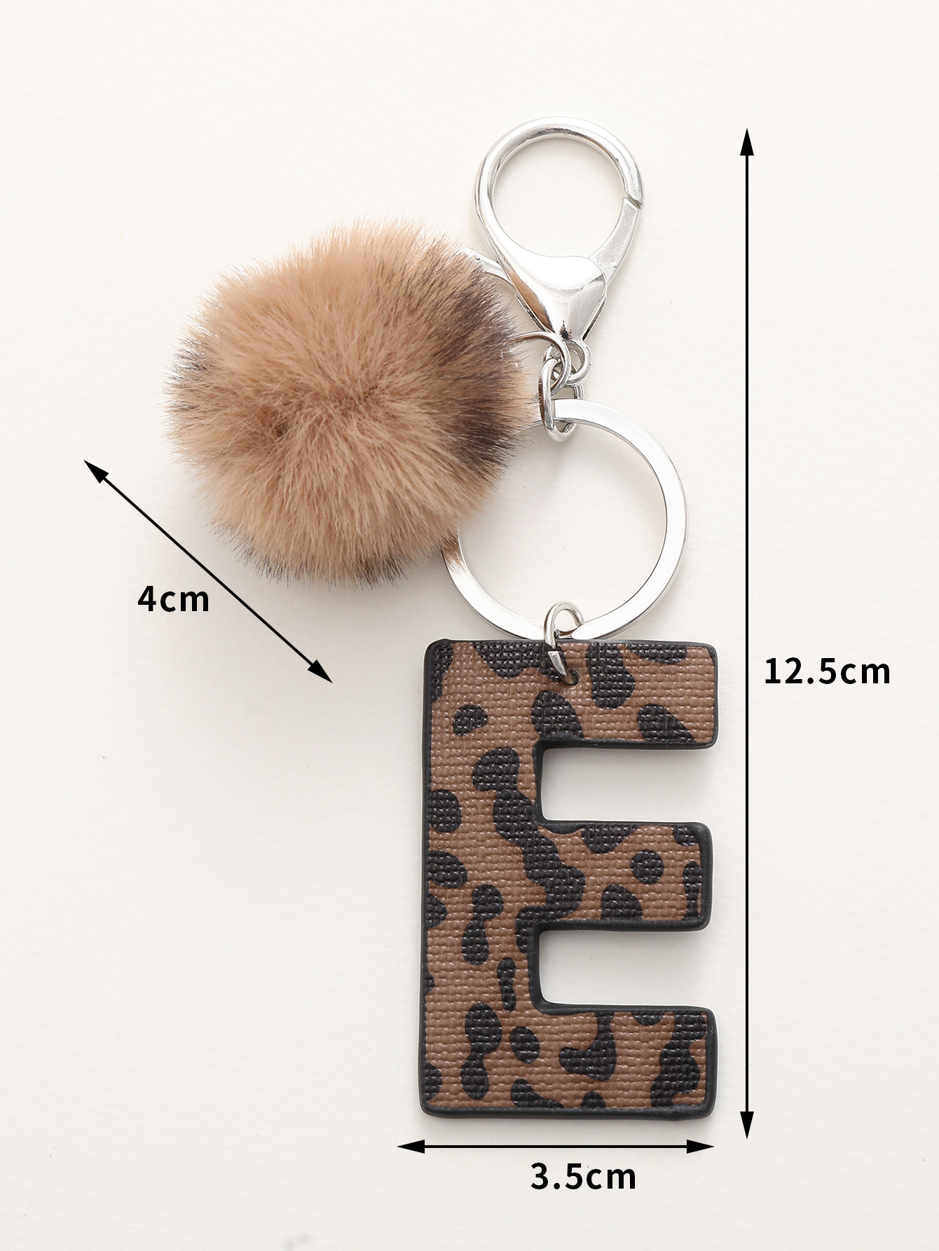 西部牛仔风豹纹油边字母皮革钥匙扣汽车挂件毛绒球配件跨境亚马
