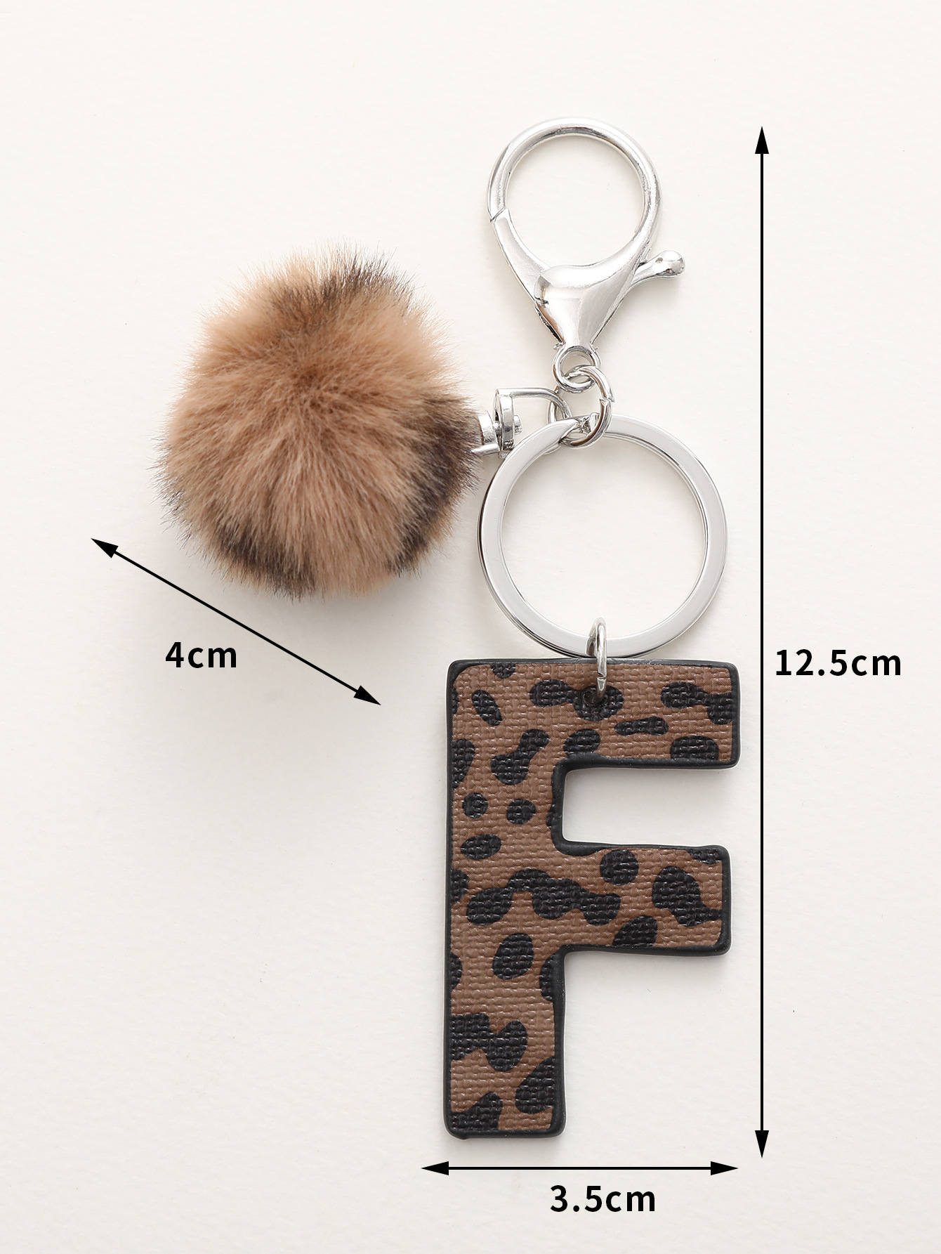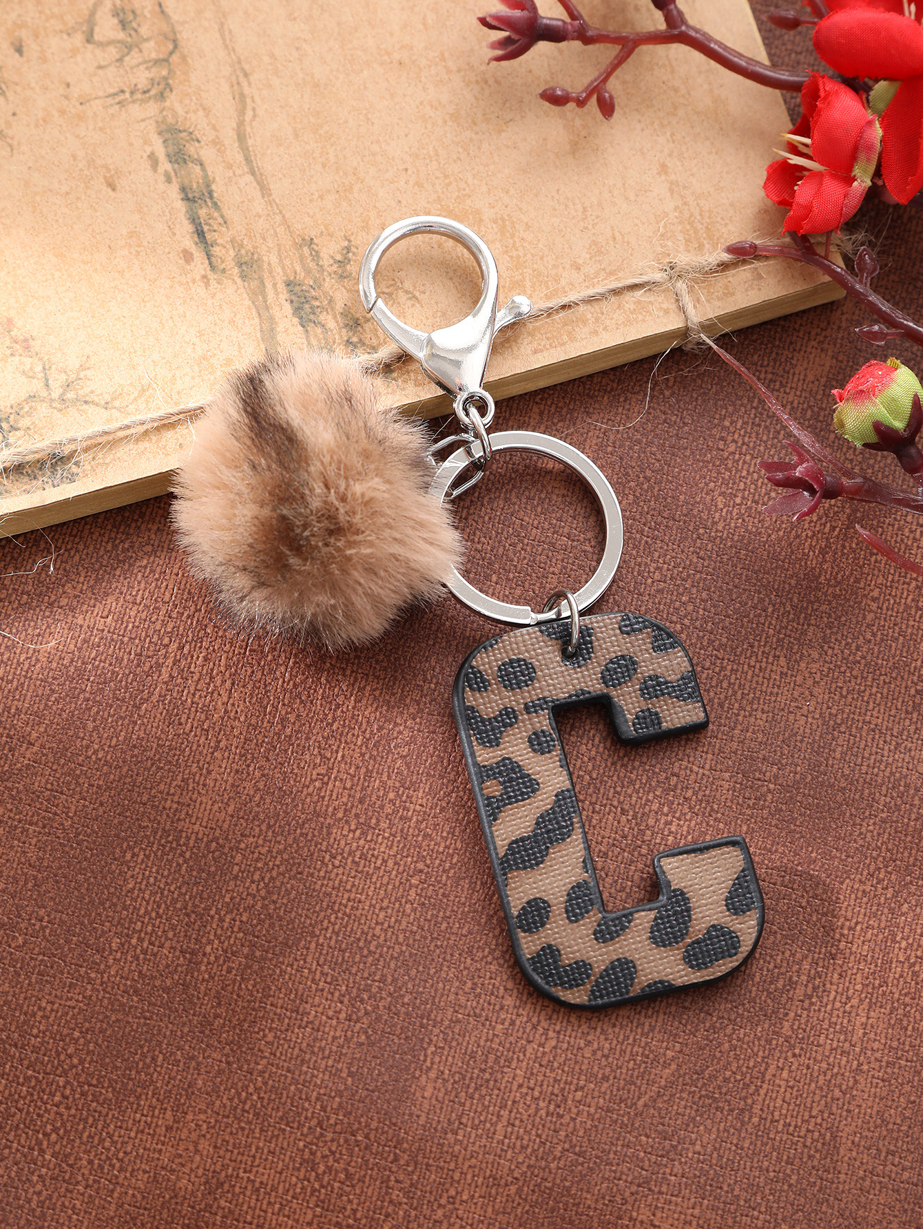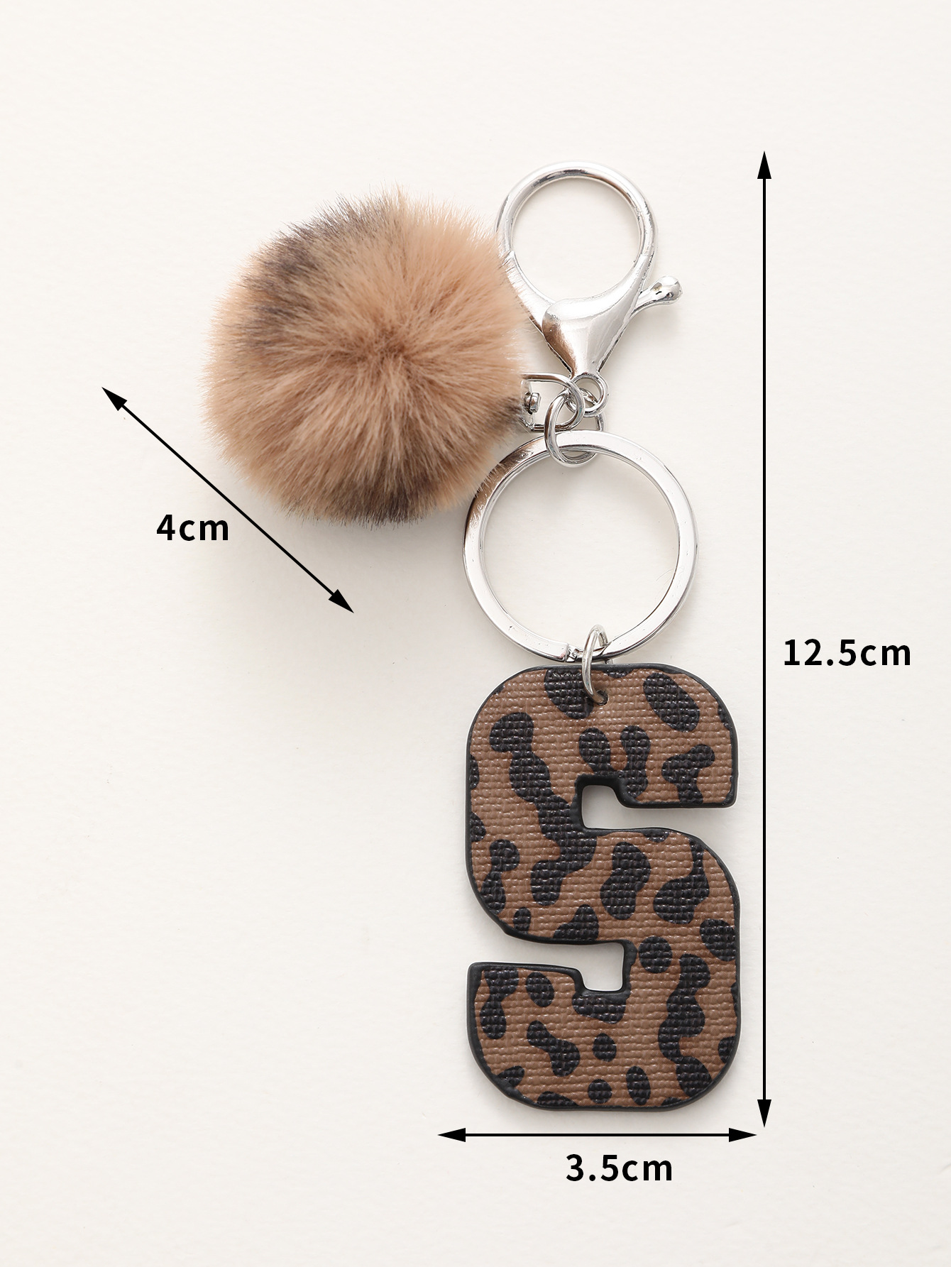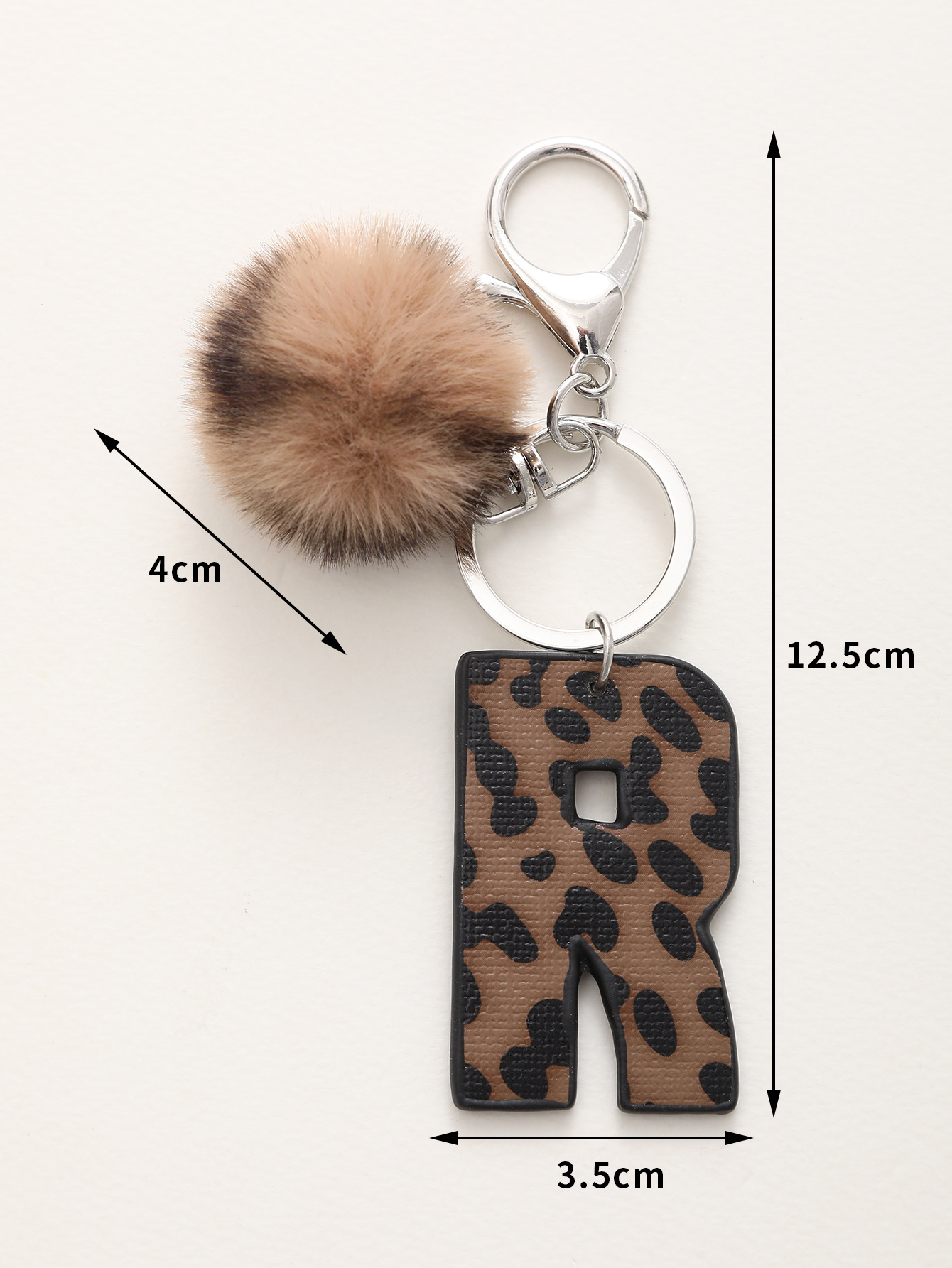 西部牛仔风豹纹油边字母皮革钥匙扣汽车挂件毛绒球配件跨境亚马