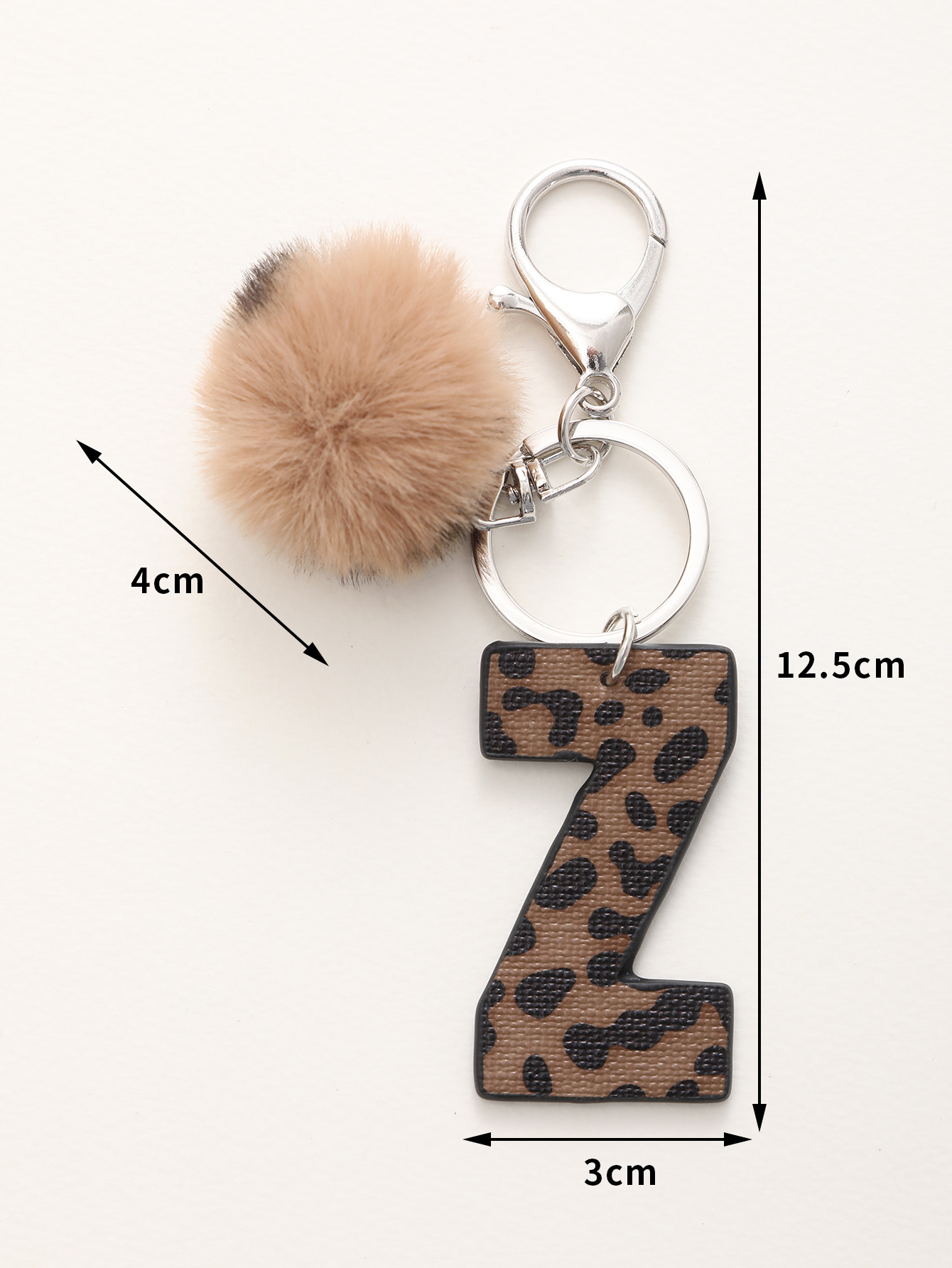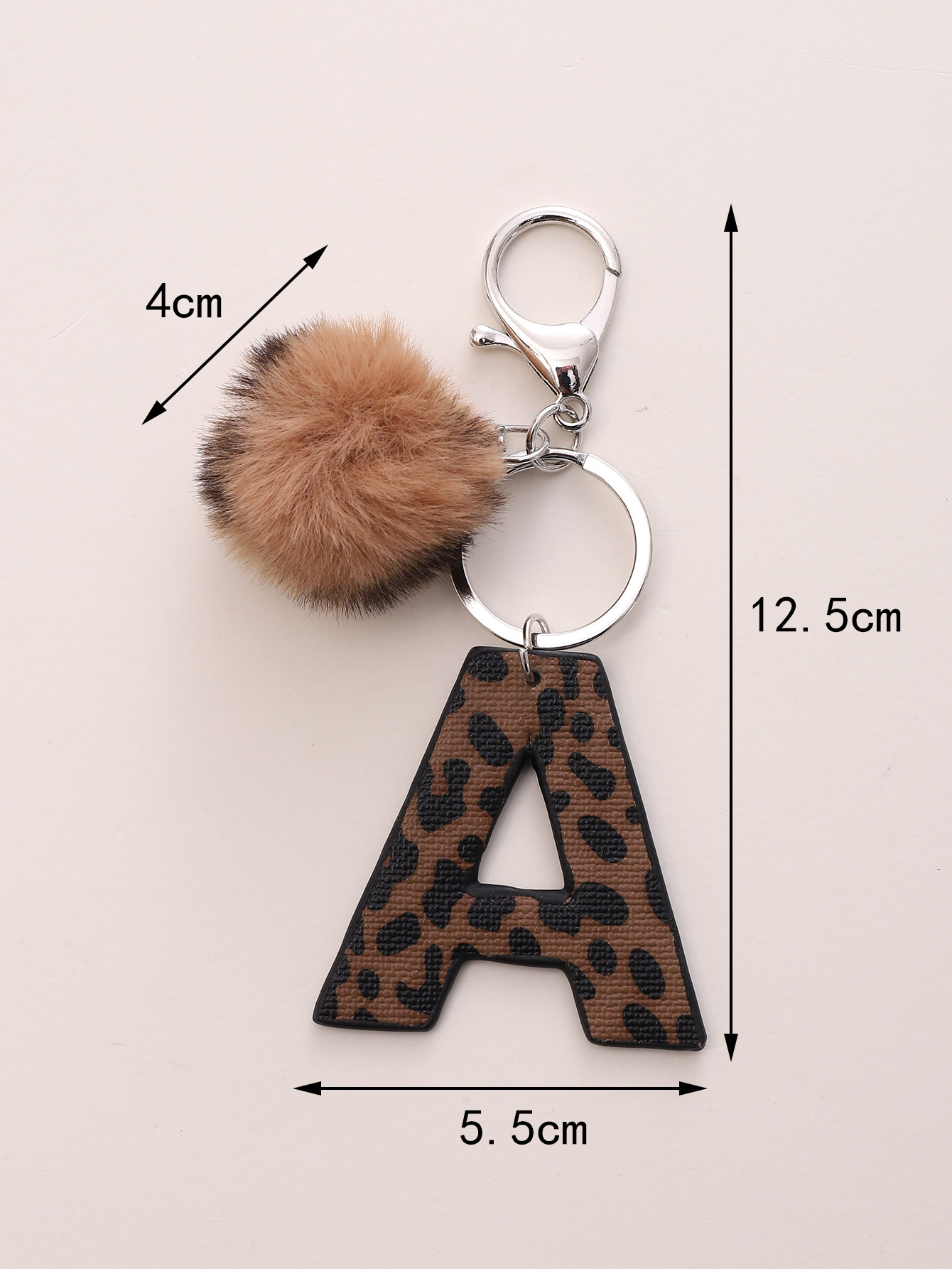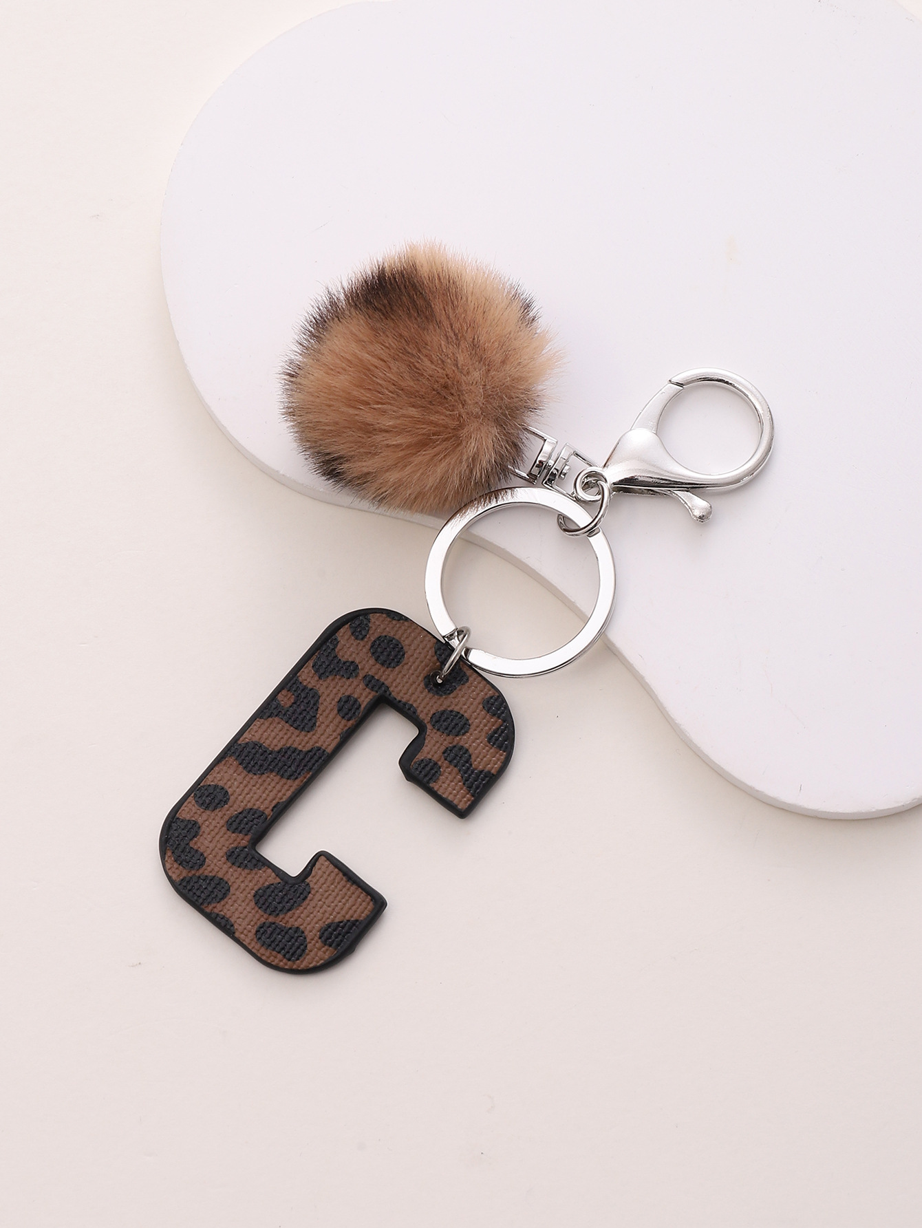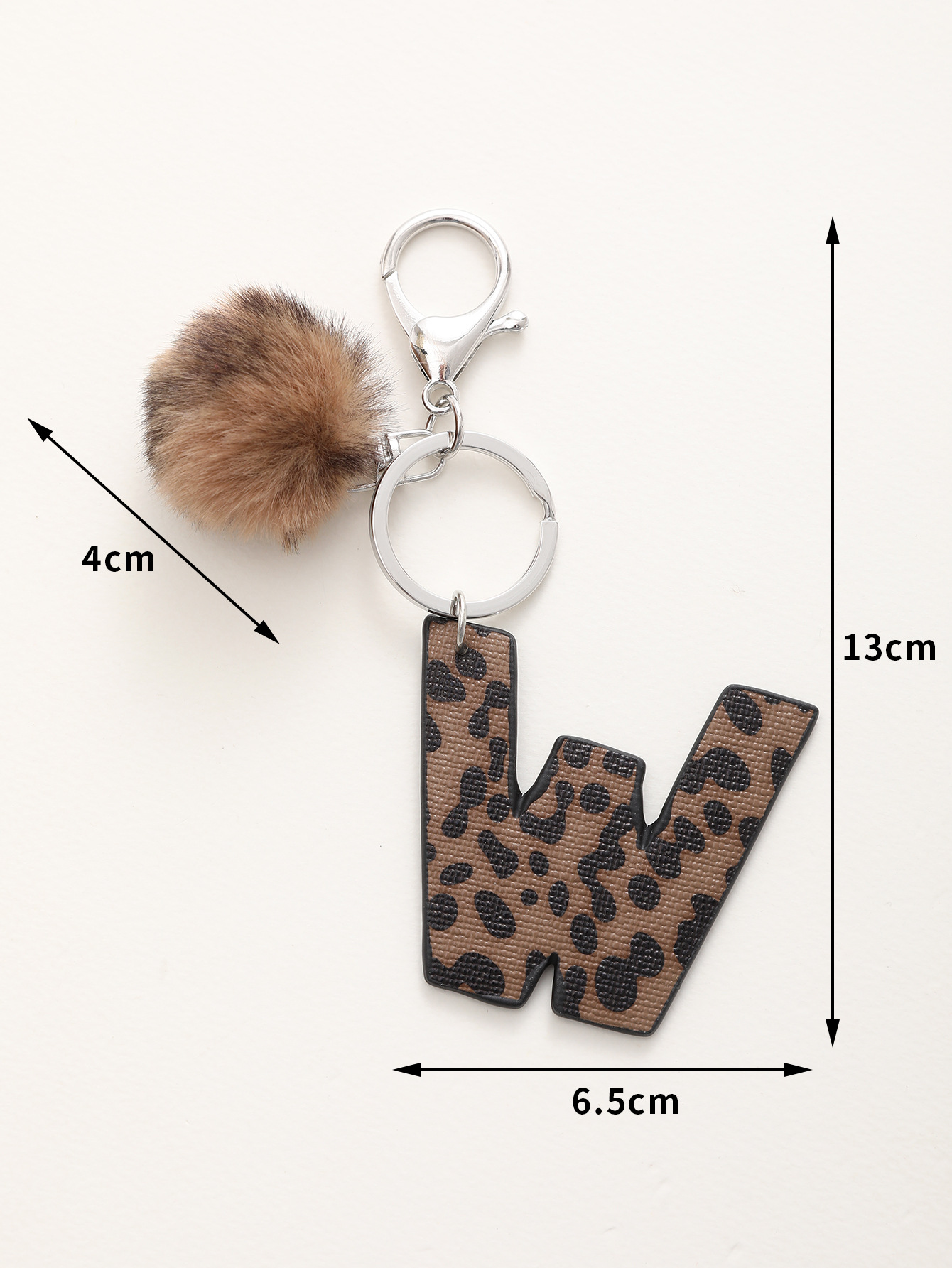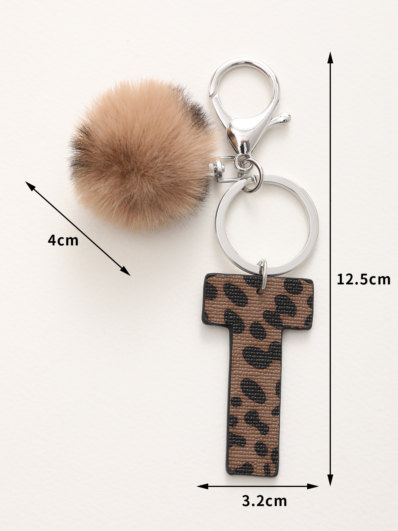 西部牛仔风豹纹油边字母皮革钥匙扣汽车挂件毛绒球配件跨境亚马