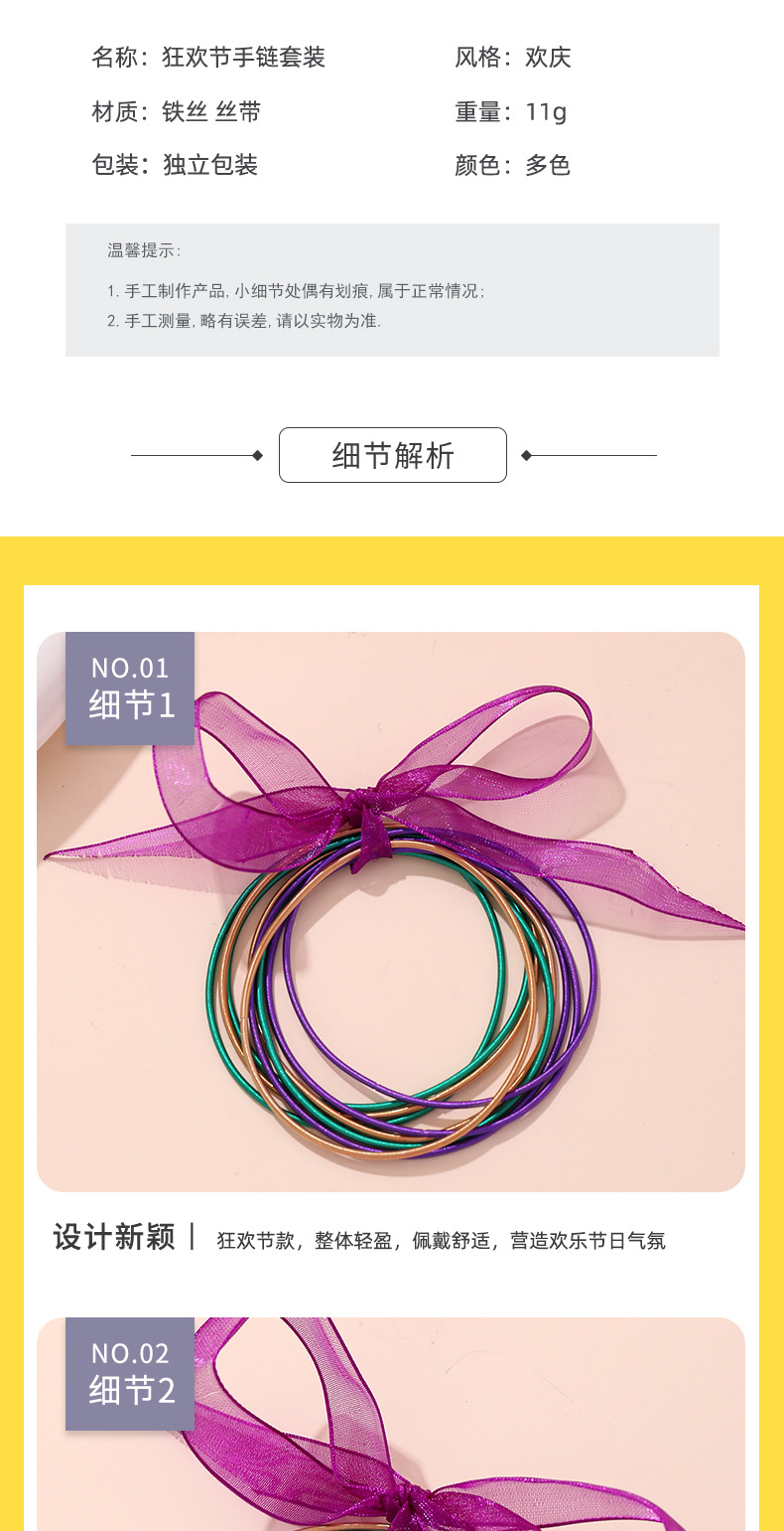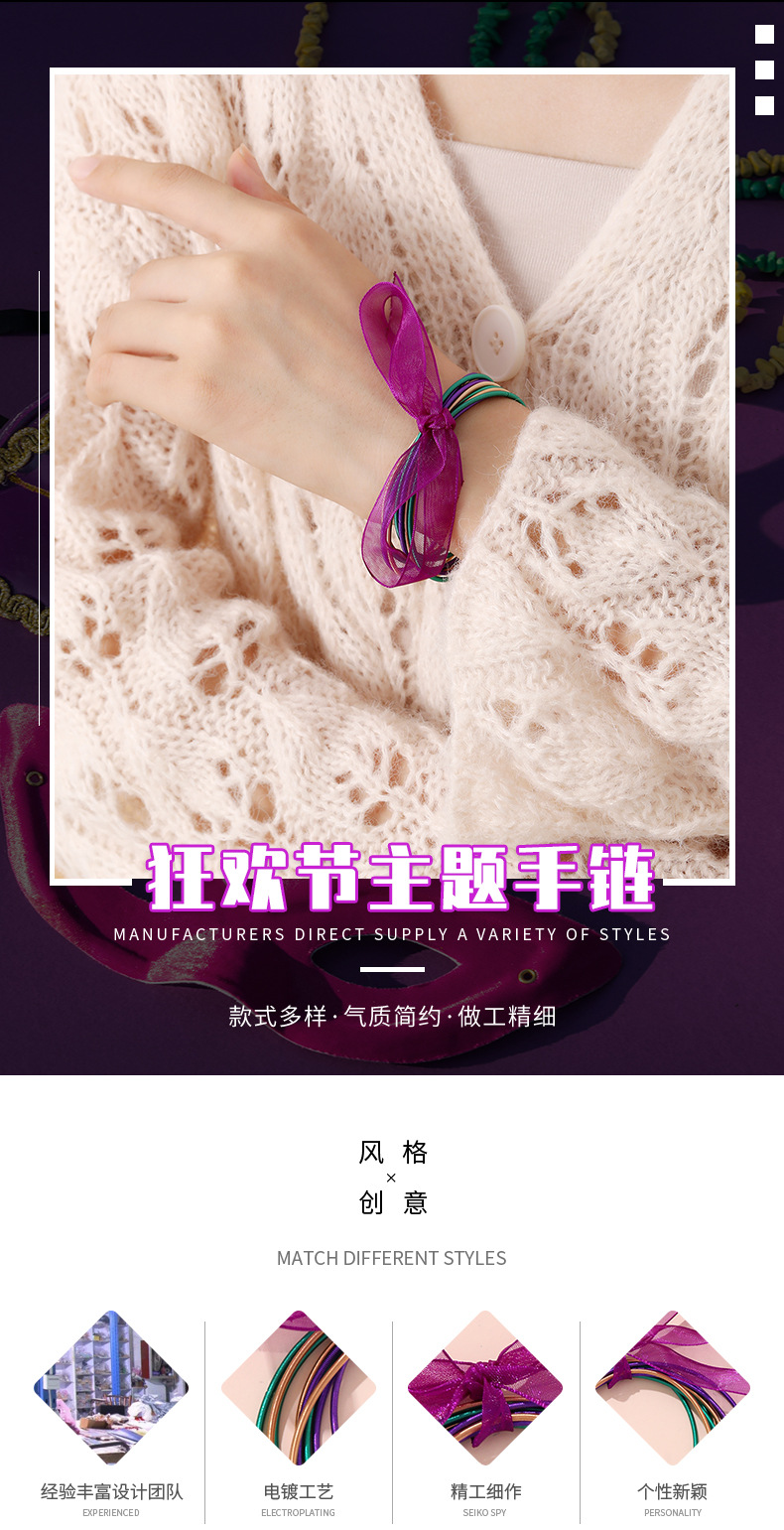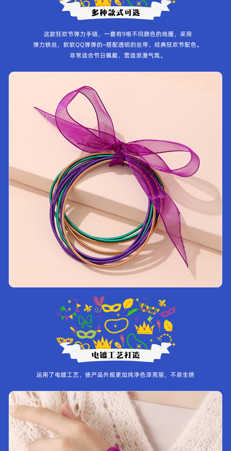 美国独立日狂欢节圣诞节绑丝带手环手镯弹力钢丝绳手链跨境亚马逊