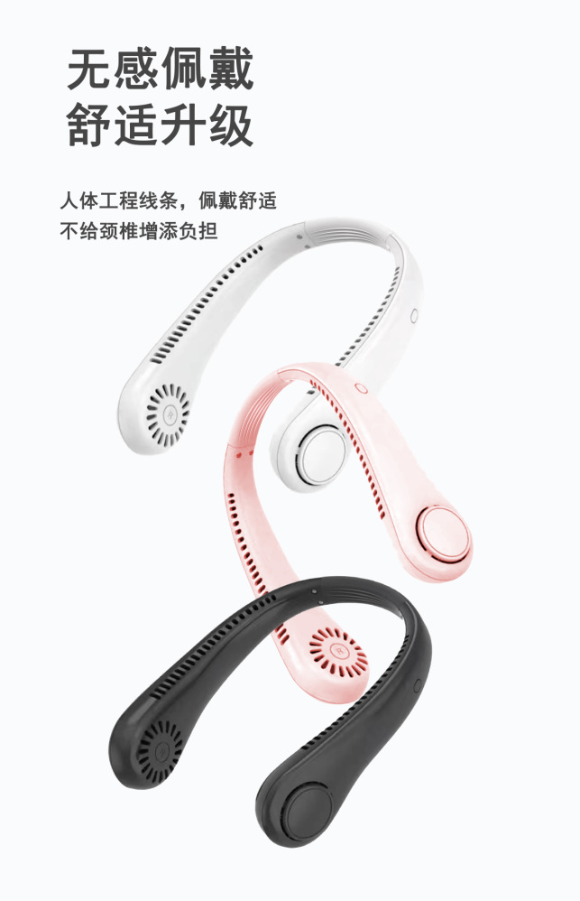 电商爆款懒人挂脖风扇USB充电便携无叶小风扇静音户小电扇跨境