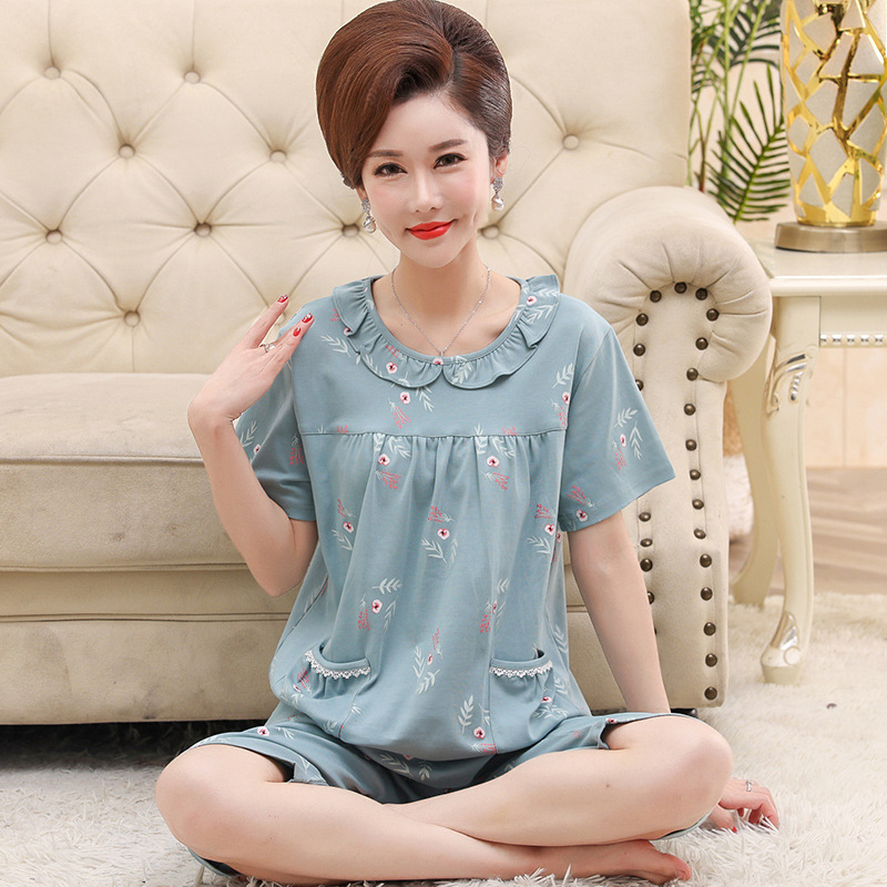 中老年睡衣女款夏天纯棉妈妈七分裤家居服中年加大码短袖短裤套装