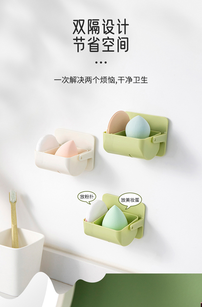 创意壁挂美妆蛋托收纳架子家用粉扑防霉快速晾干塑料免打孔收纳盒