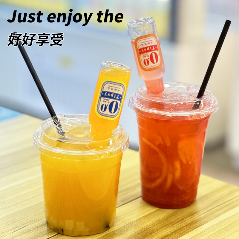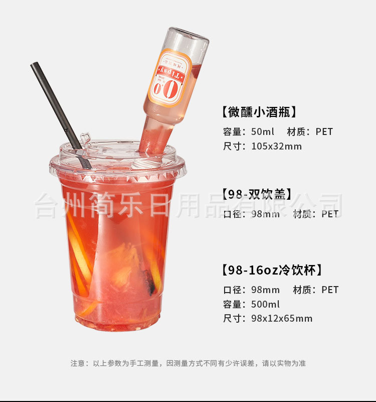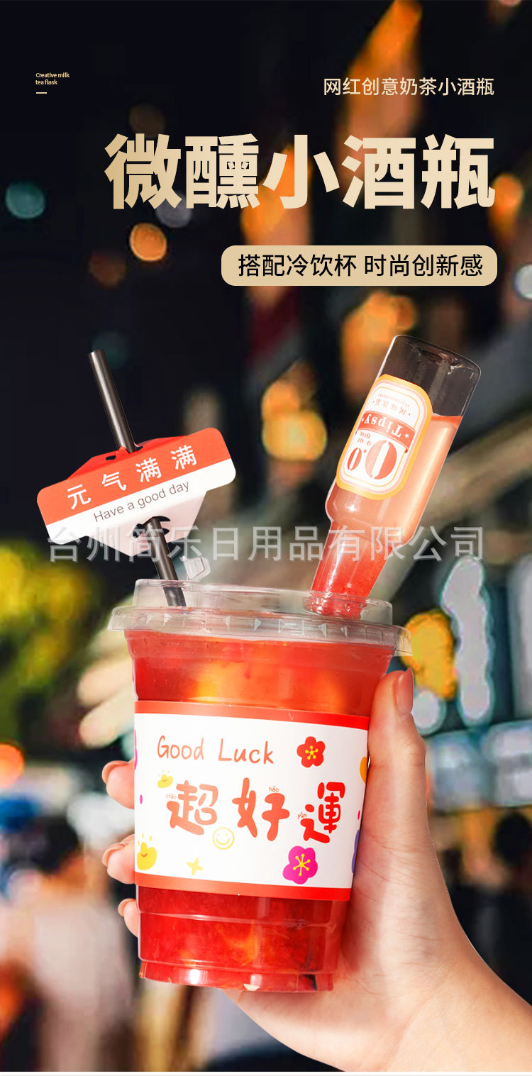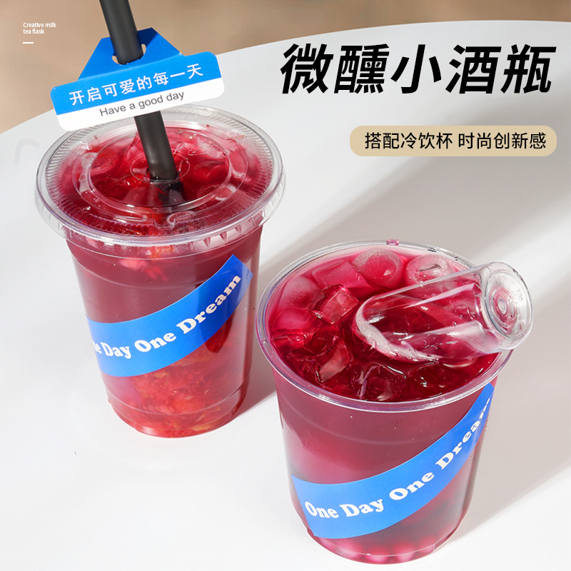网红微醺小酒瓶奶茶杯一次性塑料杯子pet加厚冷饮杯便利店调酒杯