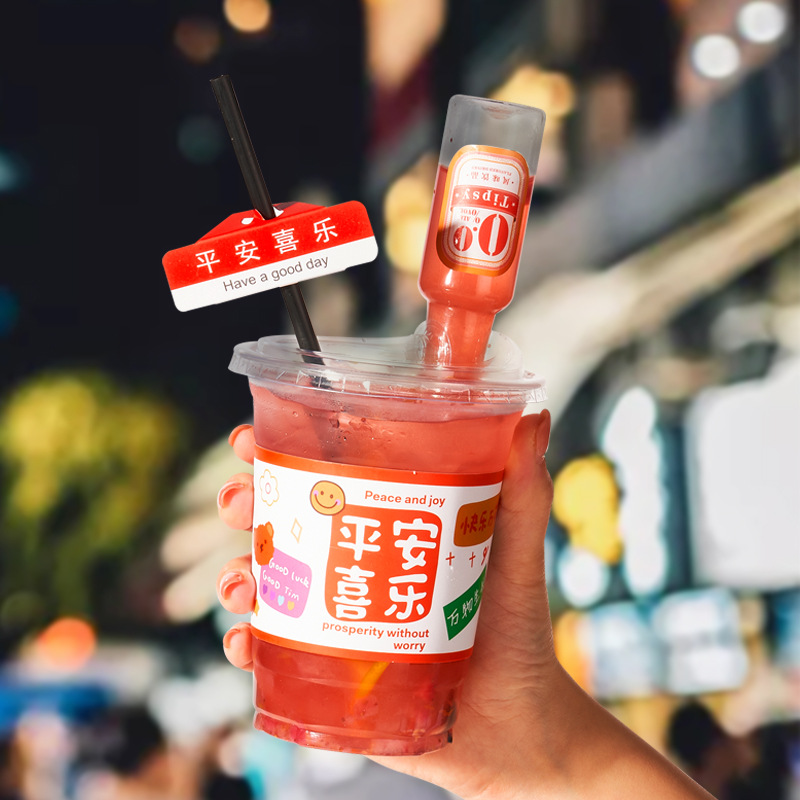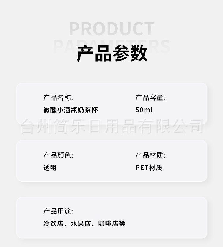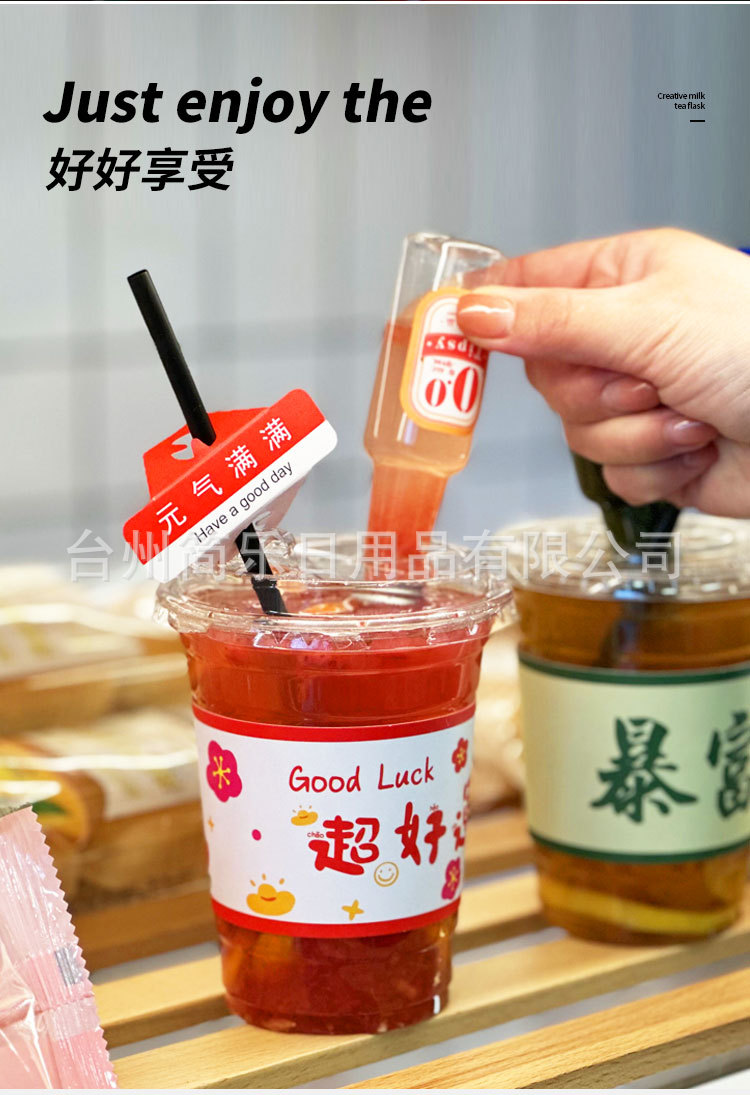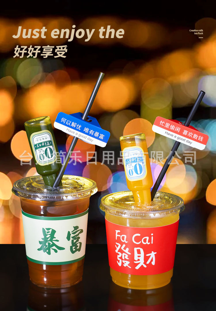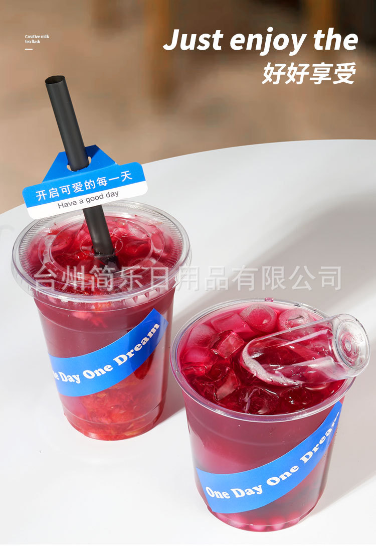 网红微醺小酒瓶奶茶杯一次性塑料杯子pet加厚冷饮杯便利店调酒杯