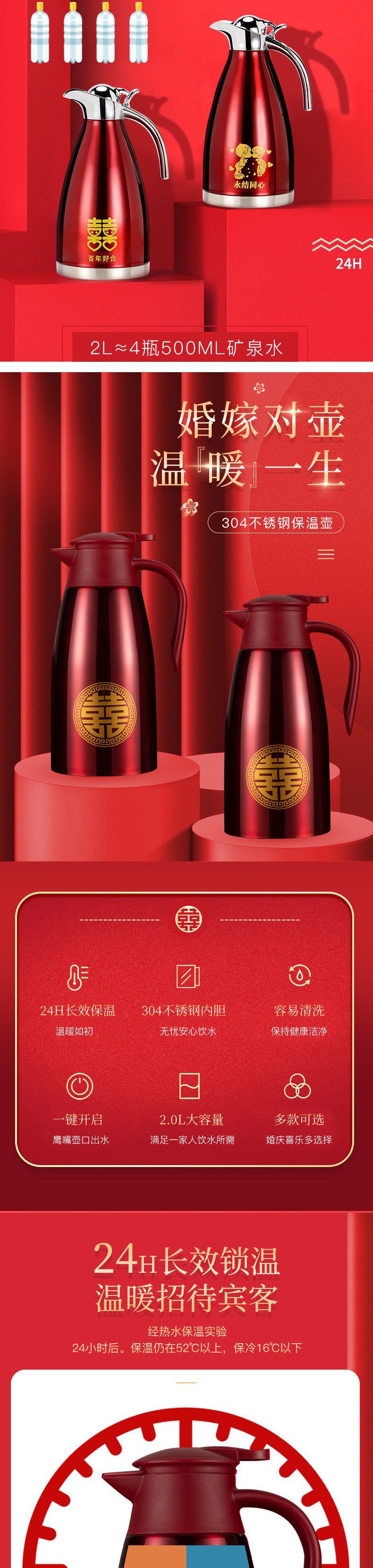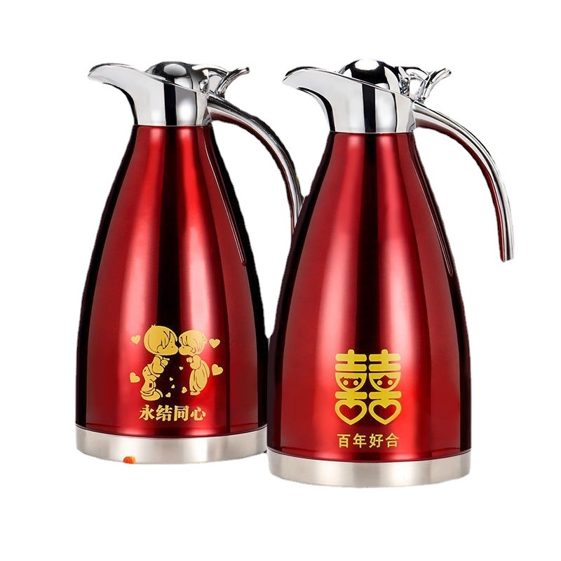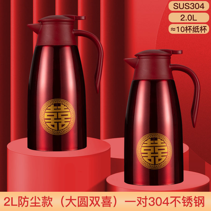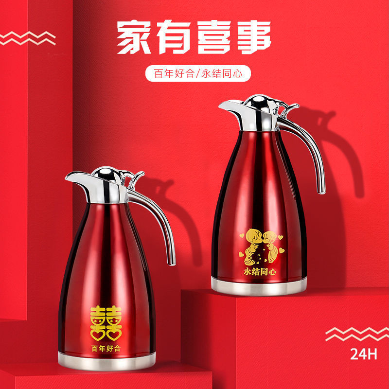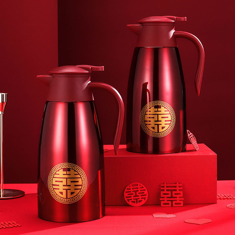 结婚水壶红色一对新娘陪嫁暖壶304不锈钢热水瓶保温壶婚庆用品