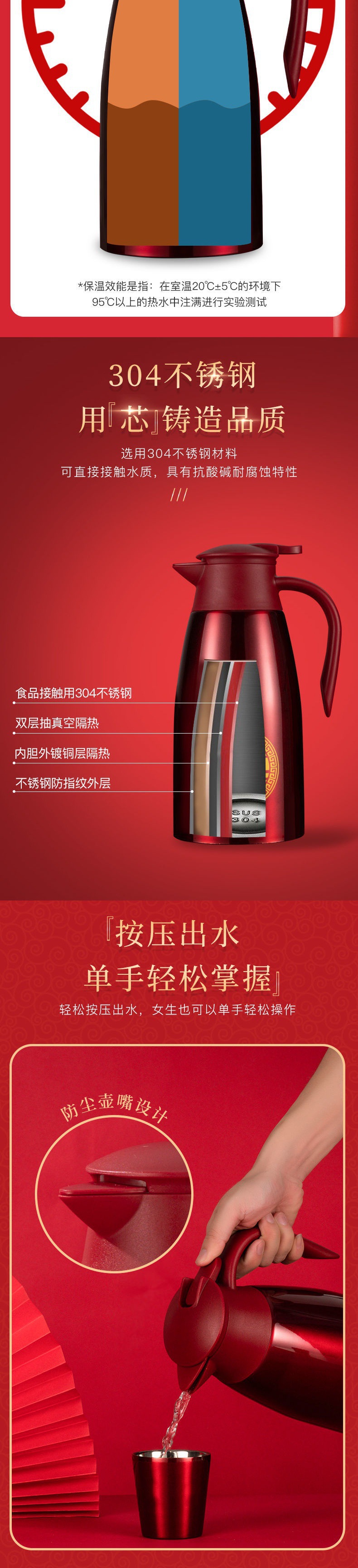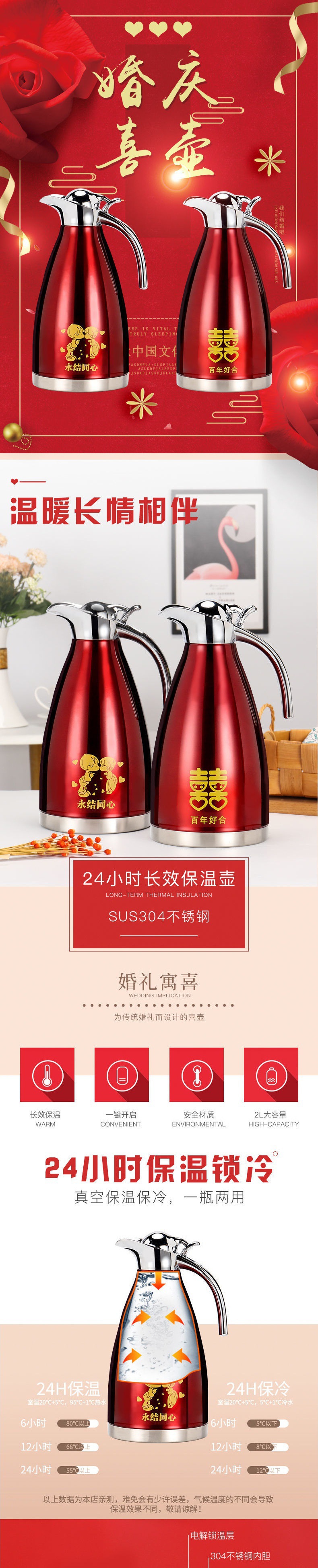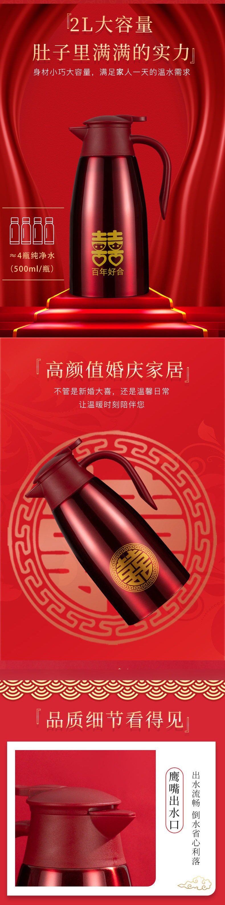 结婚水壶红色一对新娘陪嫁暖壶304不锈钢热水瓶保温壶婚庆用品