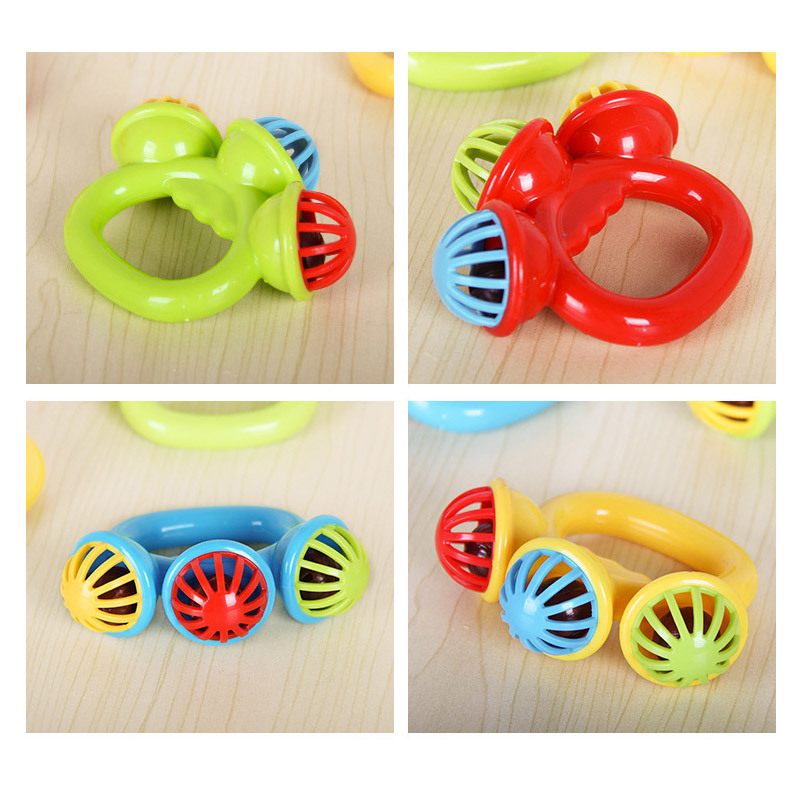 跨境新款婴幼儿三头铃新生儿宝宝手摇铃儿童塑料手抓摇铃安抚玩具