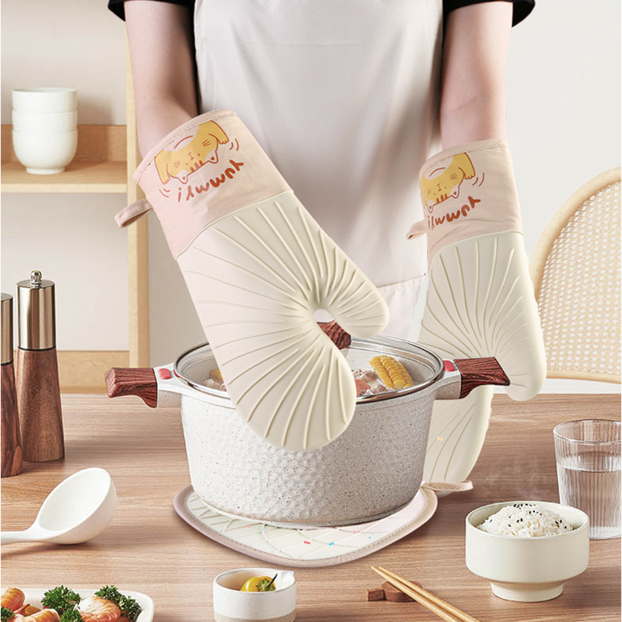 小工具 烘焙手套 中长款 硅胶太阳纹隔热奶油色系烘焙微波炉厨房