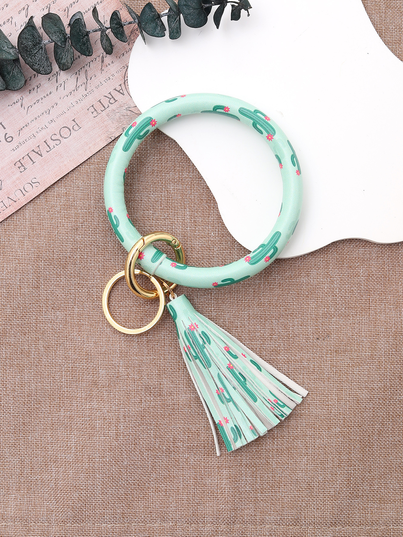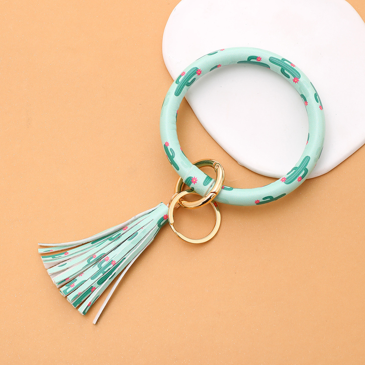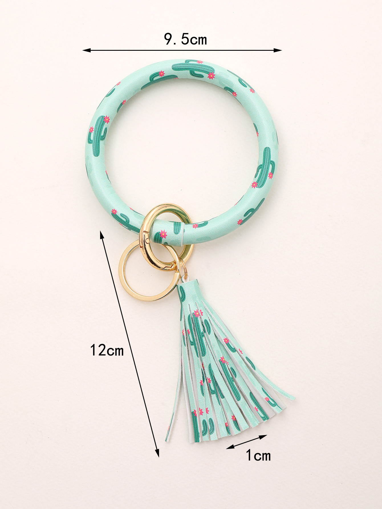 绿色皮革仙人掌印花胶管手环流苏钥匙扣流苏挂件跨境欧美亚马逊