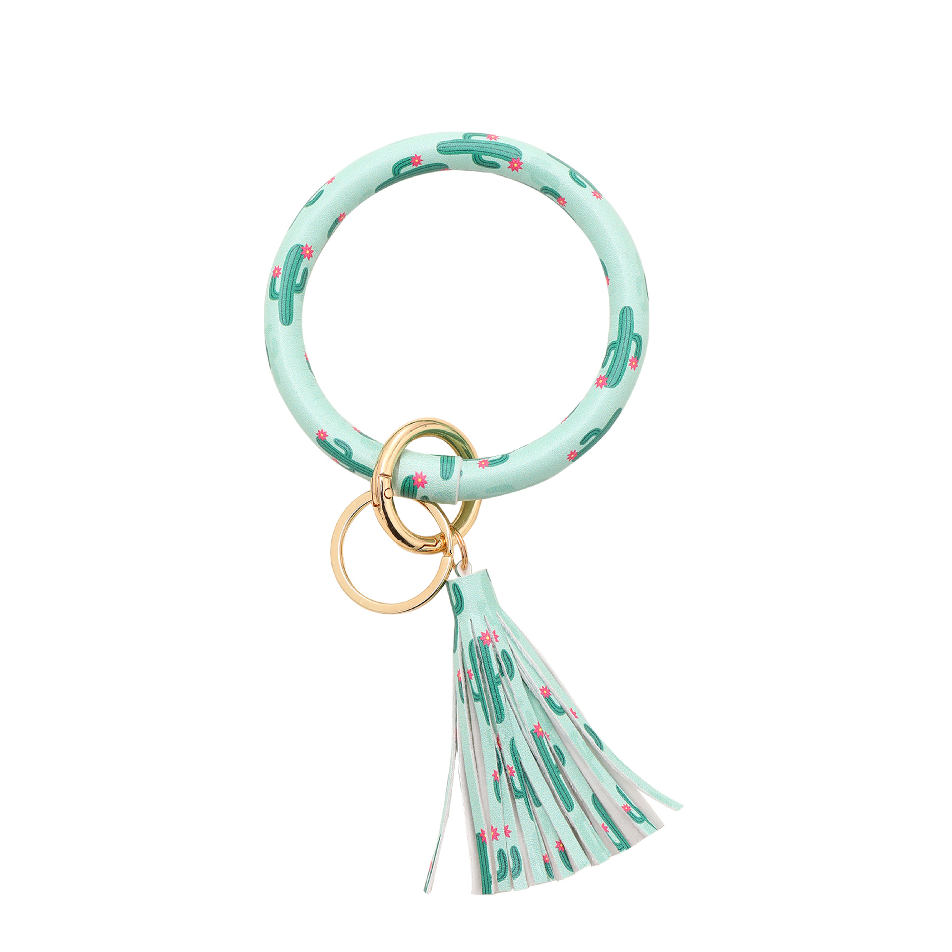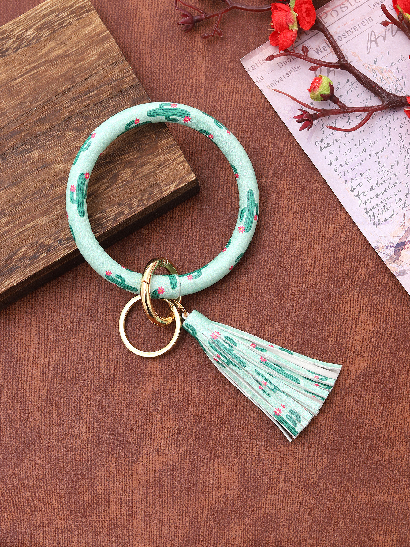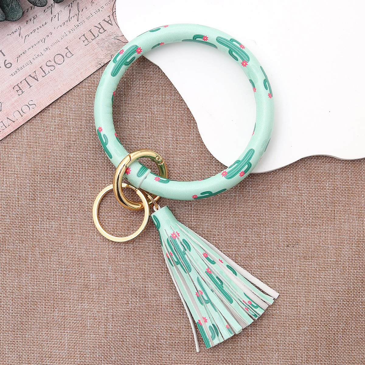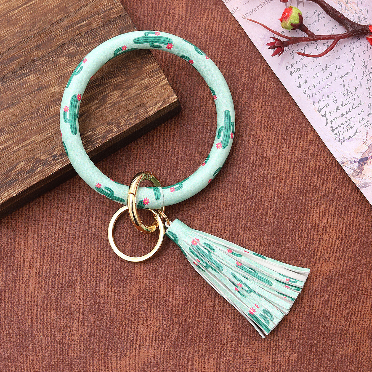 绿色皮革仙人掌印花胶管手环流苏钥匙扣流苏挂件跨境欧美亚马逊