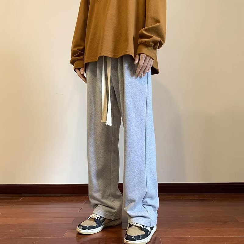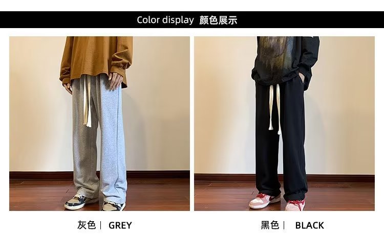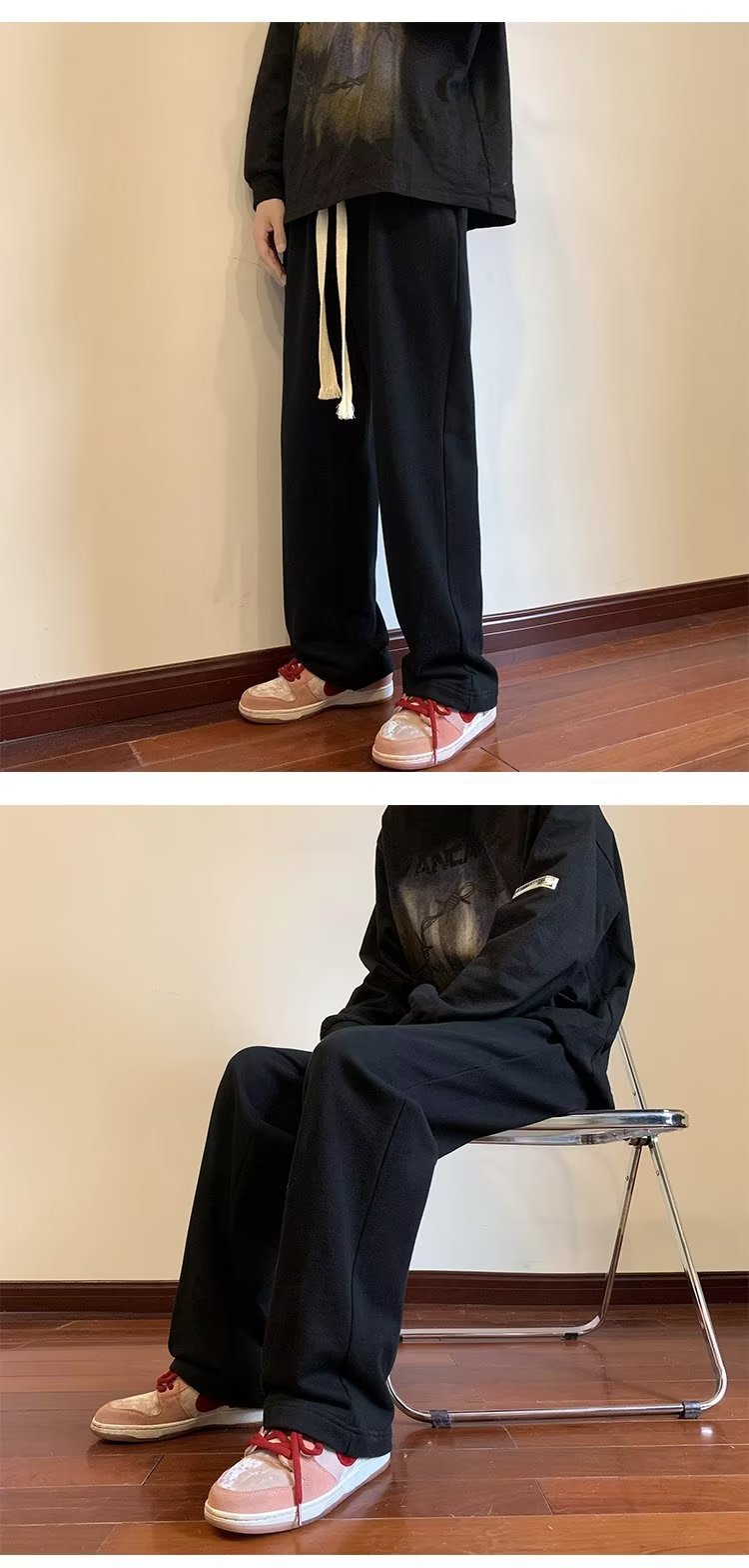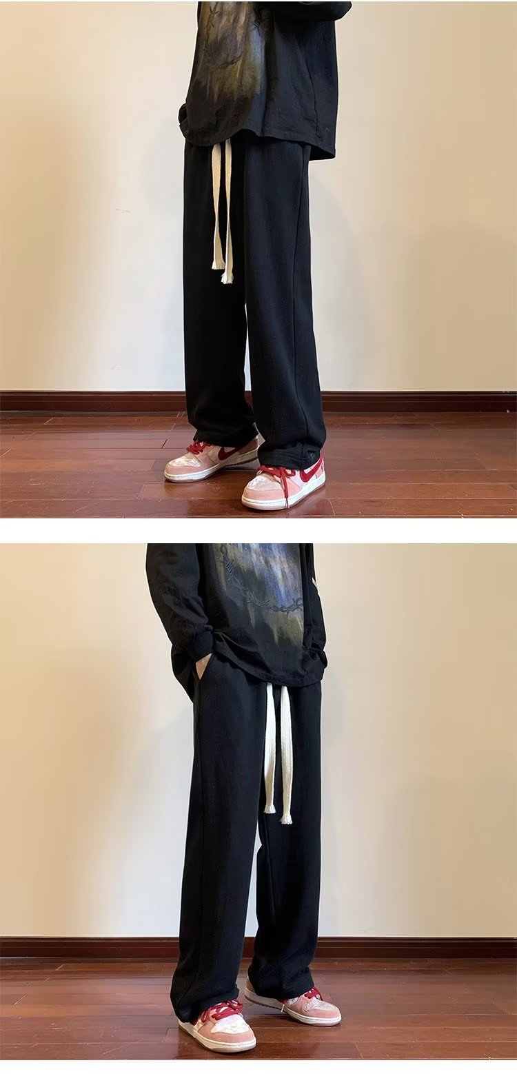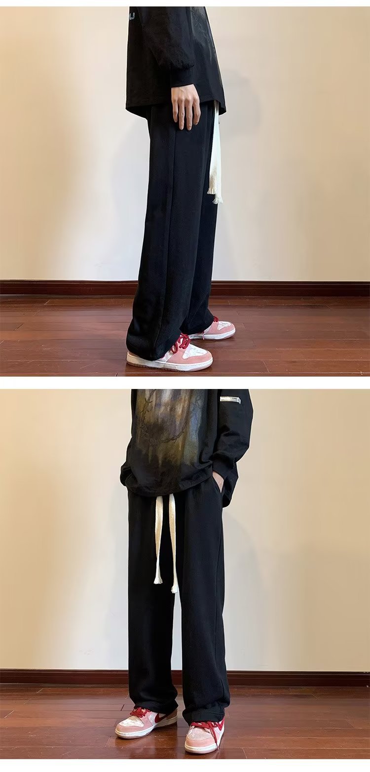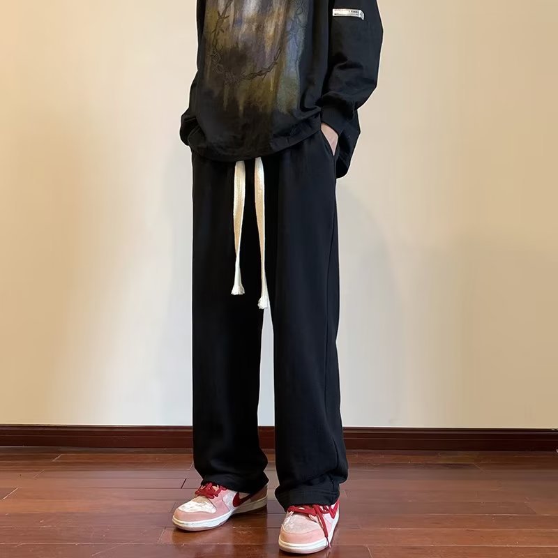 2023休闲裤男款宽松黑色男生裤子阔腿直筒抽绳卫裤潮牌运动裤