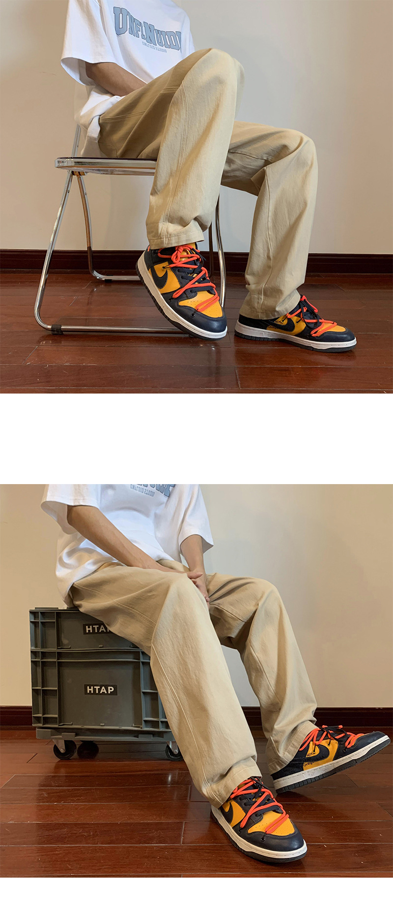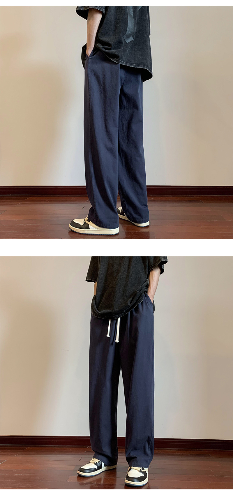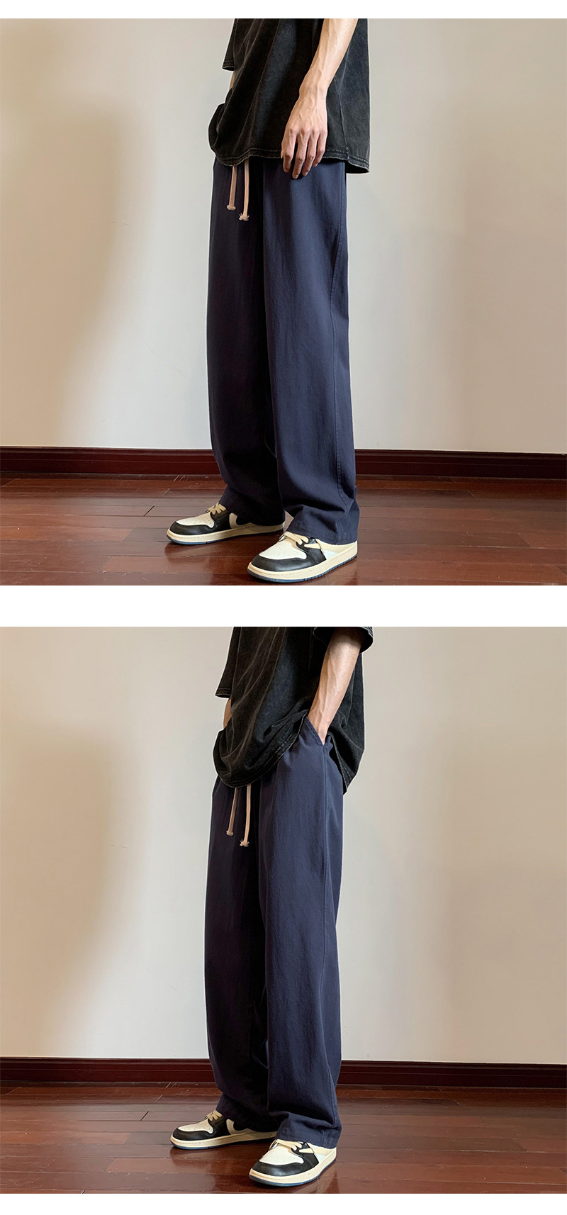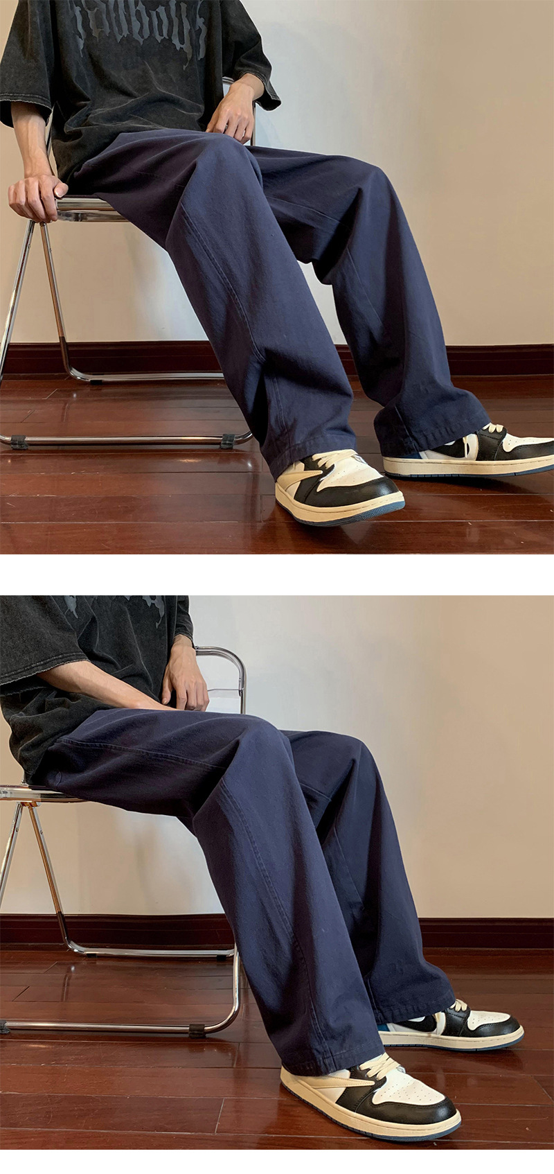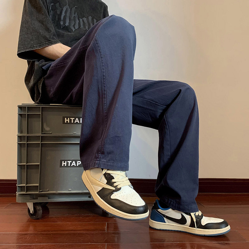美式复古藏蓝色裤子高街潮ins日系坠感工装裤男宽松直筒休闲长裤