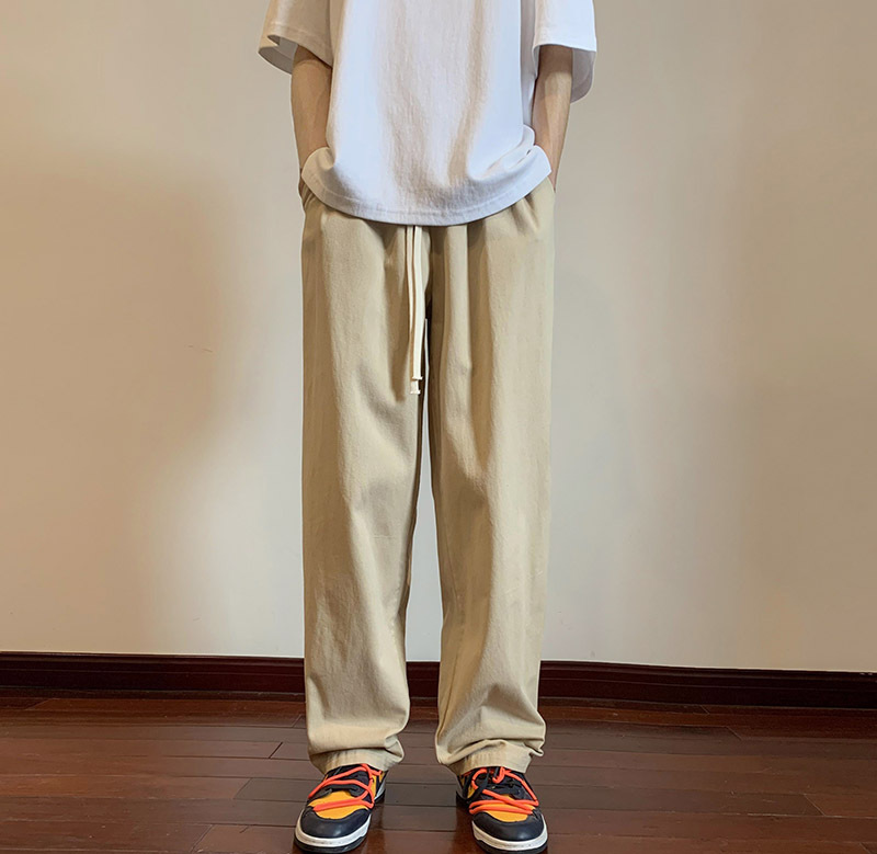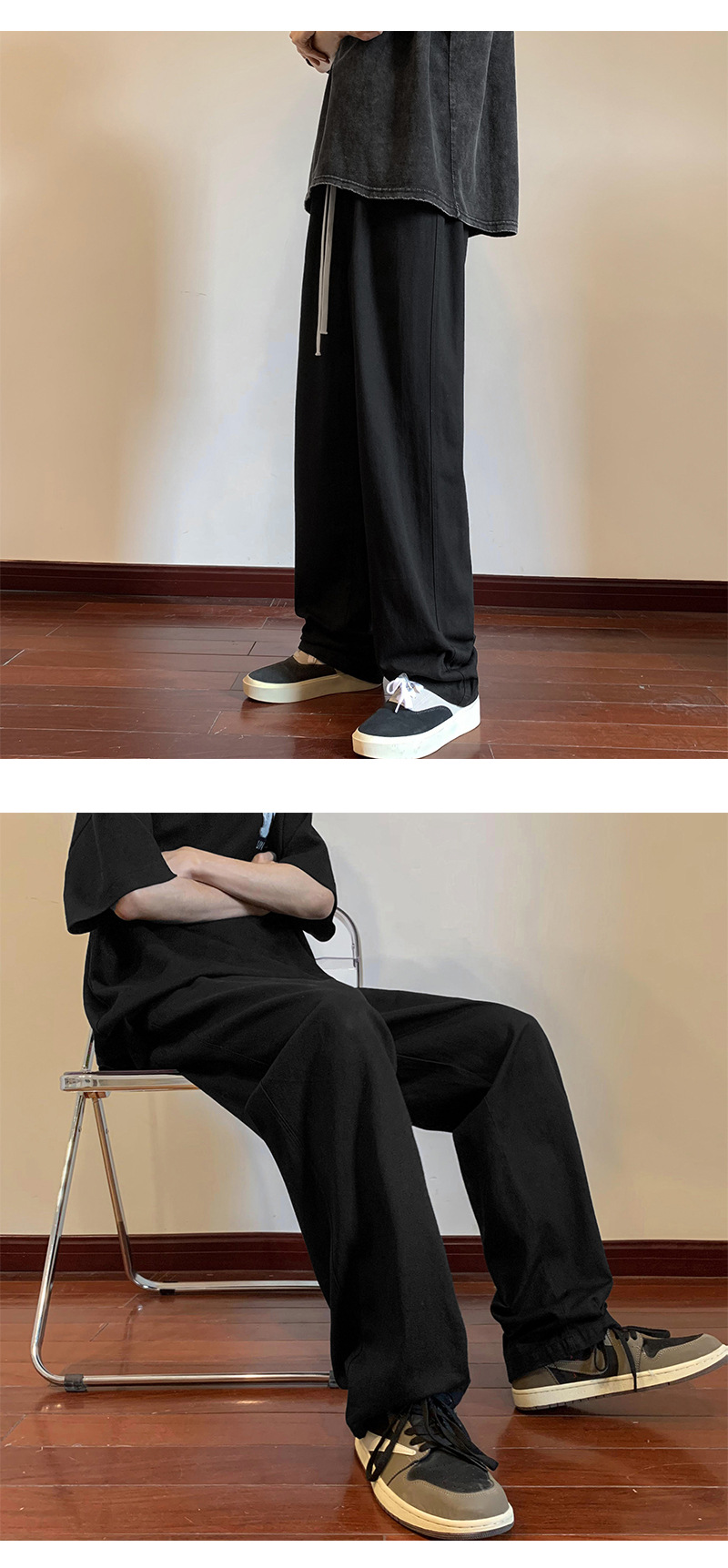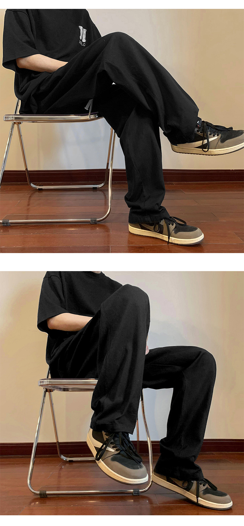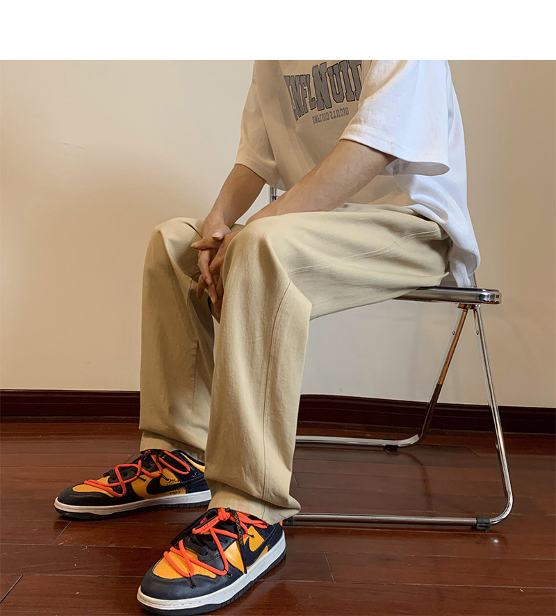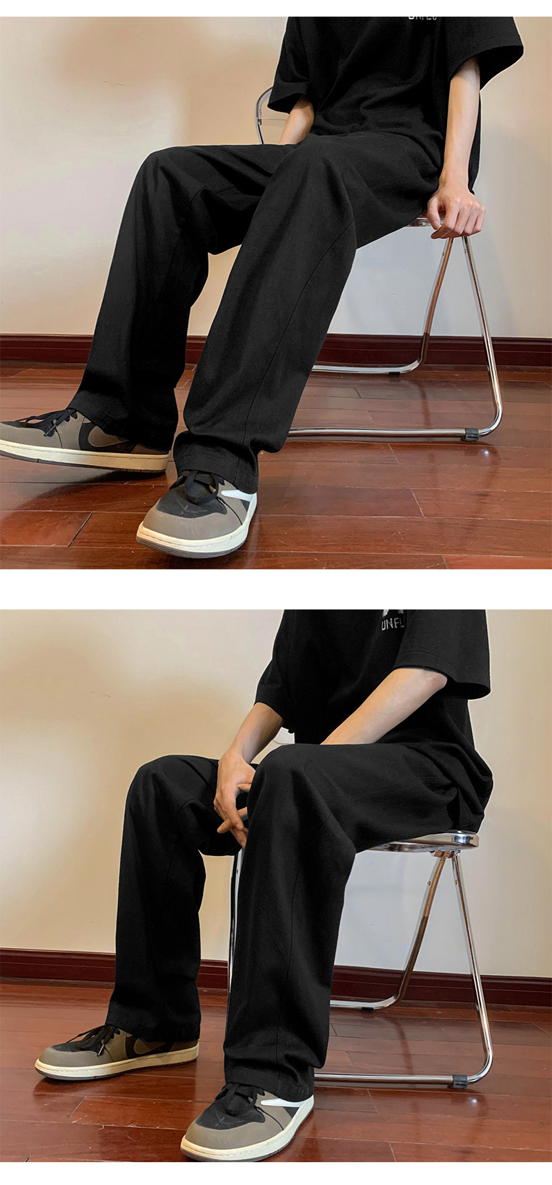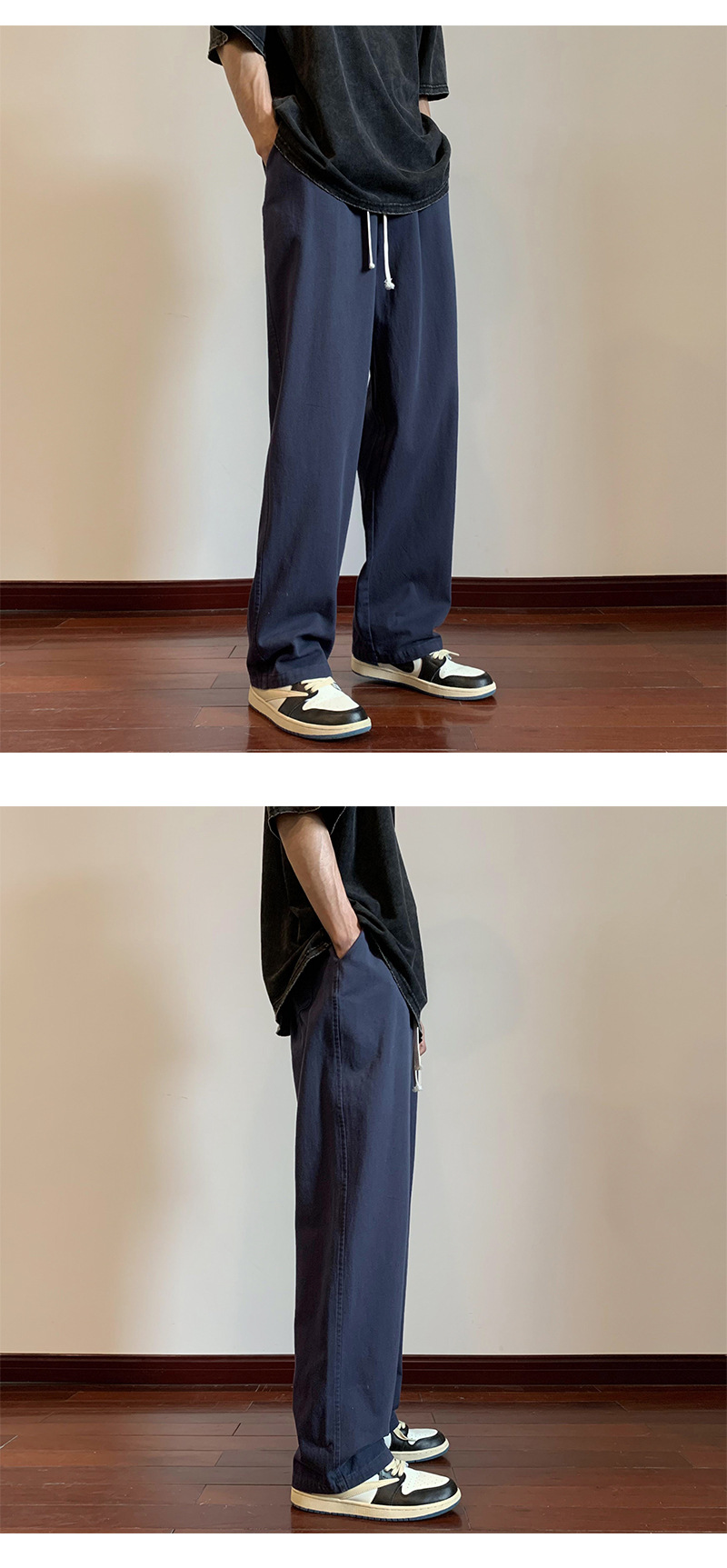 美式复古藏蓝色裤子高街潮ins日系坠感工装裤男宽松直筒休闲长裤