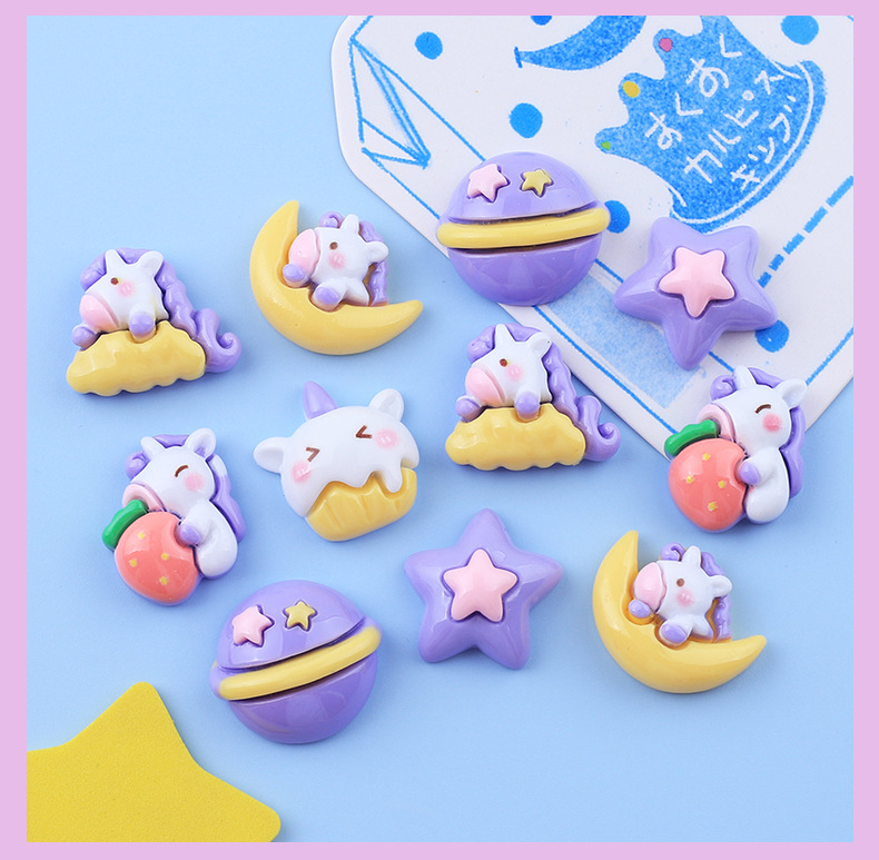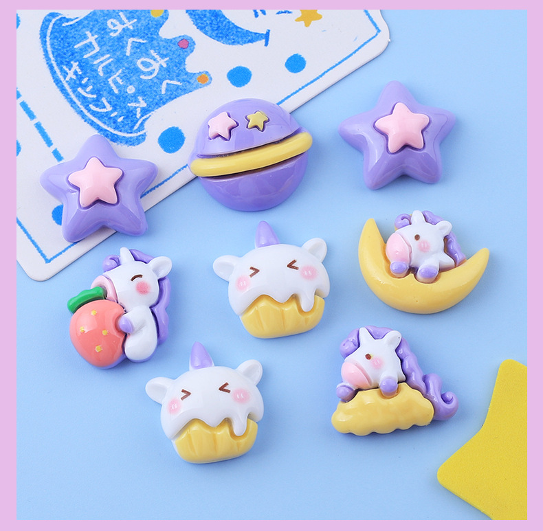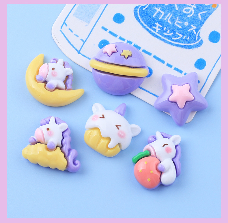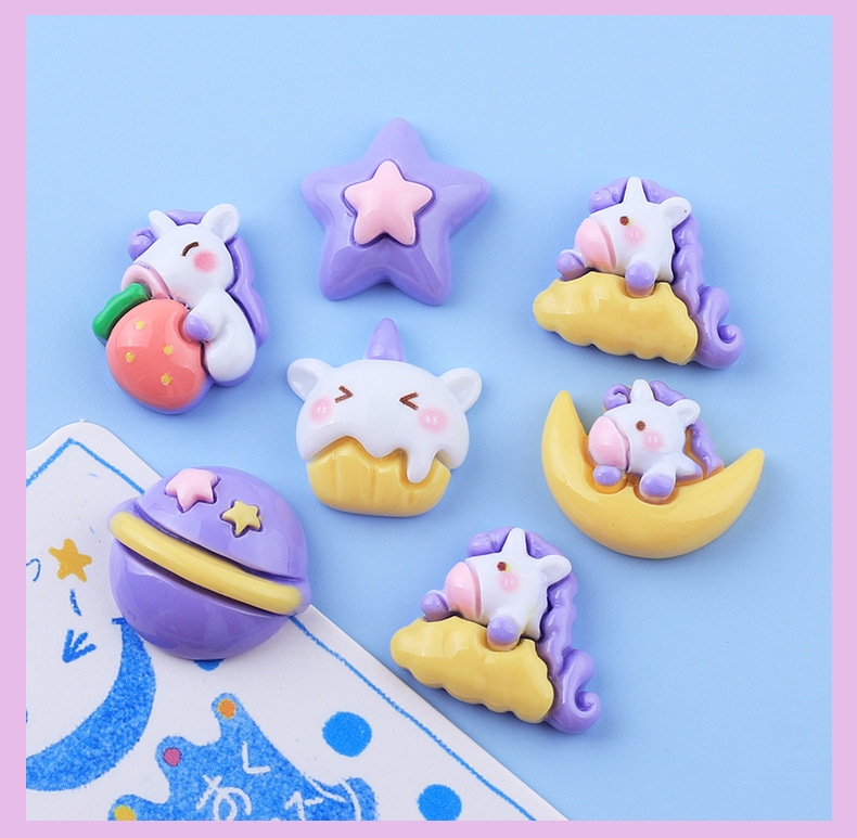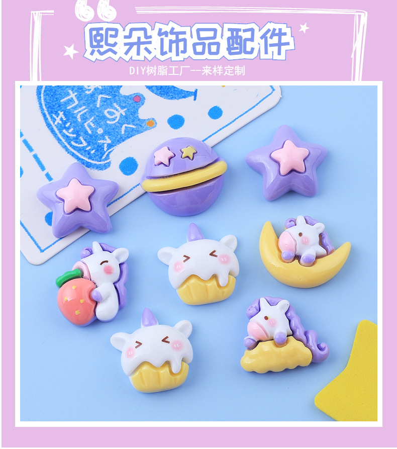 亮面紫色独角兽 diy手机壳发夹冰箱贴头饰奶油胶饰品树脂配件批发