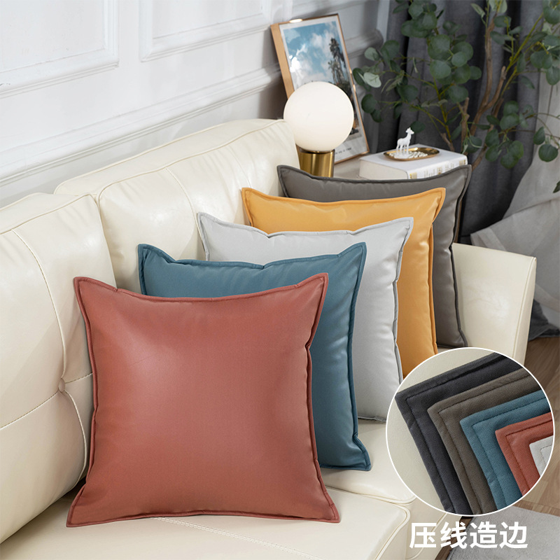 床头靠垫美式沙发科技布抱枕套纯色沙发抱枕腰靠轻奢橙色腰
