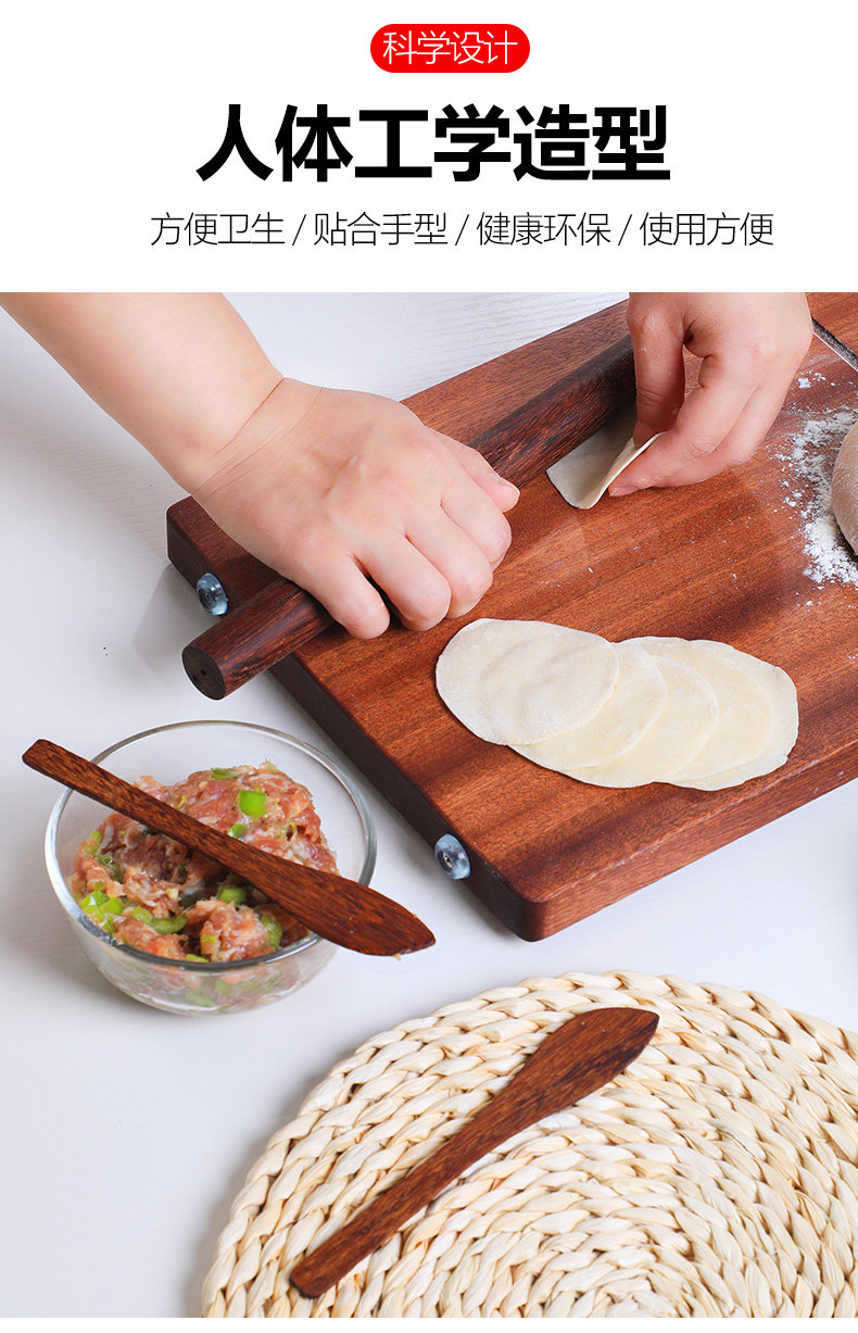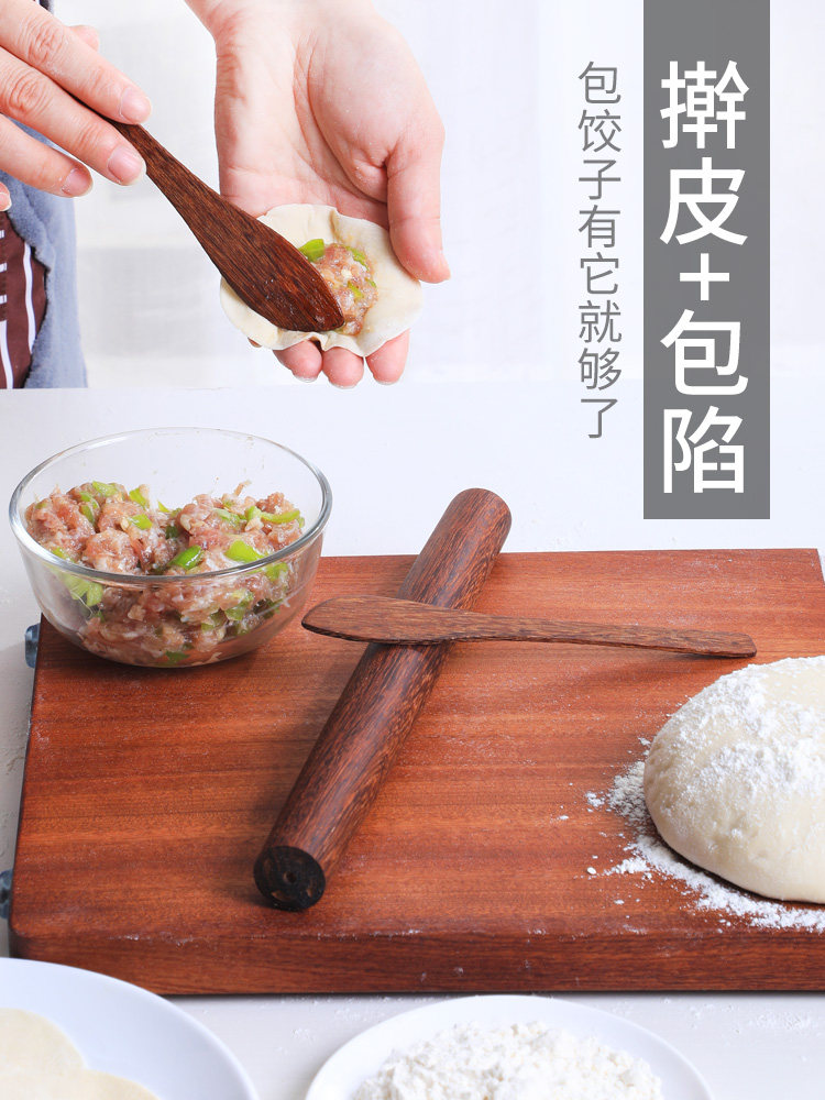双枪鸡翅木擀面棍勺子包水饺面食馄饨包子抹馅勺擀面杖水饺棒套装