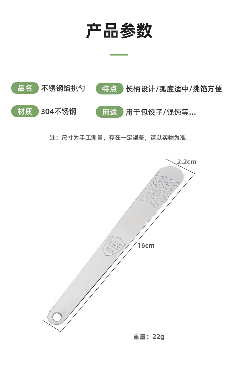 304不锈钢挑馅勺家用厨房小工具馅料搅拌勺包馄饨云吞馅料挖馅勺