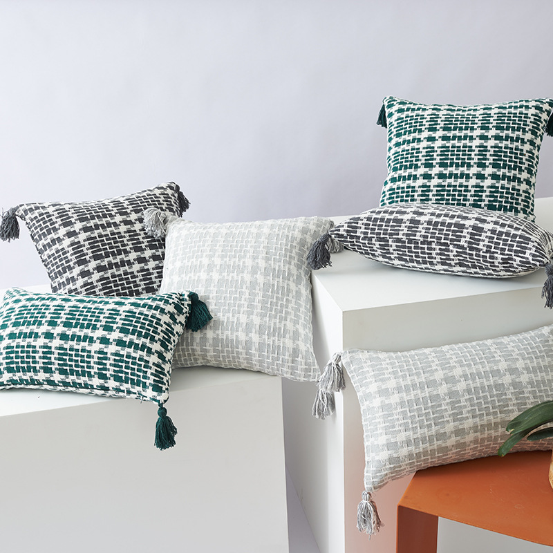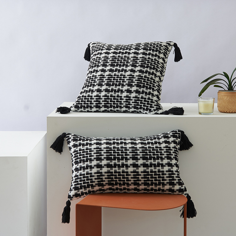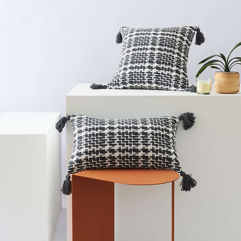 现货批发双色编制抱枕涤棉流苏双面 北欧简约北欧INS风跨境靠枕套