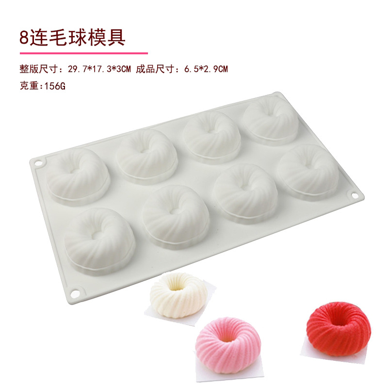 8连毛线球慕斯蛋糕模具甜甜圈硅胶模法式甜点麻团巧克力烘焙工具