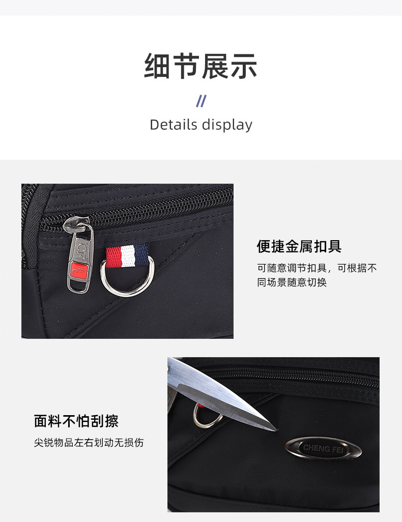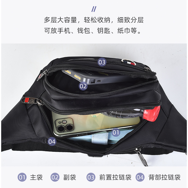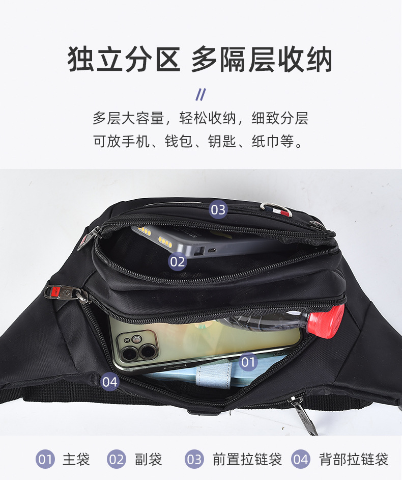 挎包跨境新款商务时尚男士腰包大容量多层牛津布便捷户外运动胸包