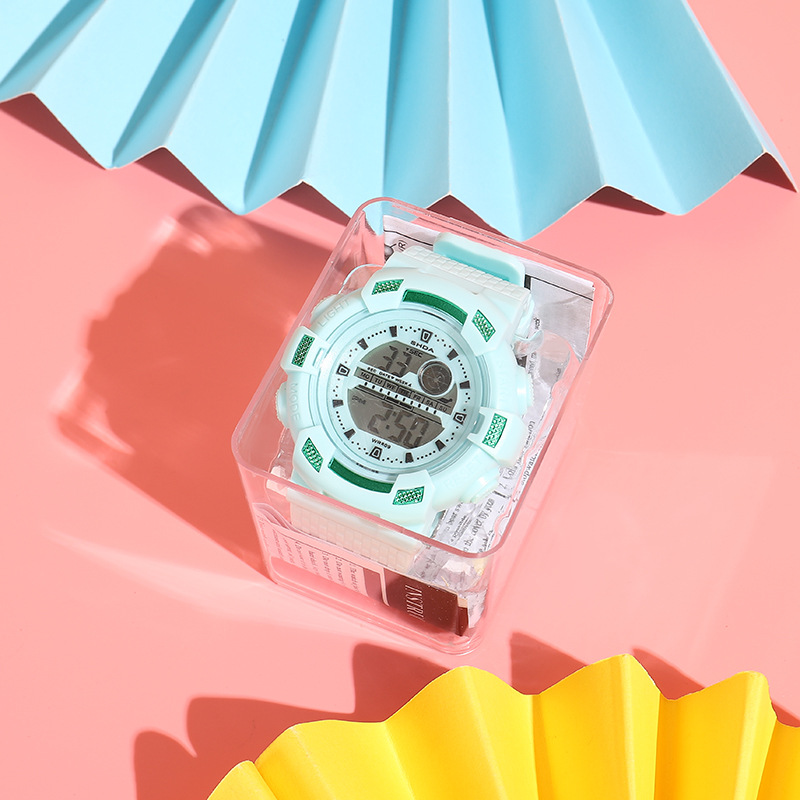 609独立透明蓝盒装学生手表男女初中生运动高颜值独角兽电子表
