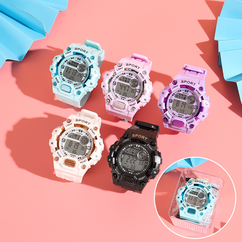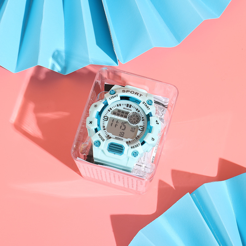 602时间煮雨新款透明方形电子表初中女学生个性手表批发潮玩手表