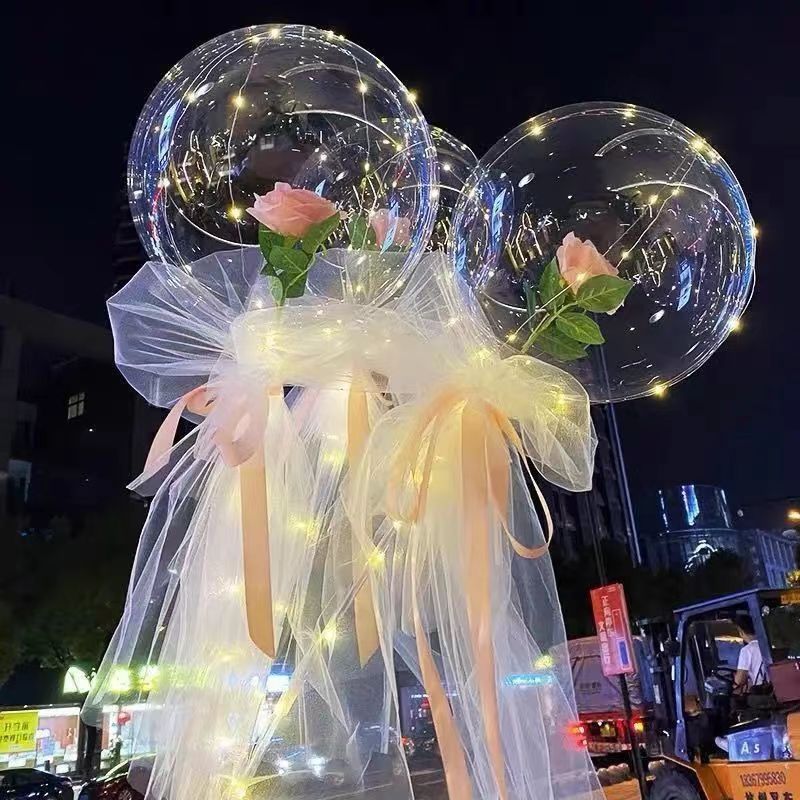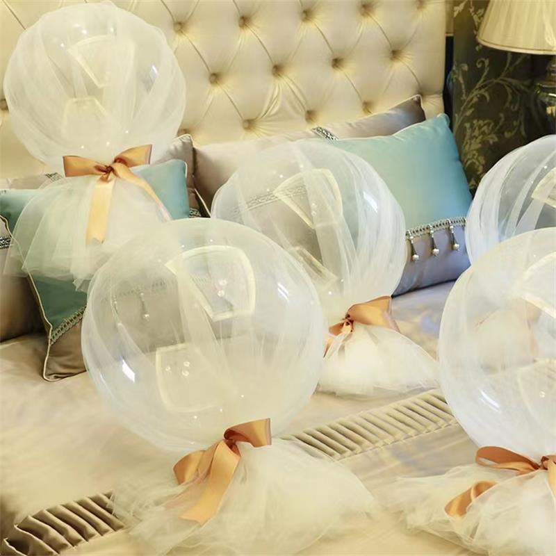 ins气球网纱透明玫瑰花波波球配件婚庆装饰生日派对道具纱批发