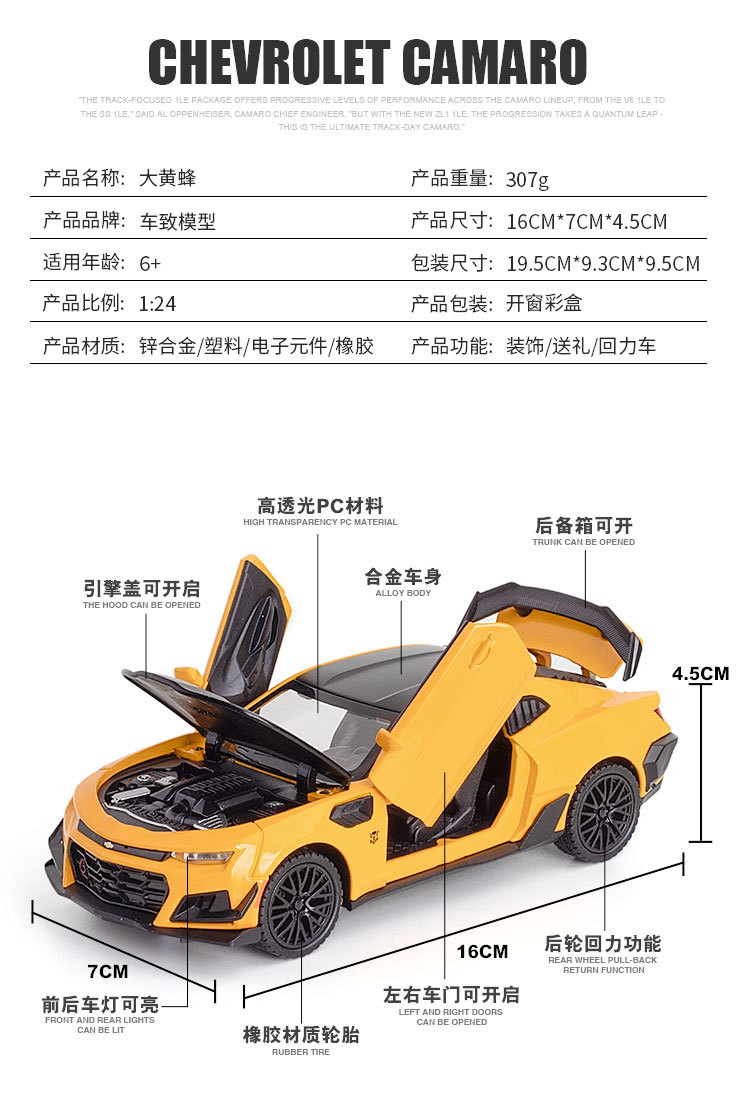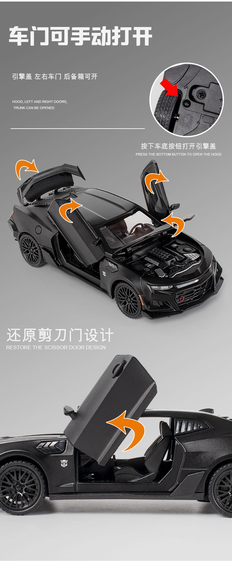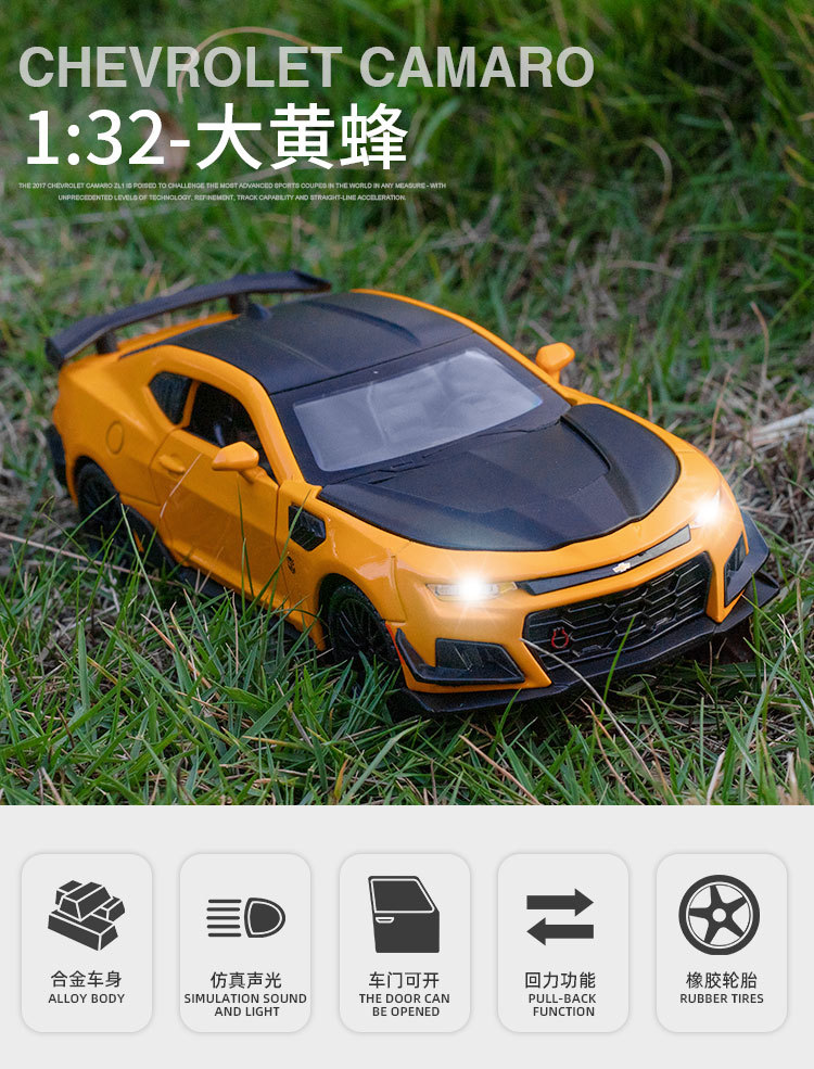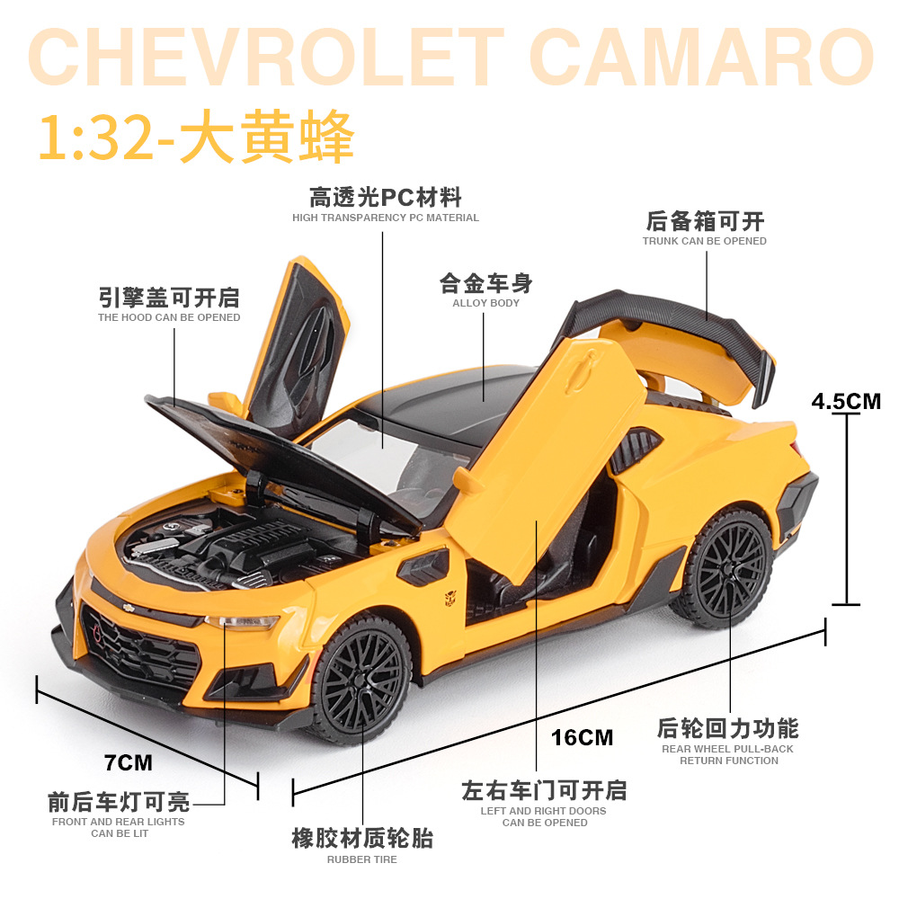 1:32男孩生日礼物摆件后轮回力声光仿真大黄蜂科迈罗合金车模