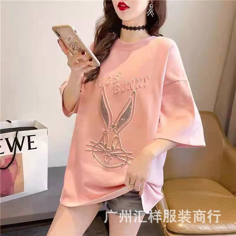 短袖t恤女新款韩版重工钢印大码女装T恤直播夜市地摊工厂批发货源