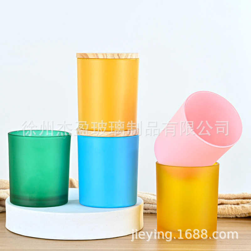 批发7084蜡烛杯彩色玻璃罐室内办公装饰烛台容器自制香薰蜡烛杯