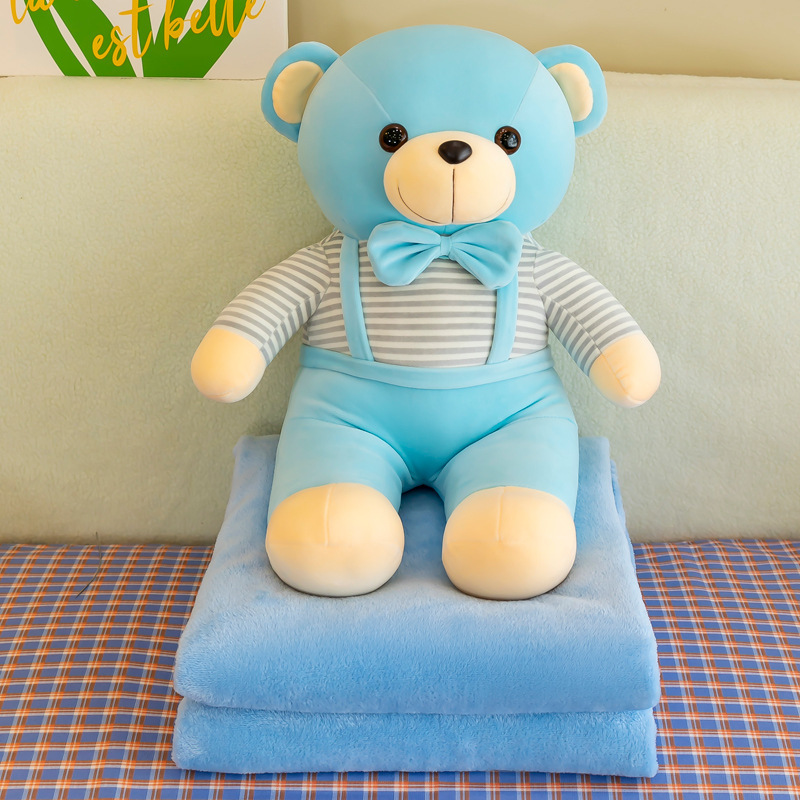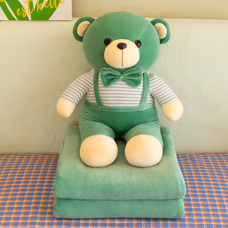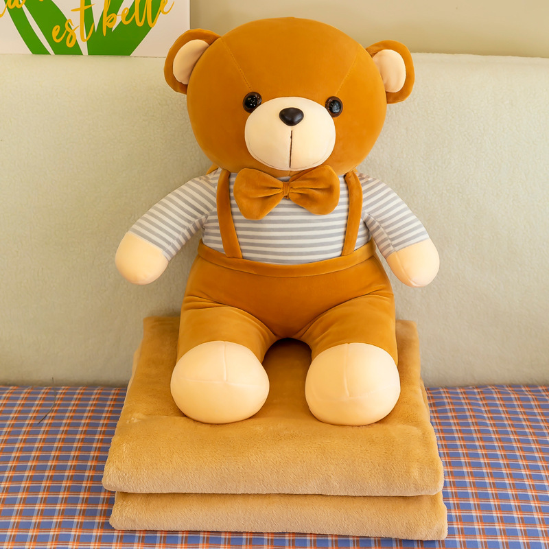 卡通背带熊娃娃玩偶二合一车载空调被抱枕午睡枕被子批发毛绒玩具