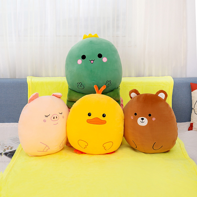 2023卡通动物夏凉空调毯车载两用抱枕被毛绒玩具厂家批发外贸